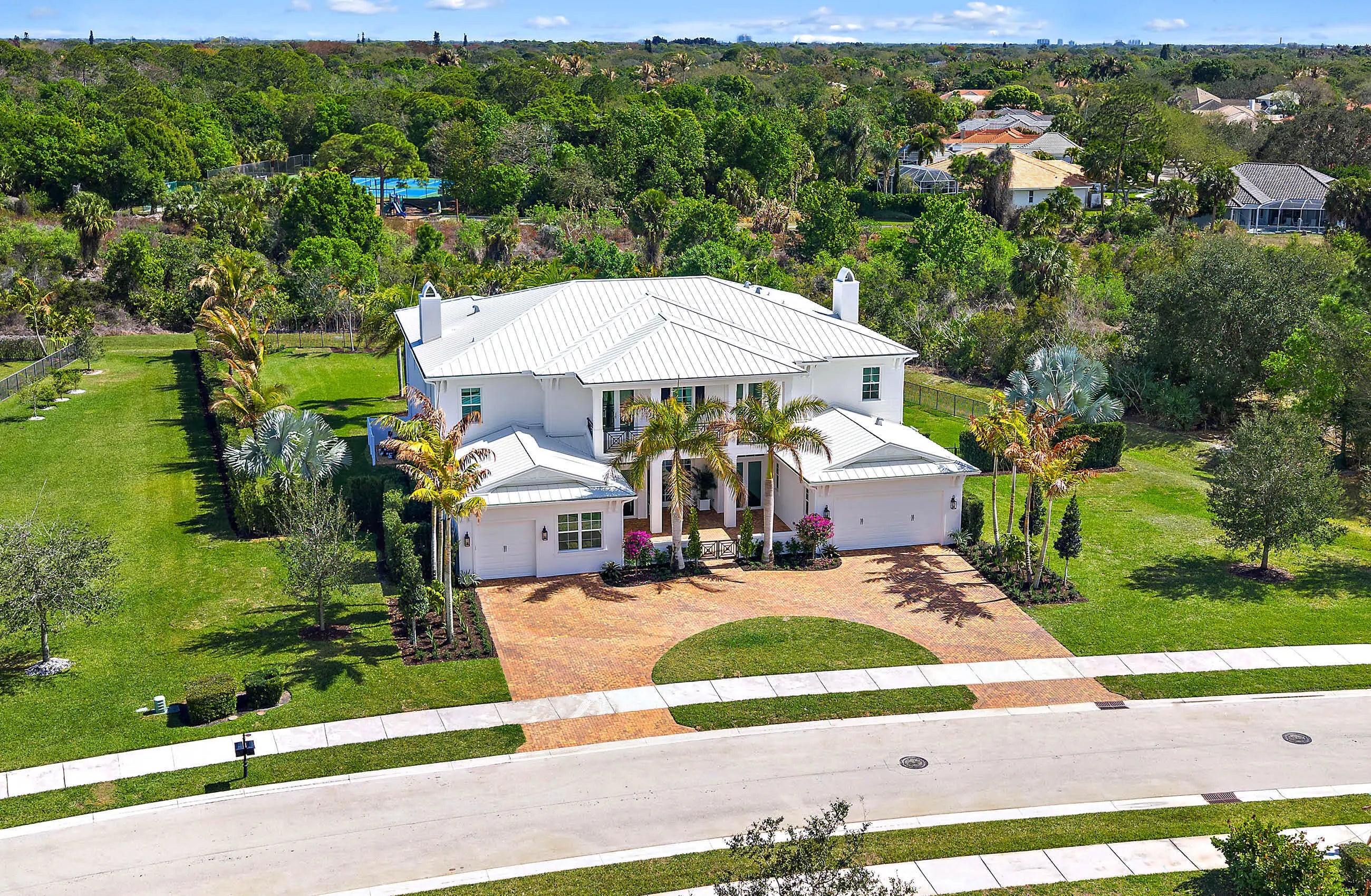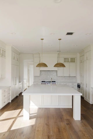 This is a rare opportunity to own what may be the finest home in one of Jupiter's most beloved communities. Completely renovated with no expense spared and never lived in since completion, this exceptional Wentworth model in Prado offers 6,254 square feet under air and features the highly desirable coastal elevation. Perfectly positioned on arguably one of the best lots in the neighborhood, the one-acre property enjoys eastern exposure and backs up to a peaceful preserve with tranquil, expansive views, creating a private setting with only one neighboring home. The open floor plan showcases extraordinary craftsmanship and design, offering five bedrooms, six full baths, and two half baths, along with a formal dining room, private office, a spectacular two-story family room filled with natural light, and a bonus room that could serve as either a club room or a kids' playroom. The brand-new chef 's kitchen features custom cabinetry, Sub-Zero and Wolf appliances, and a herringbone zellige backsplash, thoughtfully designed for both functionality and style. Throughout the home are wide-plank European oak floors, all-new 9-foot solid wood interior doors with high-end hardware, and eight fully renovated bathrooms—each with its own character while maintaining a cohesive aesthetic. High-end wallpaper and extensive custom woodwork add warmth and architectural detail throughout. Upstairs, the expanded owner's suite offers a luxurious retreat with dual walk-in closets and a spa-inspired bath featuring a soaking tub, glass shower, and dual vanities. Three additional bedrooms include en-suite baths and built-in closets, while an upstairs loft and balcony overlook the family room and capture beautiful pool and preserve views. Outdoor living is equally impressive, with an expanded covered lanai, travertine decking, and a saltwater heated pool with sun shelf and spa, surrounded by all-new professional landscaping for ultimate privacy. Exterior pavers and patios have been profes sionally sealed to enhance both durability and appearance. Located in the family-friendly gated community of Prado, this estate offers luxury living on over an acre while remaining just minutes from Jupiter's beaches, dining, shopping, and everyday conveniences.