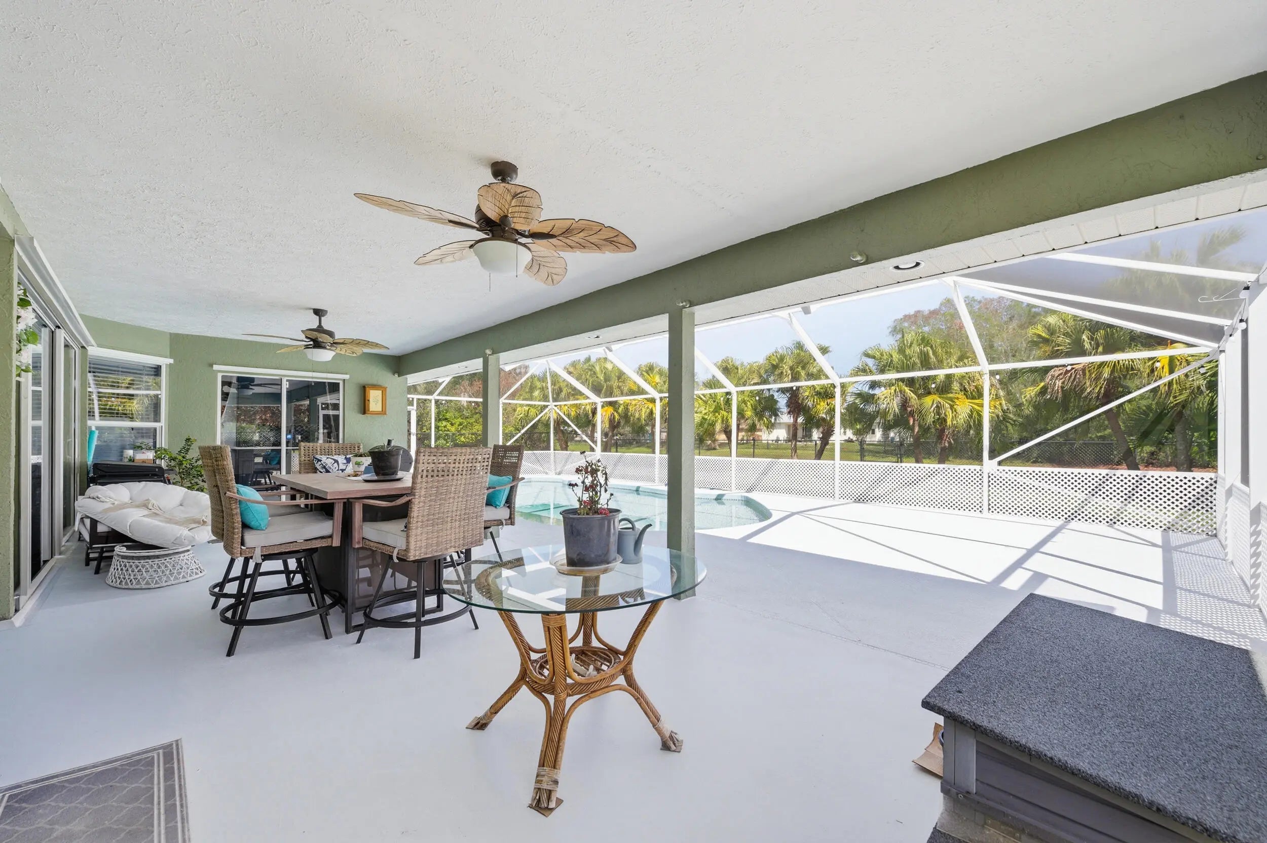Discover this beautifully maintained 3BR/3BA canal-front pool home offering the perfect blend of comfort, space, and Florida lifestyle with no HOA restrictions. Inside, the home features an open split floor plan with vaulted ceilings and abundant natural light, creating a bright and inviting living space. The kitchen opens to the main living and dining areas, ideal for everyday living and entertaining. Step outside to a large screened pool enclosure with covered patio, perfect for relaxing while enjoying peaceful canal views and a private fenced yard. A cabana bath provides convenient pool access. Additional highlights include a 2022 metal roof, updated kitchen cabinetry, tile flooring throughout, and a spacious 2-car garage.