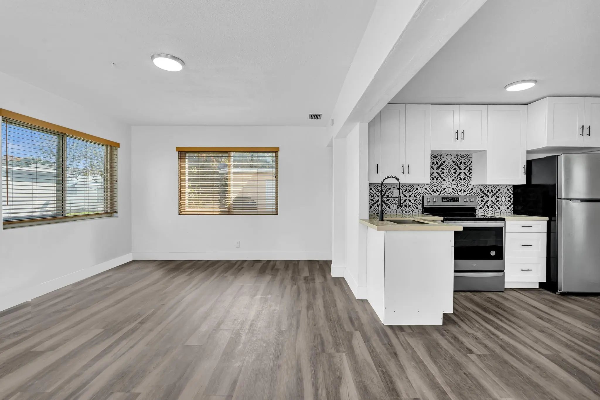 Renovated 2br, 1bath single-family home in a 55+ community. The property features impact windows brand-new kitchen, new flooring throughout, and a completely remodeled bathroom. New washer and dryer ! Low HOA dues