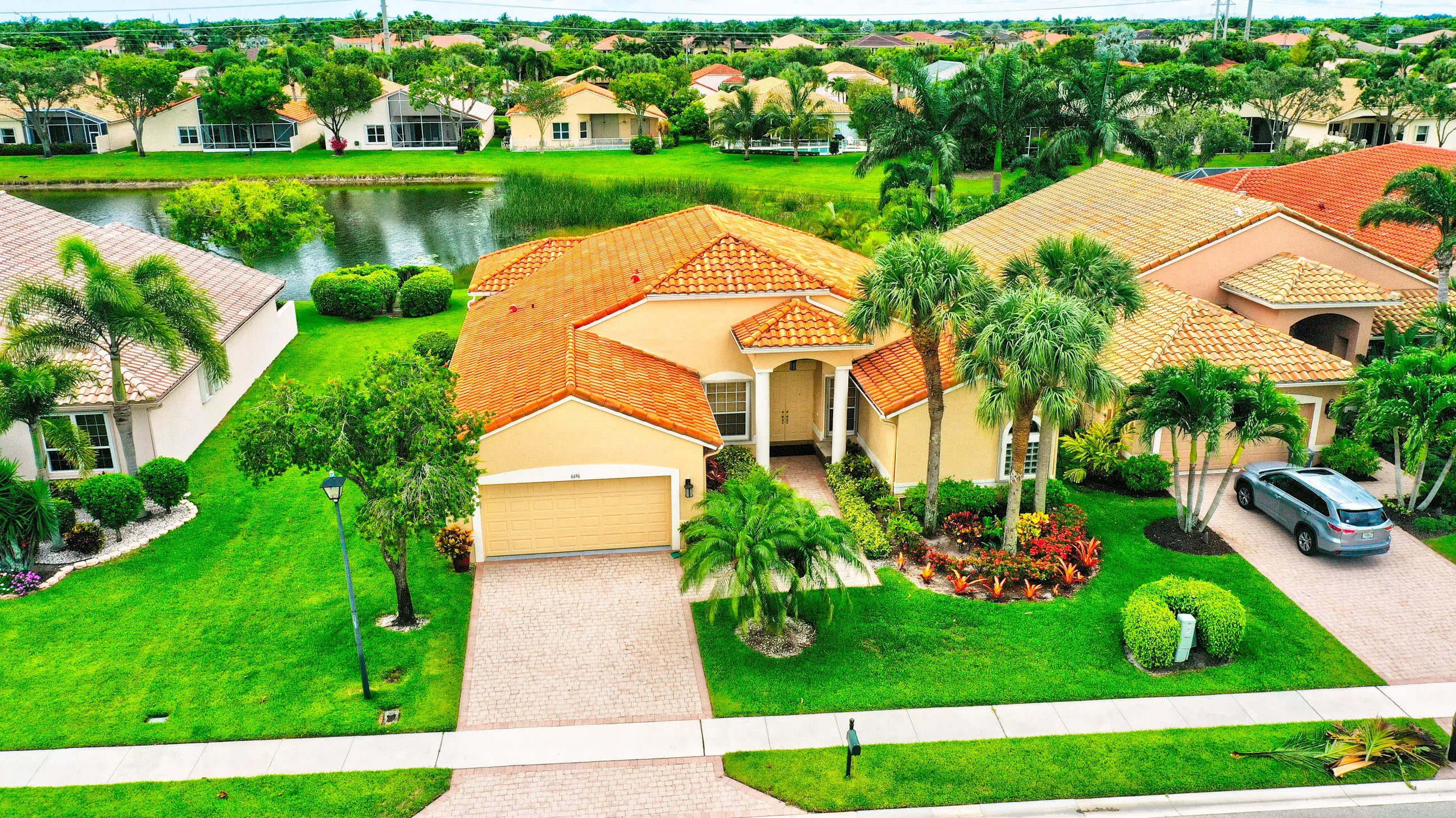 3-bedroom, 2 full bath, 2 car garage with heated pool & spa and a lakeview! Perfect for entertaining. Large living & formal dining rooms. White shaker cabinets, 42' uppers, granite counter tops, top of the line stainless steel appliances, lights under the cabinets & on the top of the cabinets, roll out drawers. Huge family room. Incredible primary suite, 2 large walk-in closets. Split bedroom plan. Spacious, open & lots of natural light. Accordion shutters. Motorized retractable screen on the patio. Home needs TLC Welcome to Ponte Vecchio, an active 55+ community, newly renovated clubhouse with tons of activities including a resort-style pool, spa, state-of-the-art fitness center, pickleball and tennis courts, billiards, card rooms, arts and crafts, and more! The expansive clubhouse also boasts an entertainment stage for top-notch shows. Putting green & driving range coming soon. Don't miss the chance to make this exceptional community your own.