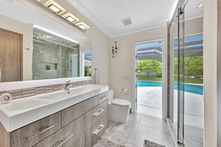 The hidden gem and majestically situated home in a quiet neighborhood of West Glenn!!!This meticulously updated and remodeled, modern home perfectly fits contemporary elegance providing a luxurious living experience. impeccably maintained spacious 5 bed 2-1/2 bath pool home surrounded by unencumbered, breathtaking lake views! 5th bed room is used as an office now. 1/2 bath could be converted to Full bathroom. IMPACT WINDOWS AND DOORS, 2 zone HVAC, & Grand Foyer Entry! 3 car garage. Formal dining area; breakfast area; open kitchen with stainless appliances and wine cooler, Quarts counter tops and wood cabinets; Vaulted ceilings, Motorized and remote controlled window treatments, Nest Thermostats.