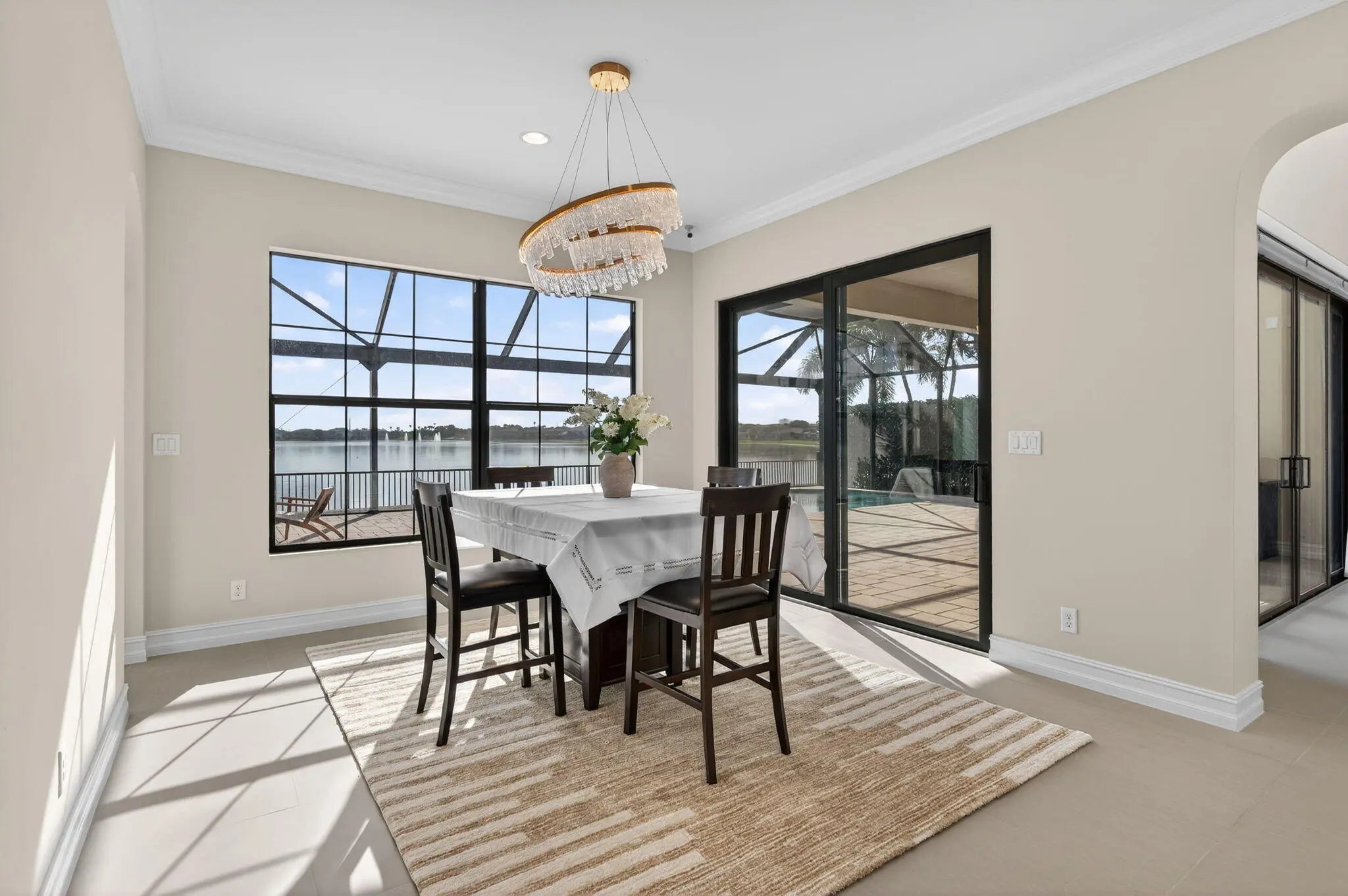 Stunning lakefront home in the gated Watercrest community of Parkland, ideal for modern living and entertaining. The open-concept layout features a vaulted ceiling, a spacious island, and brand-new porcelain tiles on the first floor, with updated stairs and flooring upstairs. Elegant chandeliers, custom built-ins, and fresh paint add sophistication, while a whole-house generator ensures peace of mind. With $400,000 in upgrades, the home includes an expansive screened-in patio with east-facing views and a heated saltwater pool. The large master suite offers tranquil water views, a luxurious bathroom, and a walk-in closet. Residents enjoy access to a grand clubhouse with a beach-entry pool and spa, a dock, tennis and basketball courts, a kids' play area, a gym, a steam room, and more