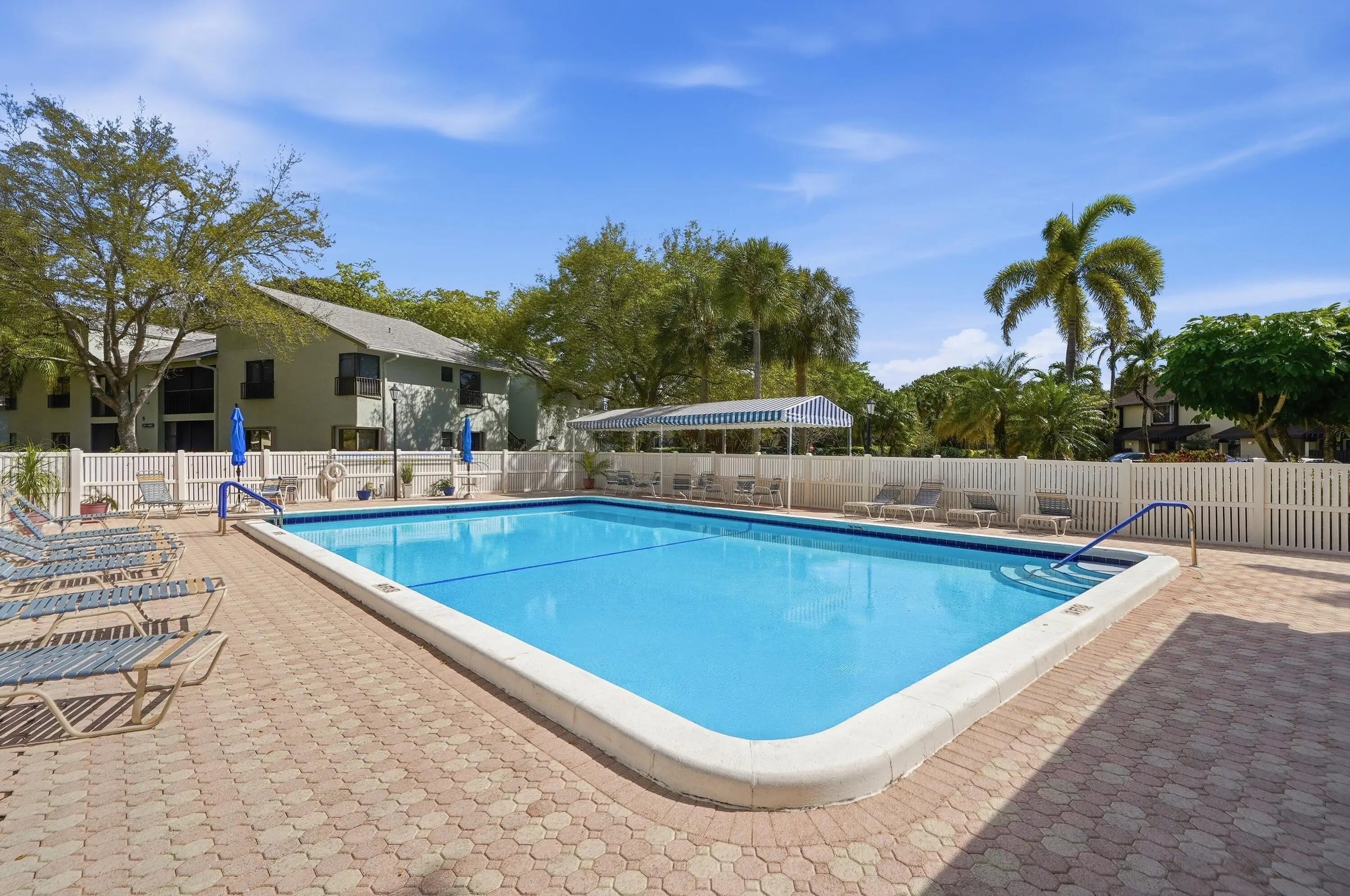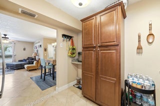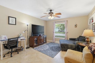 Curb appeal! Beautifully appointed 2 bedroom 2 bath condo with travertine floors laid diagonally, impact windows everywhere except patio flex space that can serve as an office or den, split floor plan, updated kitchen with plenty of pull-out storage and widened entry, same beautiful granite in kitchen and baths, undermount sinks. Kitchen appliances 2 years old, washer/dryer 1 year old. Large master bedroom has walk in closet. All ages, access to all of the amenities of the Township, including state-of-the-art gym, theater, tennis and pickleball, basketball, and resort-style pool. 20 minutes to Pompano Beach.