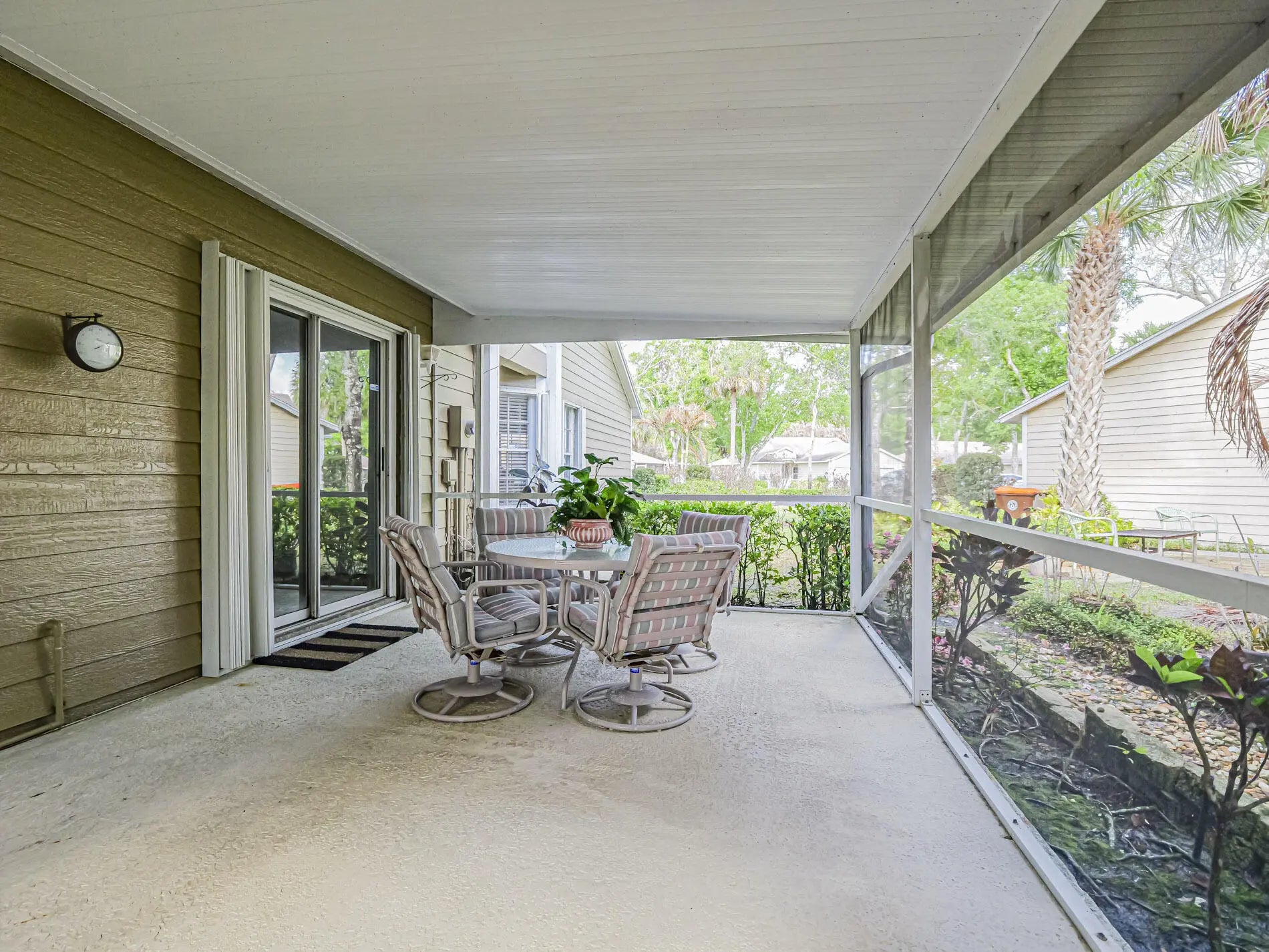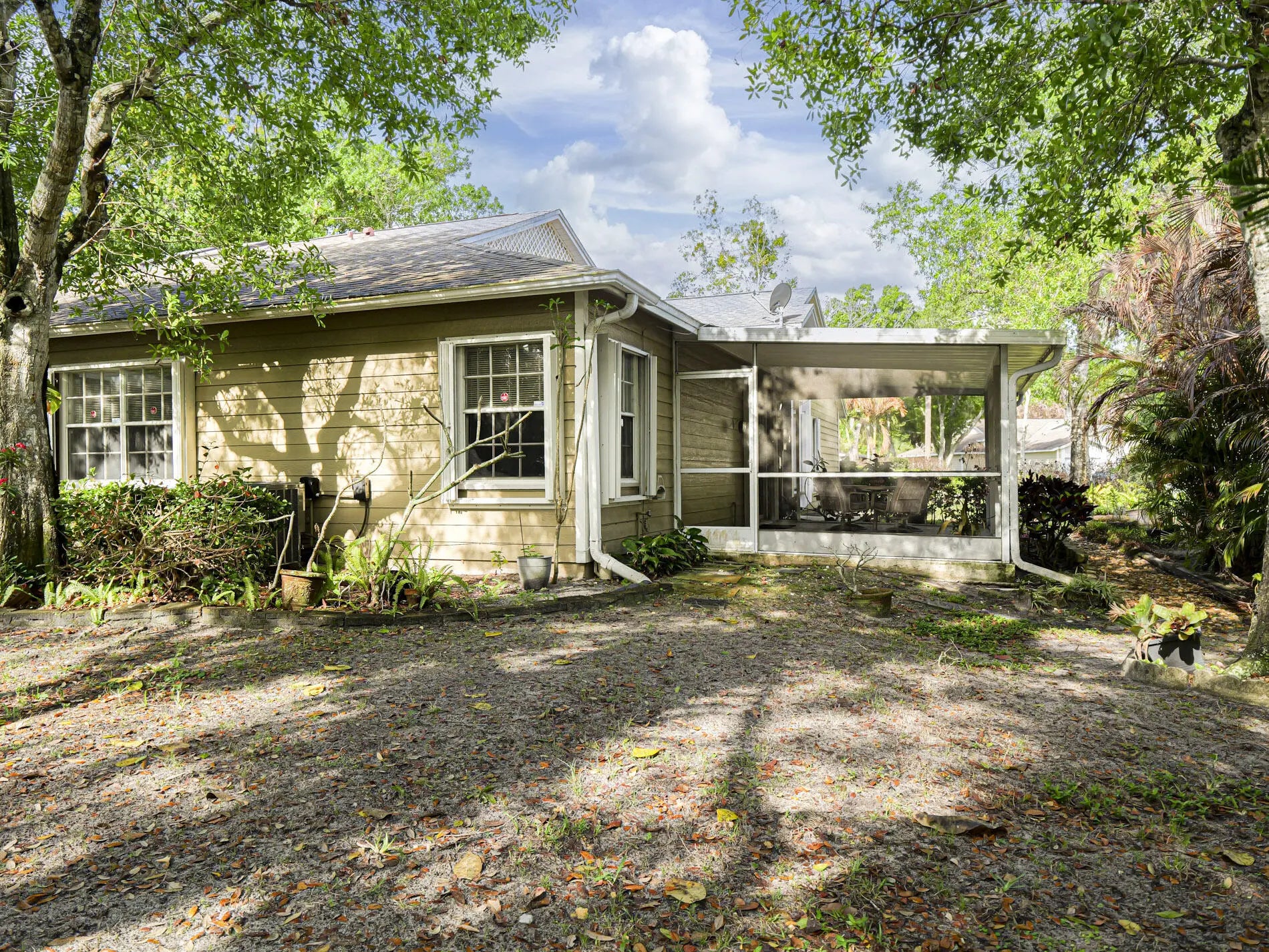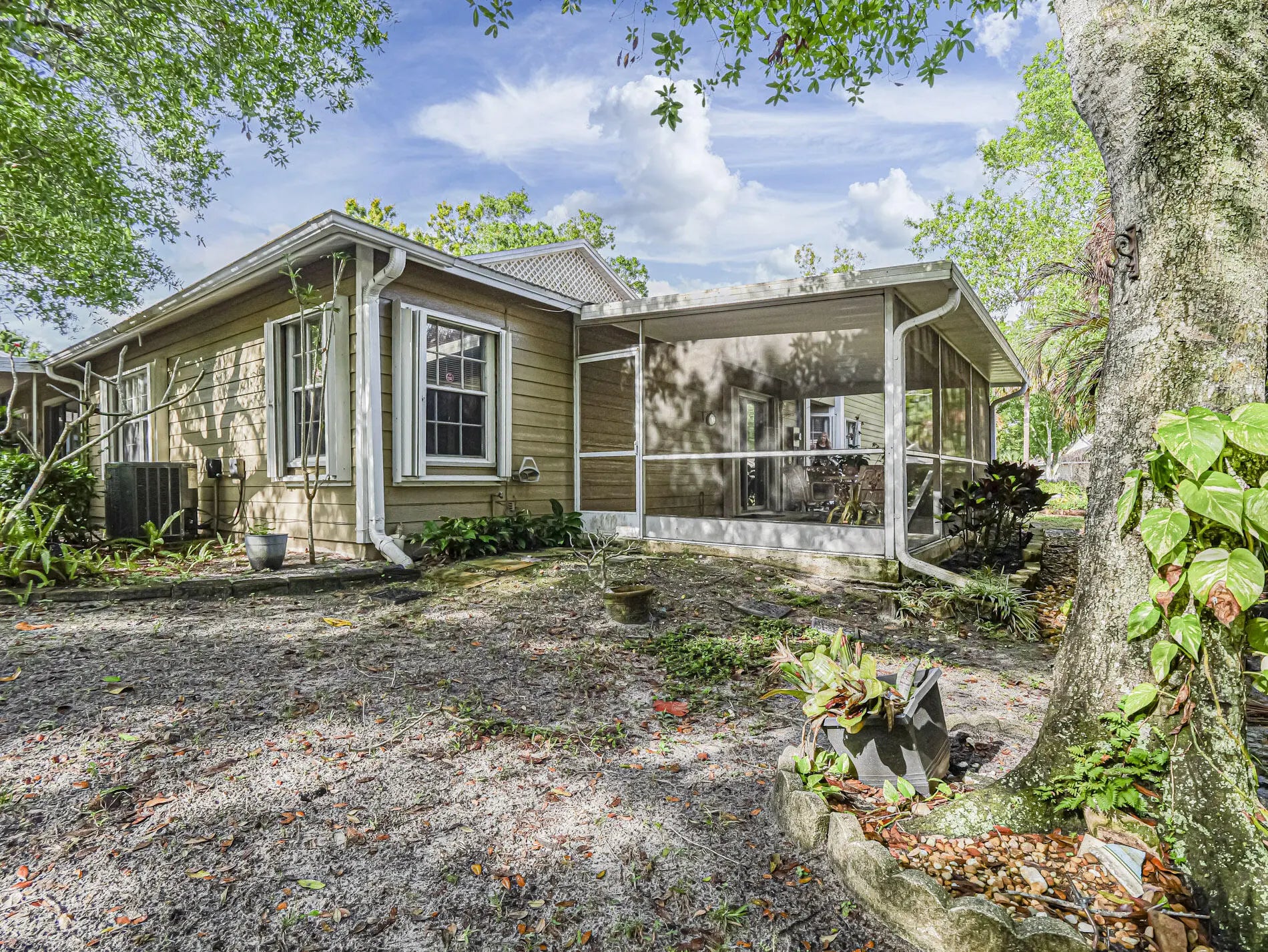 Charming 2BR/2BA villa with a FULL DEN that can serve as a potential 3rd BR, located in the small, tucked-away gated community of Sixty Oaks. This home includes a 1-car garage and screened enclosure ideal for relaxing and enjoying Florida's outdoor lifestyle. Move-in ready or a great opportunity to personalize and make it your own. New roof in 2022. Conveniently located within walking distance to shopping and restaurants, with quick access to I-95 just minutes away. Perfect for full-time residents or seasonal living All room sizes approx.