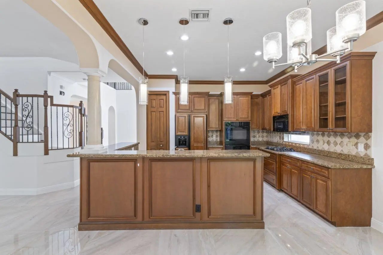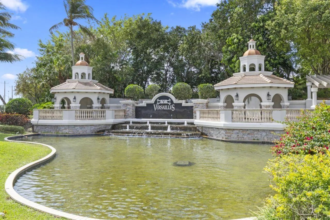 Welcome to a stunning masterpiece in the prestigious Versailles community of Wellington! This residence is a true gem, offering an exquisite blend of elegance, comfort, and luxurious living. With 5 bedrooms, a spacious office/den, and an expansive upstairs loft, there's room for everyone to thrive. The home boasts breathtaking volume ceilings adorned with intricate tin details, while the hardwood flooring and high-quality granite and cabinetry add warmth and sophistication throughout. The gourmet kitchen is a chef's dream, featuring a gas range, double wall ovens, a wood-paneled refrigerator, and 42'' custom wood cabinetry perfect for whipping up culinary creations that delight the senses. Impact windows & doors throughout. Whole home generator! Roof certified for 10 more years.