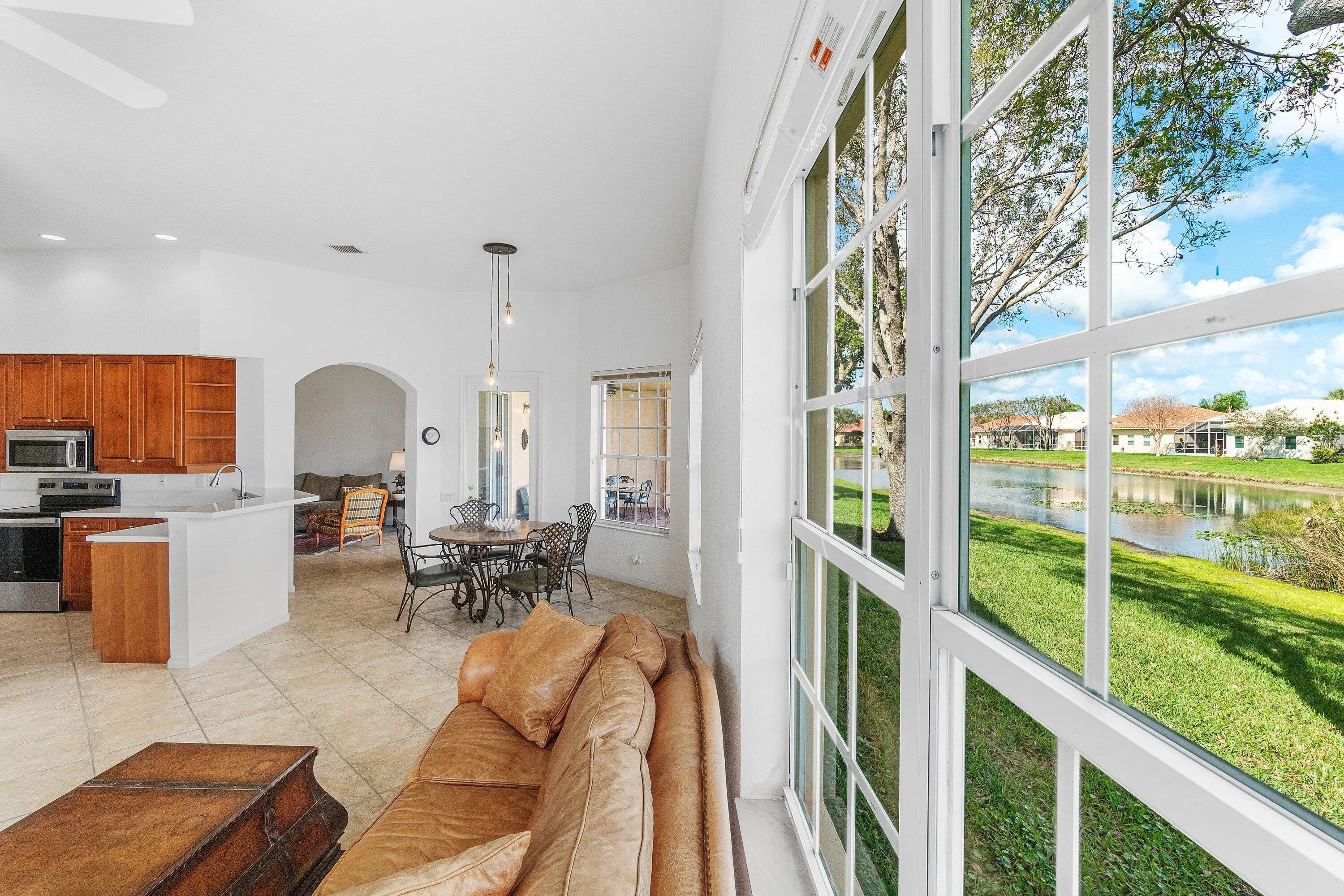 Serene lake views & generous natural light illuminate every corner of this three-bedroom plus office, much sought after Rubicon model. The modernized kitchen features stunning new quartz countertops & sleek stainless appliances, inspiring your inner chef. The spacious primary suite features new carpeting, two walk-in closets, dual sinks, & a separate soaking tub and shower. Nestled at the end of a quiet cul-de-sac, this property features an extended driveway & additional green space, enhancing both privacy & curb appeal. This thoughtfully designed residence perfectly captures the essence of modern Florida living. Ponte Vecchio boasts a magnificent newly renovated clubhouse with numerous activities for everyone. Coming soon is a new Sports Complex (no assessment) that will include new pickleball courts, bocce ball and a putting green - all with no assessment fee for this fantastic new addition! Embrace a lifestyle of leisure and luxury in this wonderful community.