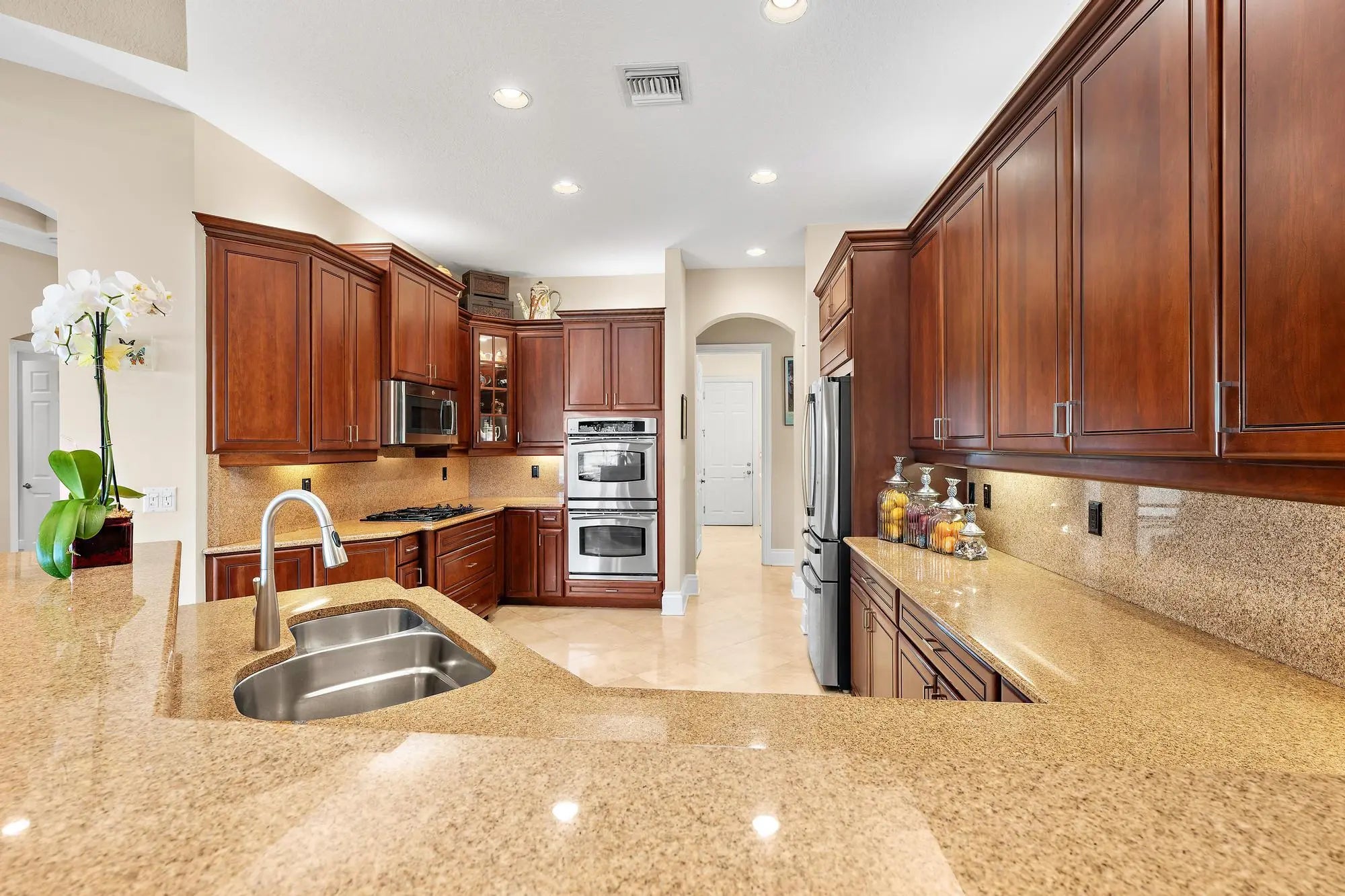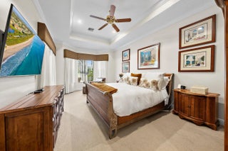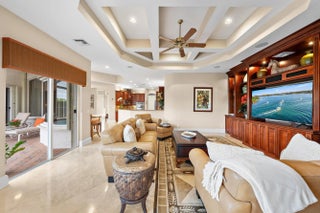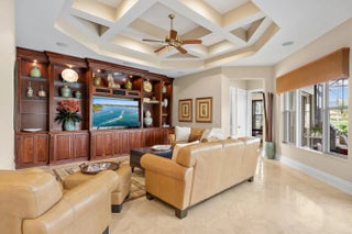 This one-owner residence has been exceptionally well built, thoughtfully upgraded, and meticulously maintained, offering a rare opportunity on a premium west-facing water and golf lot in Isla Vista, overlooking the 10th hole of the Tradition Course. With impact glass across the front elevation, accordion hurricane protection on remaining openings, and a 2025-installed generator, this home delivers both beauty and confidence. The Engel Homes "Hawthorne" model offers 3 bedrooms, 3 baths, plus a den, enhanced by timeless marble flooring, elevated moldings, tray ceilings, and refined architectural detailing throughout. The upgraded kitchen is designed for both functionality and style, featuring double ovens, upgraded wood cabinetry with glass display accents, a built-in spice rack, pull-out drawers for pots and pans, uplighting above the cabinetry, and a new stainless refrigerator (2026) and dishwasher (2024). A custom breakfast banquet with built-in seating and storage overlooks the pool and spa, framed by some of Ibis's most spectacular sunset golf views. The family room impresses with dramatic box-beam ceilings and a custom illuminated wall unit complete with wine storage and pull-out drawers. The expanded primary suite offers a private sitting area, built-in desk and cabinetry, and a beautifully appointed bath featuring marble flooring, seamless glass shower enclosure, rain shower with seat, and elegant finishes. All bedrooms feature tray ceilings and California Closets. Additional enhancements include a two-zone HVAC system, upgraded lighting package with accent spotlights, and custom linen draperies. Outdoor living is equally compelling, with a screened pool and spa featuring a 2021 heater, Jandy remote system, enhanced lighting, and autofill. Three sets of sliders open to the expansive enclosure, creating seamless indoor-outdoor living. The landscape irrigation system draws from the lake, offering significant savings in water costs. Located within the desirable Isla Vista enclave, residents enjoy the exceptional lifestyle of The Club at Ibis, including a 90,000-square-foot clubhouse, three Nicklaus-family championship golf courses, five dining venues, a world-class fitness complex and spa, and premier racquet facilities. With membership fees scheduled to increase, buyers who go under contract by April 1, 2026 and close by June 12, 2026 may save a minimum of $30,000.