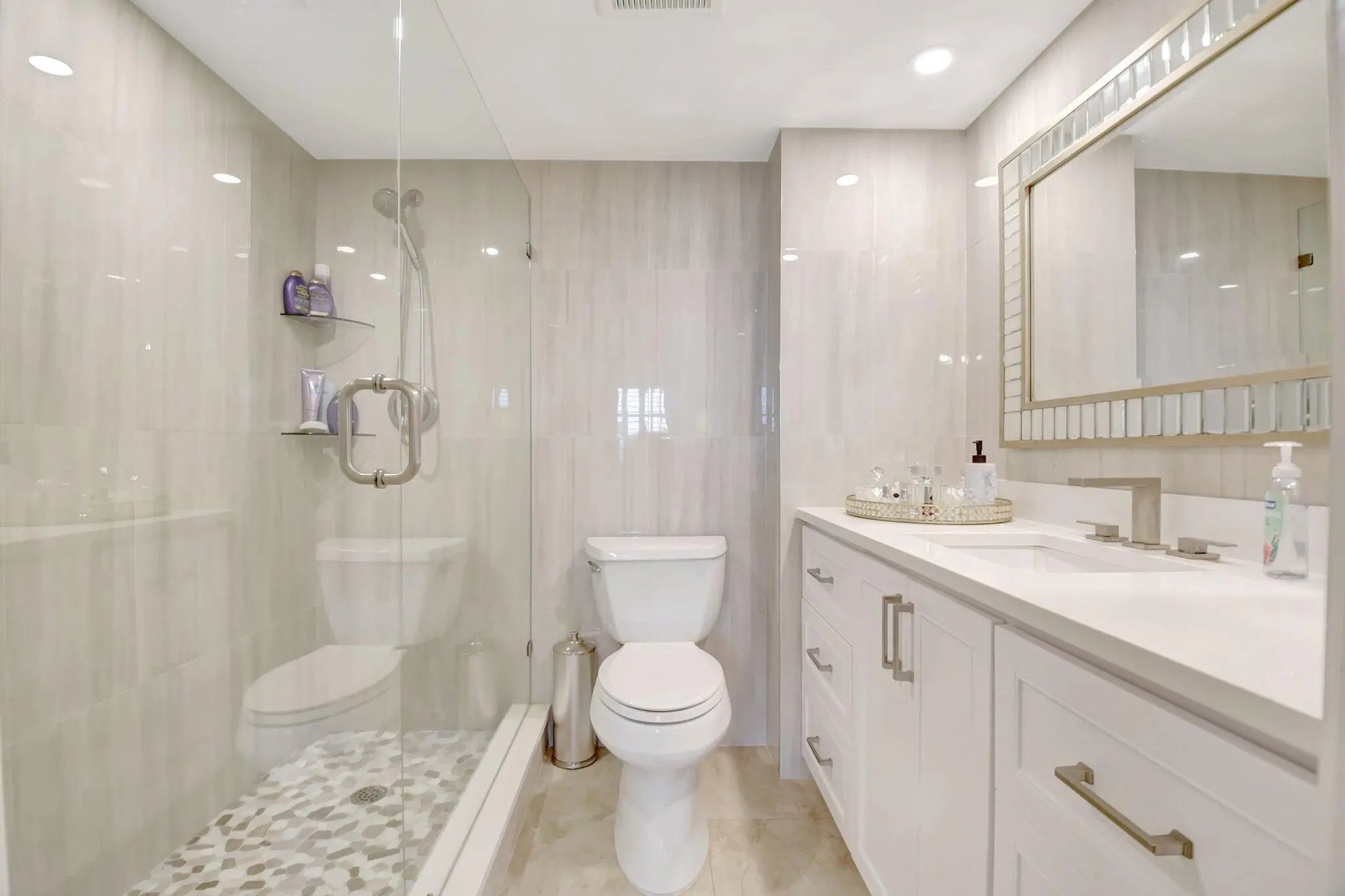 Welcome to this beautifully renovated 2BR/2BA condo in the highly sought-after Seagate of Highland Beach, a premier over-55 community. This home is the epitome of luxury coastal living, featuring stunning design elements like crown molding, 24-inch large profile tiles, plantation shutters and beautiful hardware throughout. The kitchen and bathrooms have been masterfully upgraded with custom cabinetry, quartz countertops, & exquisite tile work, creating a truly high-end feel. The modern kitchen is perfect for cooking and entertaining, while the bathrooms boast seamless shower doors and floor to ceiling tiles for a spa-like experience. Enjoy peace of mind with impact windows and sliders for hurricane protection, along with updated air conditioning and a new water heater (2023). The spacious enclosed patio offers breathtaking views of the Intracoastal Waterway, community gardens and pool, perfect for enjoying the glorious sunsets. For added convenience, the unit also comes deeded with its own covered parking space, ensuring you always have a secure, shaded spot. Seagate of Highland Beach is not just a place to live, but a community offering an incredible array of resort-style amenities. Two stunning pools with panoramic Intracoastal views provide a serene escape, while the waterfront clubhouse features a full kitchen, billiard room, and BBQ grills. Stay active in the fitness center or relax in the beautifully landscaped outdoor areas. For boating enthusiasts, Seagate offers a community "day" dock for boats up to 40 feet, and dockage is available with management approval for overnight stays. Plus, there's ample resident and guest parking for your convenience. The community has recently completed a re-certification, including new roofs, luxurious elevators, resurfaced pools, updated lobbies, and new dockage. With fully funded reserves, Seagate of Highland sets the standard for luxury coastal living. Located just steps from your private deeded beach access, this condo provides the perfect balance of tranquil beachside living and easy access to shopping, dining, and entertainment. This is a one-of-a-kind opportunity to own a piece of paradise schedule your private tour today!