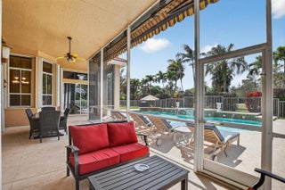 Majestic 5-bedroom,3-bath,home is ideally positioned on the 17th green of the prestigious Wellington National Golf Club within the highly sought-after gated community of Binks Estates. Situated on just under half an acre, this impressive one-story home perfectly blends luxury, comfort, and functionality. From the moment you enter, you're greeted by sweeping golf course views through expansive sliding glass doors that seamlessly connect the interior living spaces to the screened patio adjacent to the 40'x 20'propane heated pool and BBQ creating the ultimate indoor-outdoor lifestyle. The thoughtfully designed split-bedroom floor plan blends form and function beautifully. Extra room off the garage is the perfect office, playroom, gym, or media room. For convenience, the home is equipped with central vacuum,500-gallon propane tank, accordion hurricane shutters, new well, Tesla EV charging station and new HVAC installed in 2024. The chef's kitchen opens to the inviting family room, creating the perfect space for everyday living and gatherings alike. Located just minutes from Wellington's top-rated schools, Binks Forest Elementary, Wellington Landings Middle School and Wellington High School, world-class equestrian venues, fine dining, shopping, hospitals, and major airports, this home offers an exceptional lifestyle in one of the area's most desirable communities. A rare opportunity to own a premier golf course estate Schedule your private showing today!!