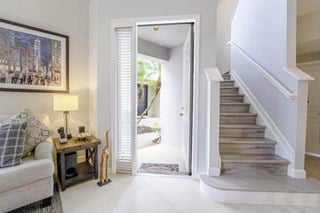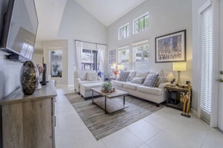 Your opportunity to own in the heart of Tradition in the desired subdivision of Bedford Park "A Porch Community" This beautiful updated corner unit of 3 BR / 2.5 BA with the master bedroom suite on the 1st floor. Walk and built-in closet with waterproof vinyl flooring. No carpets, Ceramic and Vinyl flooring throughout. Updated white kitchen 42" cabinets with quartz countertops and stone backsplash. The living room has 25' ceilings which brings in an abundance of light. The 2nd floor boasts a large loft area with 2 bedrooms and a full bathroom. Attached 2 car garage in the rear of the property. Metal roof which is covered by the HOA and hurricane resistant impact glass. Yard is completely fenced off with pavers and screened covered patio, great for entertainment, pets, children and more. Easy walking distance to the club house, pool, shopping, restaurants and schools. No Tradition CDD! Call today for your VIP viewing! Gas Water Heater 2023 - Air Conditioner 2020