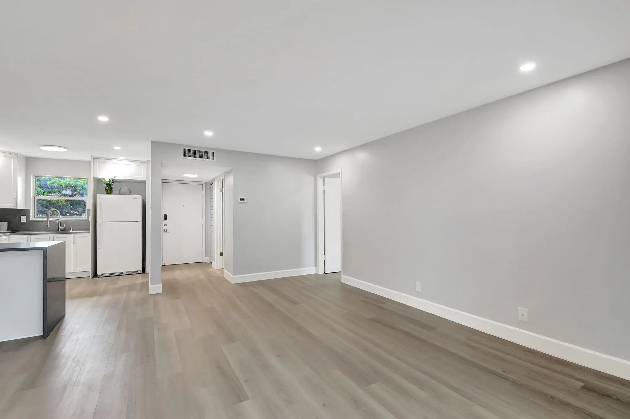 Beautifully renovated 1-bedroom, 1.5-bathroom in an exclusive 55+ community! Water, Internet, Basic cable included. This condo has modern upgrades and a sophisticated design, creating the perfect retreat for comfortable living. Step into an open-concept kitchen featuring quartz countertops, luxurious 40-inch soft-close cabinets with convenient pull-outs for optimal storage, and a spacious layout ideal for entertaining. The entire space is floored with high-quality luxury vinyl, offering both elegance and durability, while LED lighting fixtures provide a warm ambiance throughout. A new A/C system ensures year-round comfort. This apartment combines style and functionality, with every detail thoughtfully designed for ease of living. Schedule a tour today!