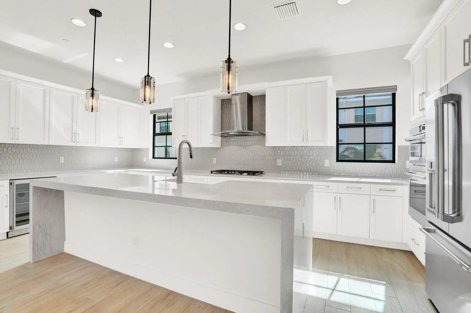 Welcome home to this fabulous lakefront CORNER UNIT serenity! This stunning filled with bright natural light 2023 CBS 3-bedroom PLUS den, 3.1-bathroom home with a spacious 2-car garage offers beautiful and peaceful lake views you'll fall in love with every day. Step inside to discover elegant wood-look tile floors, a den, full bath & storage on main floor. Climb up to the 2nd floor unto the main living area to find breathtaking waterfall quartz countertops, sleek modern SS appliances (including a gas stove & wine fridge) a walk-in pantry, extended cabinetry and energy-efficient design throughout, style and sustainability in perfect harmony. On the 3rd floor you have the convenient laundry room, the main bedroom with large walk in California closets (his & hers) custom designed and 2 other bedrooms sharing a bathroom. Enjoy a resort-style clubhouse with a sparkling pool, fully equipped fitness center, basketball court, and more, the perfect spot to unwind or play. Conveniently located near I-95 and the Turnpike, you're just minutes from beaches, PGA National Resort, Gardens Mall, and Downtown at the Gardens. Stop dreaming, your perfect home is here. Come experience it in person and make it your own!