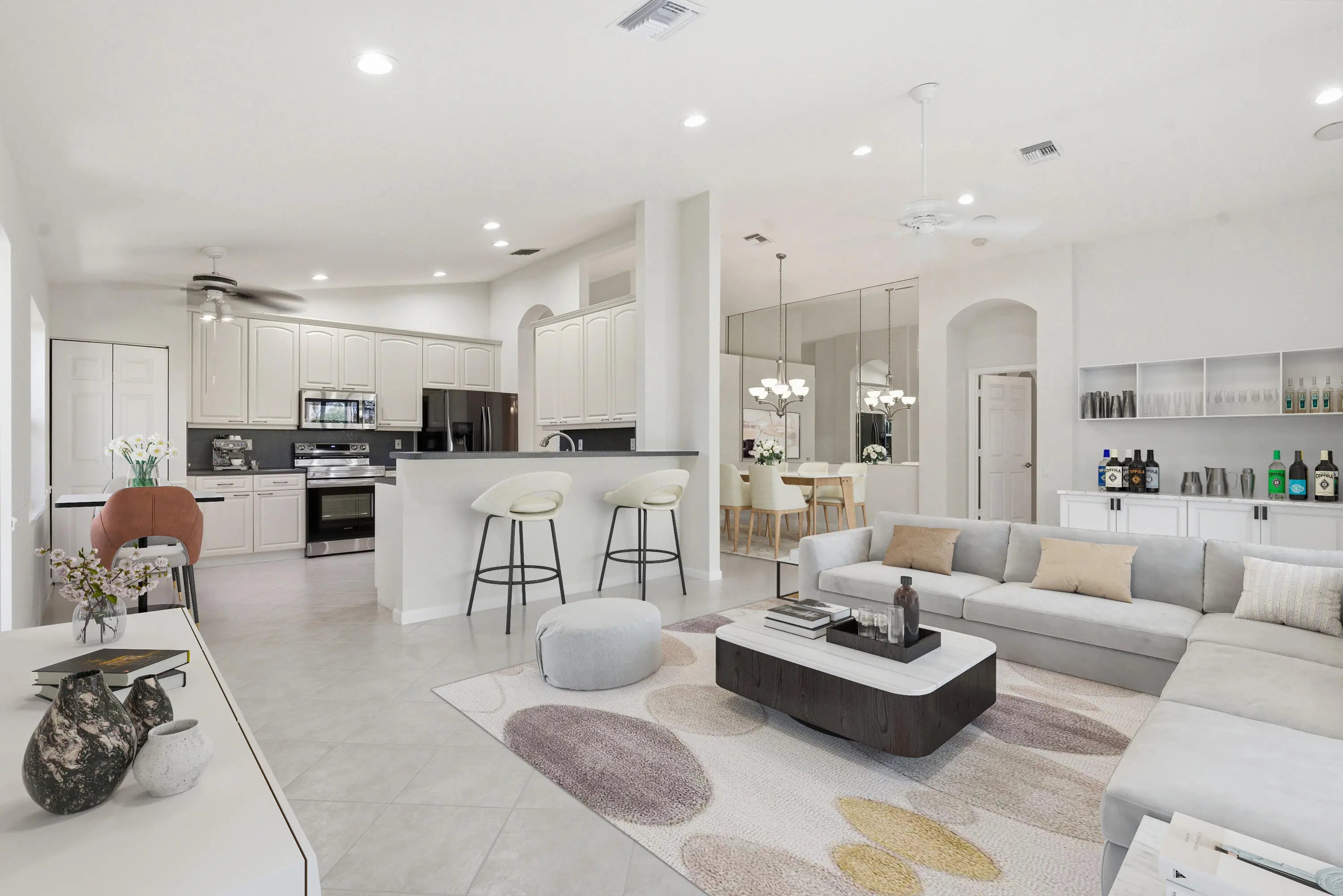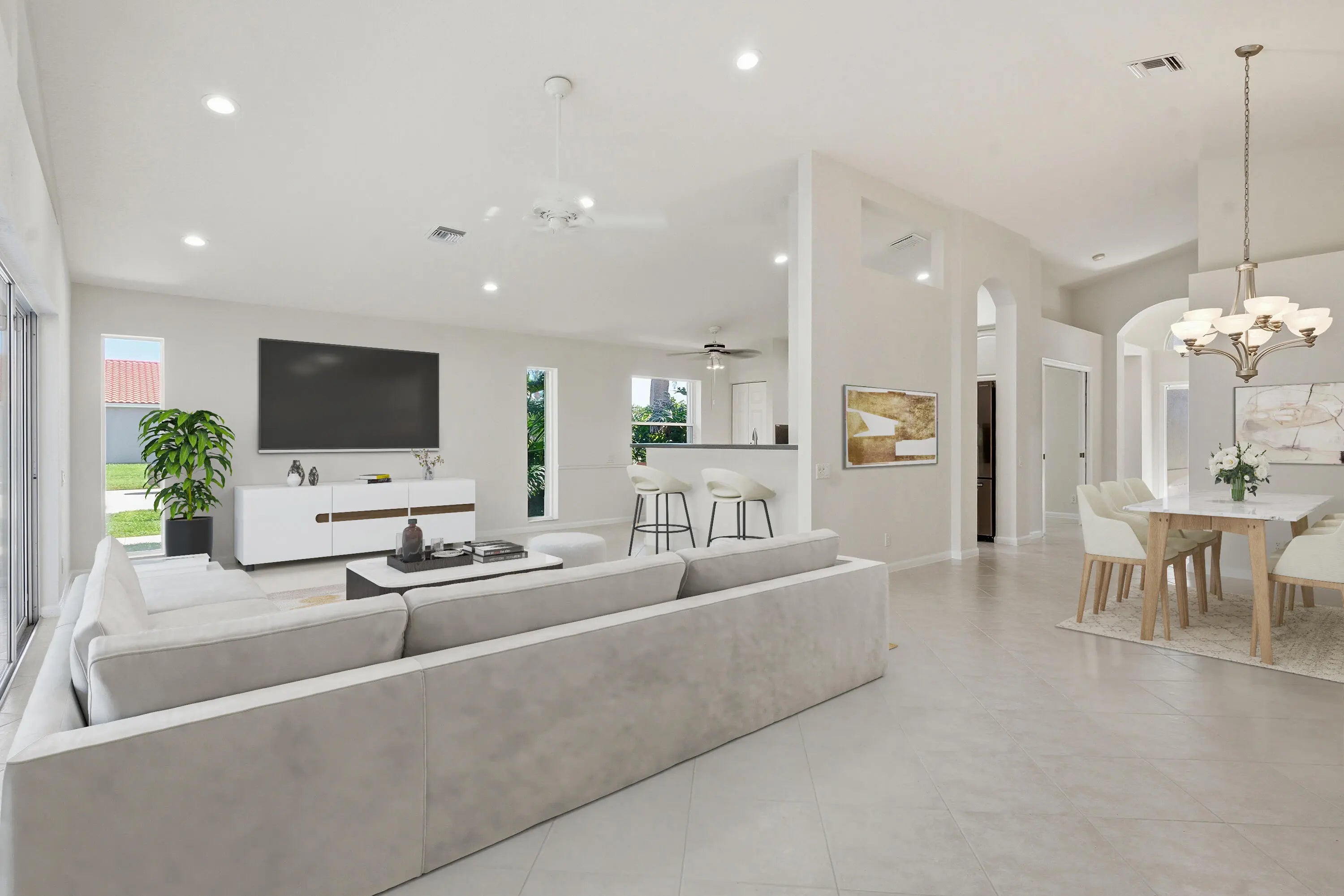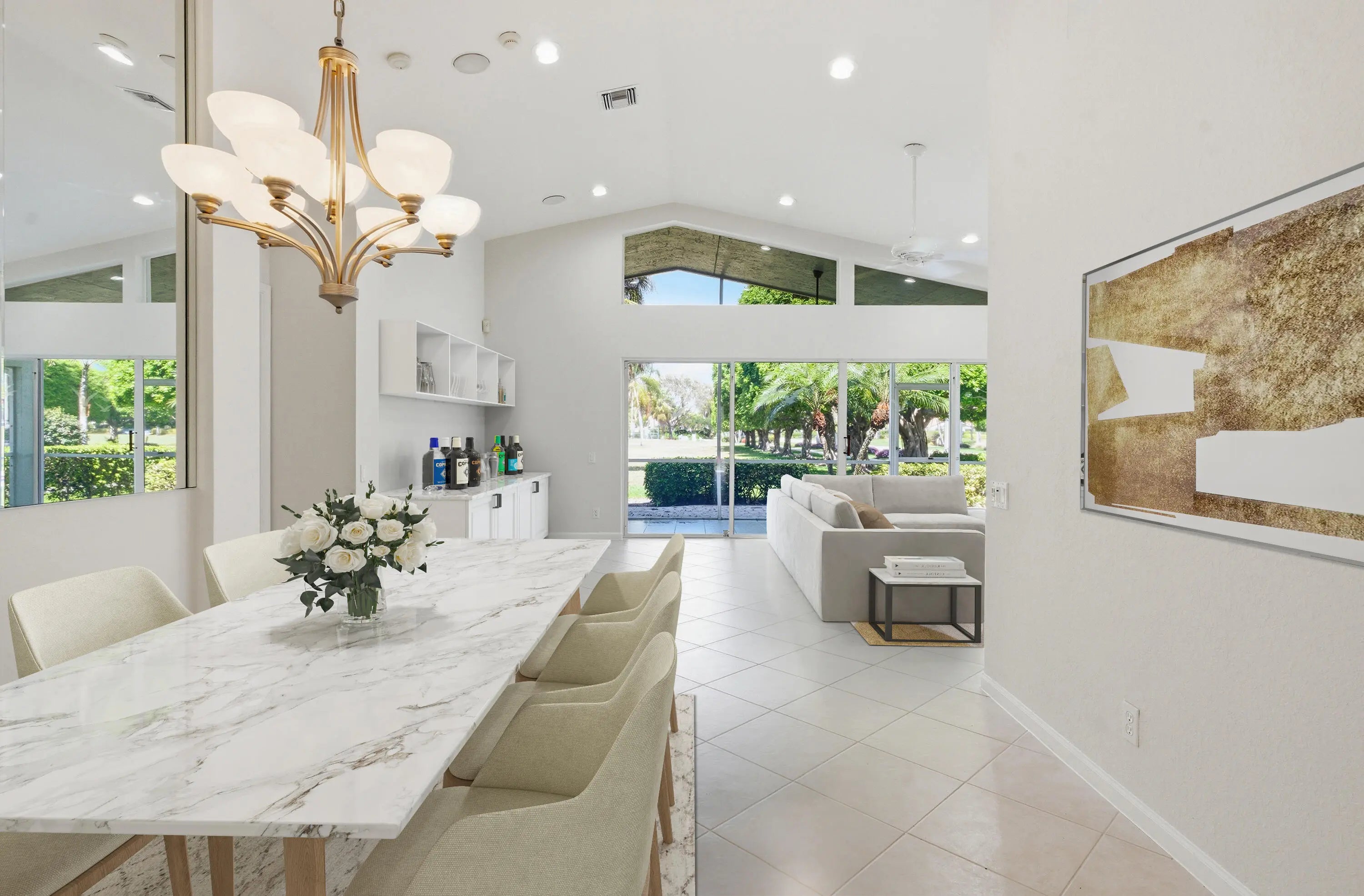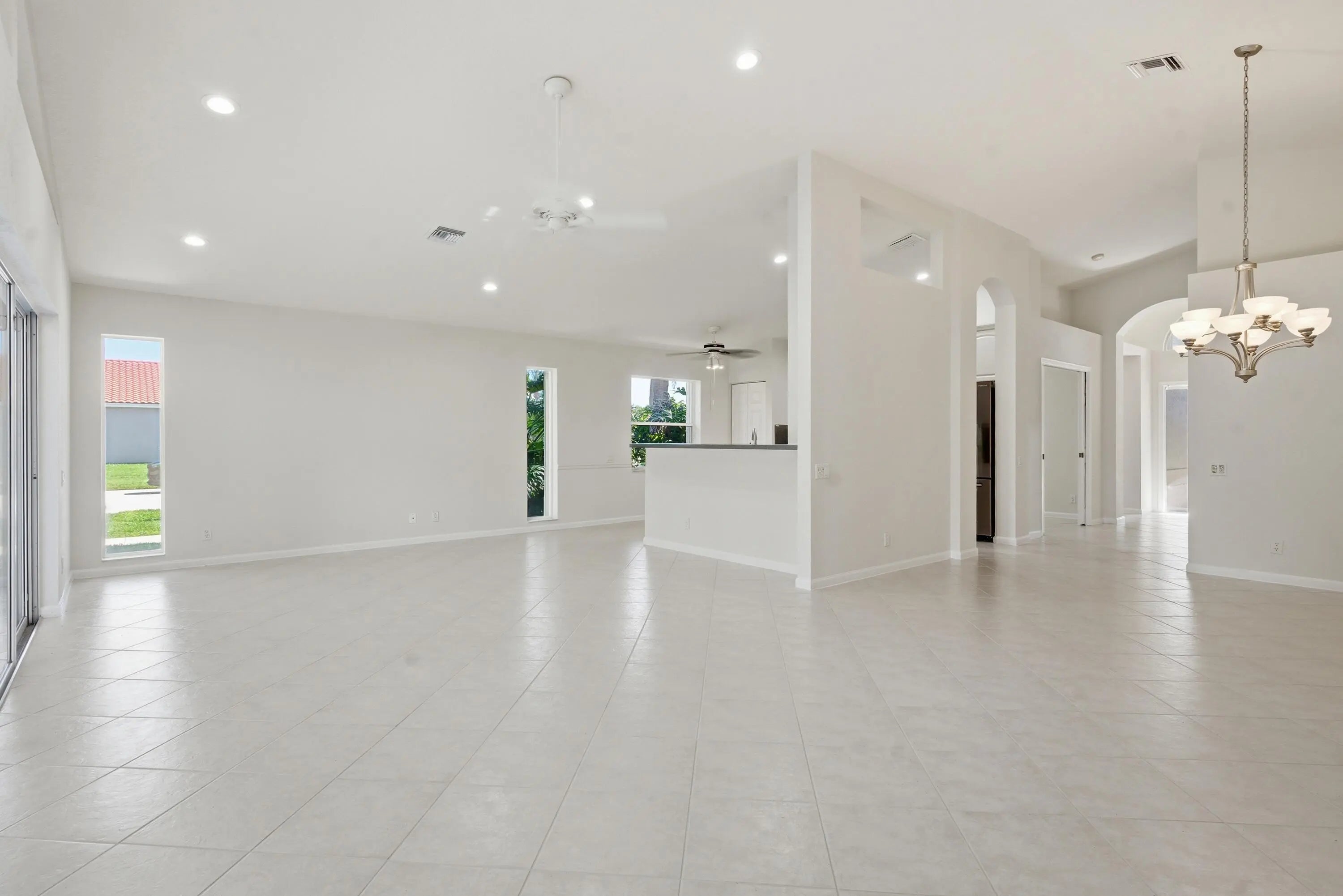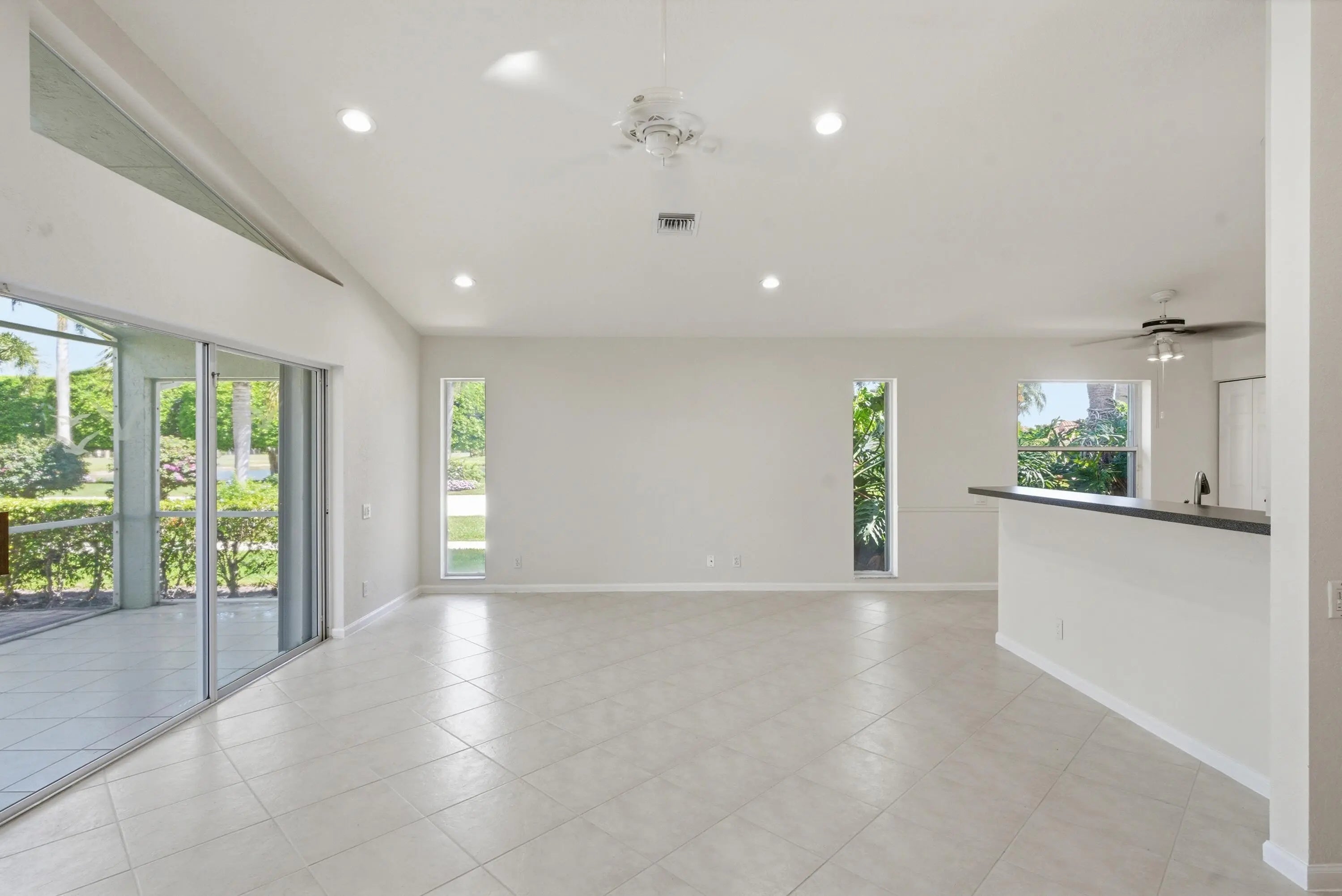 Enjoy sweeping golf course views from this bright, spacious home designed for effortless Florida living. The moment you step inside, you're welcomed by a huge open floor plan that offers an incredible amount of living space, perfect for relaxing, entertaining, or hosting family gatherings. Neutral tile laid on the diagonal flows throughout the home, adding both style & easy maintenance. The living areas open seamlessly to a screen enclosed lanai, where you can unwind with morning coffee or evening sunsets while taking in the peaceful water view adjacent to the lanai and fairway backdrop. With great bones & an inviting layout, this home simply needs a bit of decorating to make it truly shine. The potential is outstanding. Cascades offers all the amenities anyone can ask for!