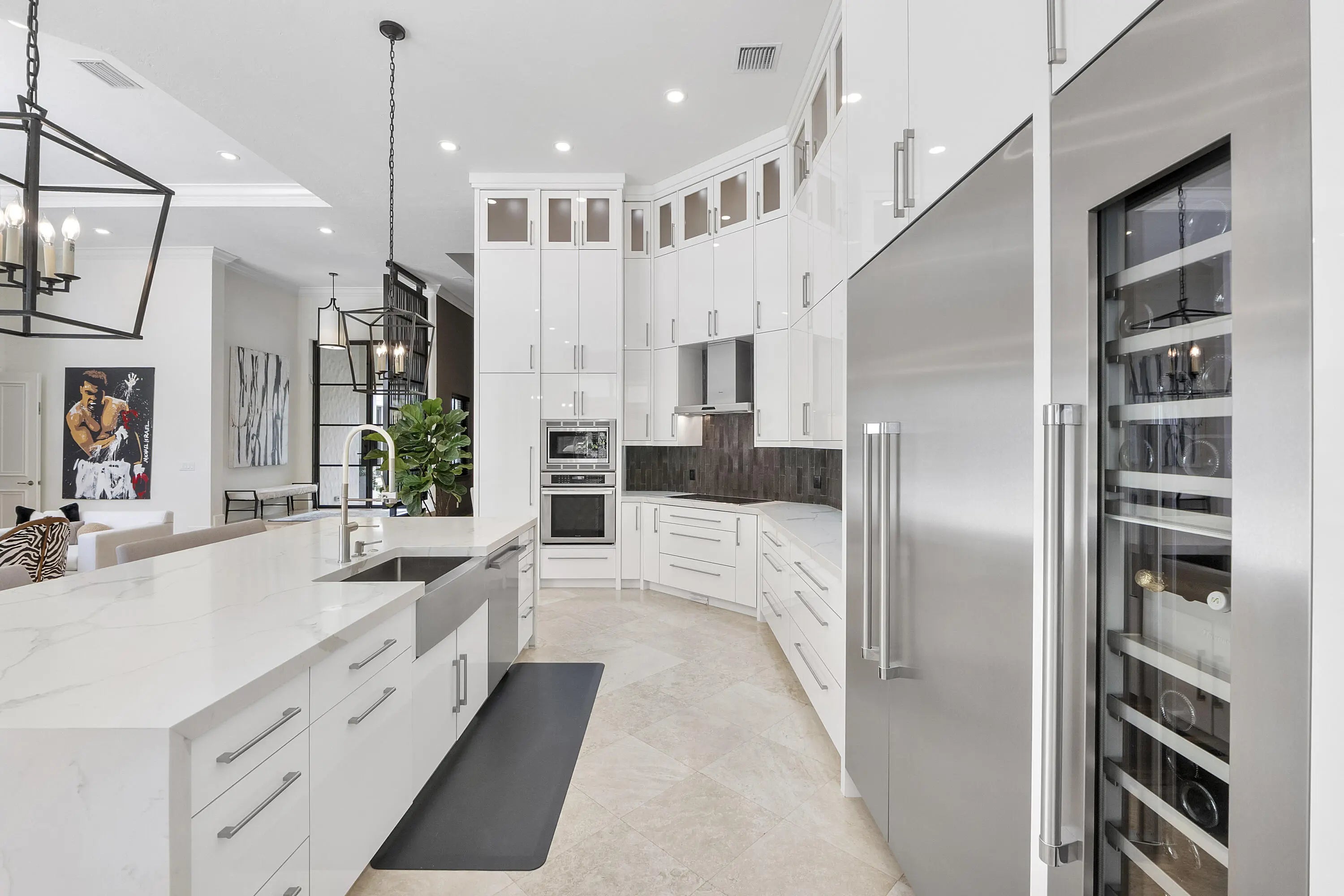 Custom-built Luxury Pool Home in the prestigious Parkland Golf & Country Club, ideally positioned on a private cul-de-sac overlooking the 11th green and 12th tee. Remodeled by local Luxury builder - Ellemar, this beautiful home offers 4,479 sq. ft with 4 bedrooms, 3 baths, and a 3-car garage with epoxy flooring. Refined interiors showcase soaring ceilings, tray details, crown molding, travertine and wood floors, formal living and dining rooms, and a gourmet kitchen with Thermador appliances, quartz counters, and waterfall island. The split layout boasts a luxurious primary suite with custom dual closets. Outdoors, enjoy a paved pool deck, fire-pit, turf side yard, and a stunning 1,134 sq. ft custom pavilion by builder Ellemar with full outdoor kitchen—an exceptional space for entertaining.