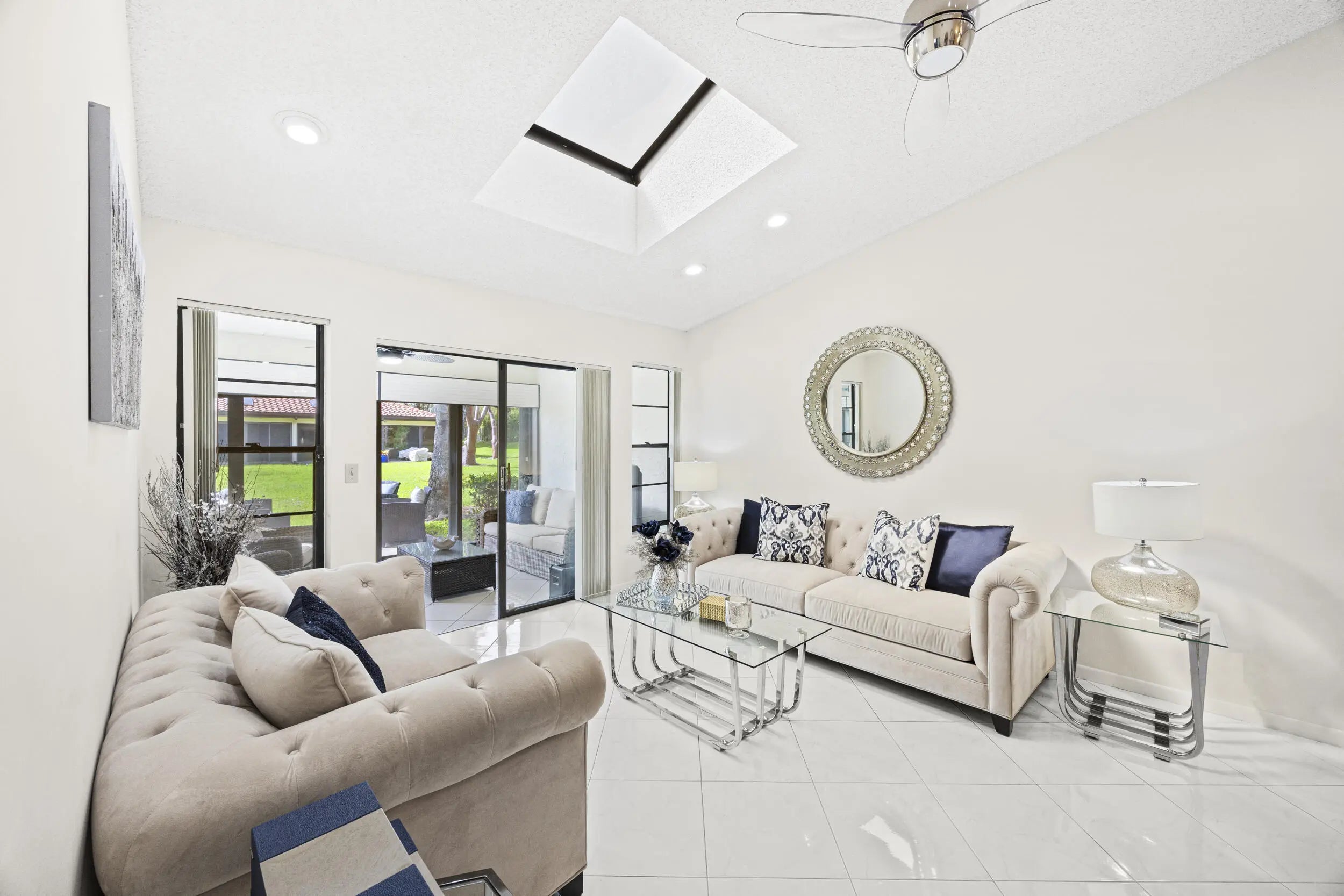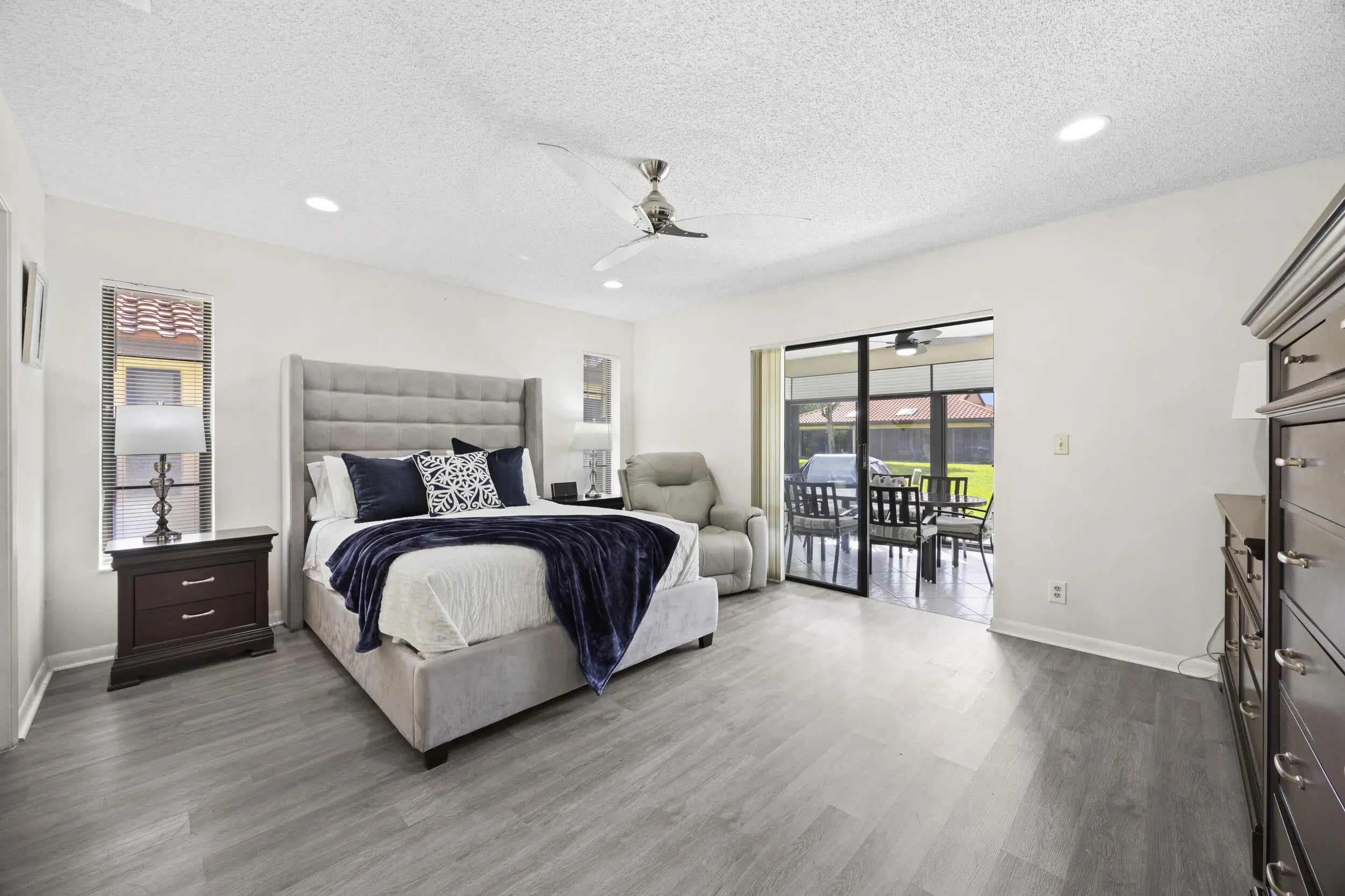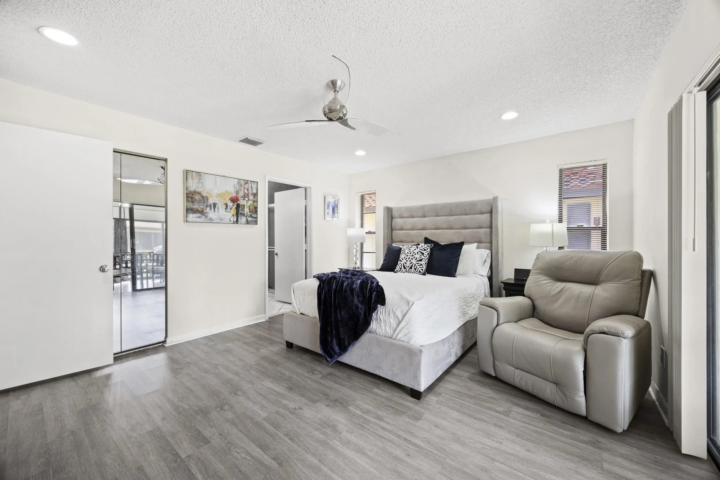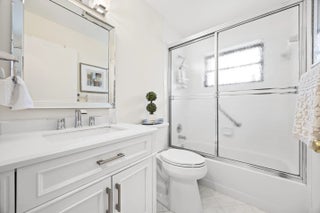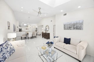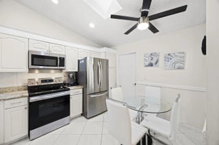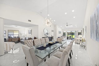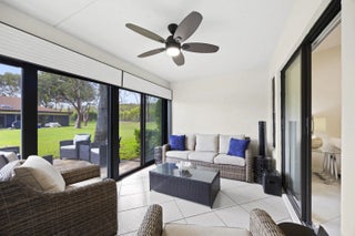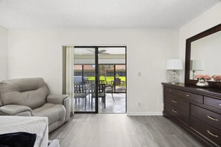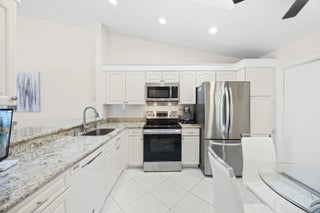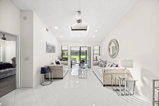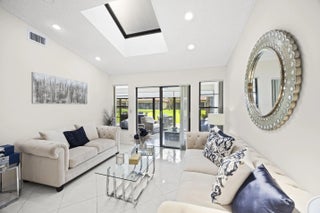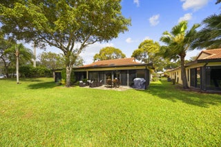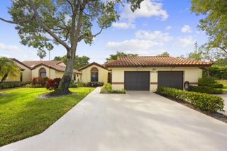 Beautifully updated bright and airy villa featuring high vaulted ceilings and located on a quiet cul-de-sac in the highly desirable Palm Chase Lakes community. This spacious home offers a renovated kitchen with updated cabinetry, granite countertops, and stainless steel appliances. Enjoy an open layout with tile flooring and updated luxury vinyl flooring throughout. The bright glass-enclosed, air-conditioned Florida room provides additional living space perfect for relaxing or entertaining. The primary suite features sliding glass doors, abundant natural light, and a beautifully updated bathroom. Step outside to an extended paver patio—one of the only ones in the community—ideal for outdoor entertaining. Palm Chase Lakes offers a gated entrance, resort-style amenities & much more!