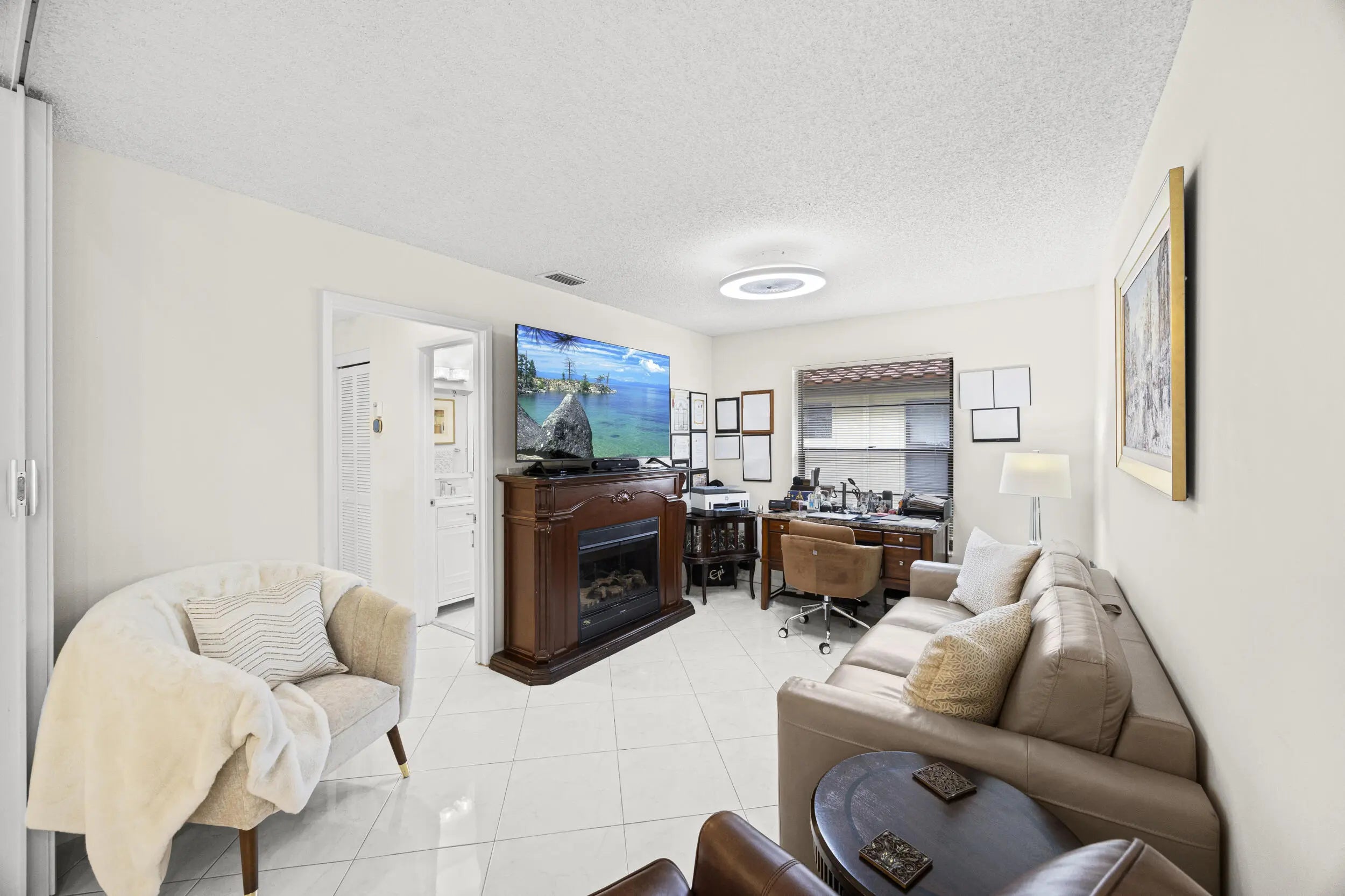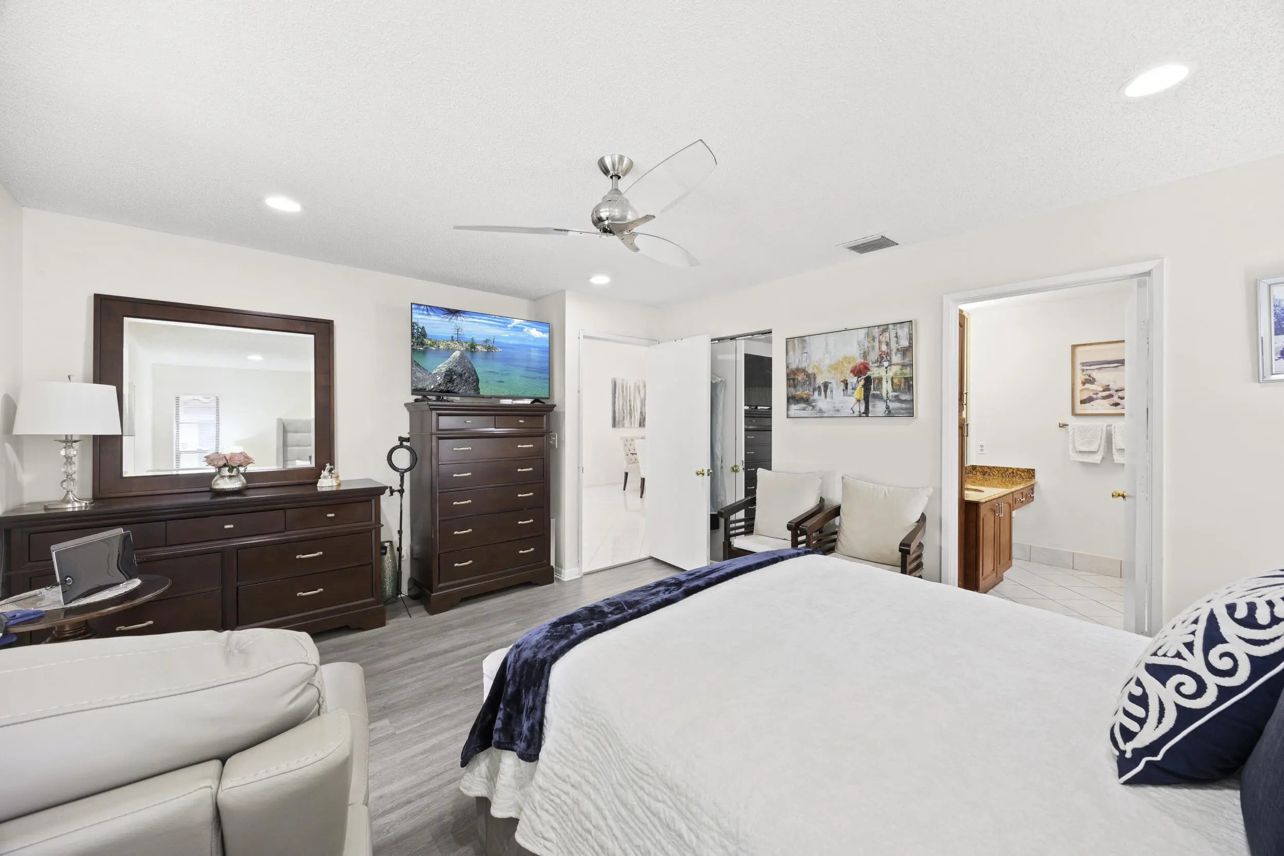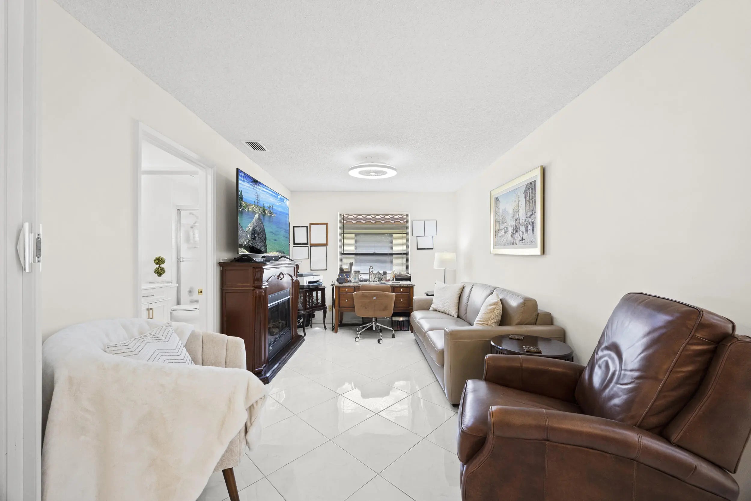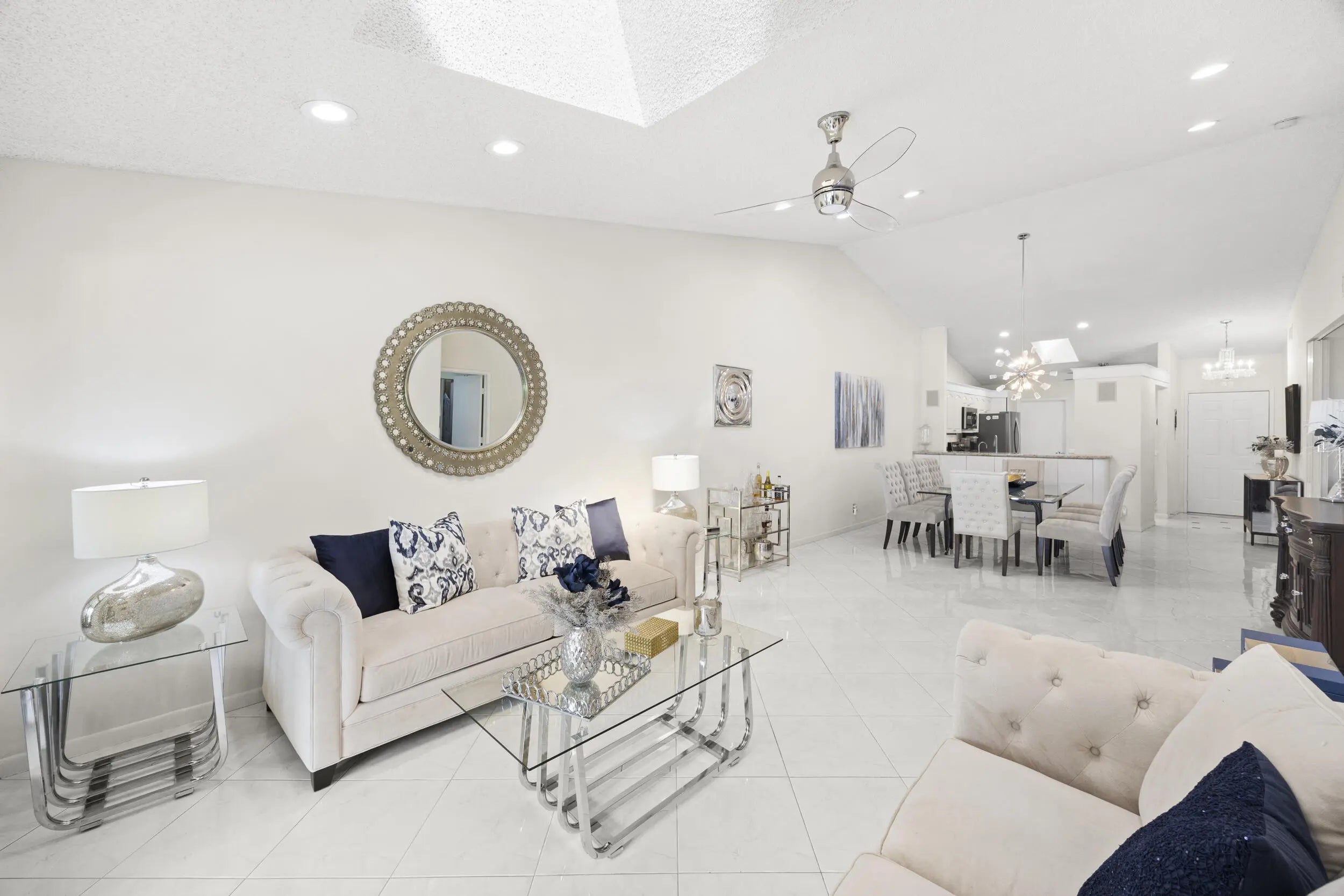 Beautifully updated bright and airy villa featuring high vaulted ceilings and located on a quiet cul-de-sac in the highly desirable Palm Chase Lakes community. This spacious home offers a renovated kitchen with updated cabinetry, granite countertops, and stainless steel appliances. Enjoy an open layout with tile flooring and updated luxury vinyl flooring throughout. The bright glass-enclosed, air-conditioned Florida room provides additional living space perfect for relaxing or entertaining. The primary suite features sliding glass doors, abundant natural light, and a beautifully updated bathroom. Step outside to an extended paver patio—one of the only ones in the community—ideal for outdoor entertaining. Palm Chase Lakes offers a gated entrance, resort-style amenities & much more!