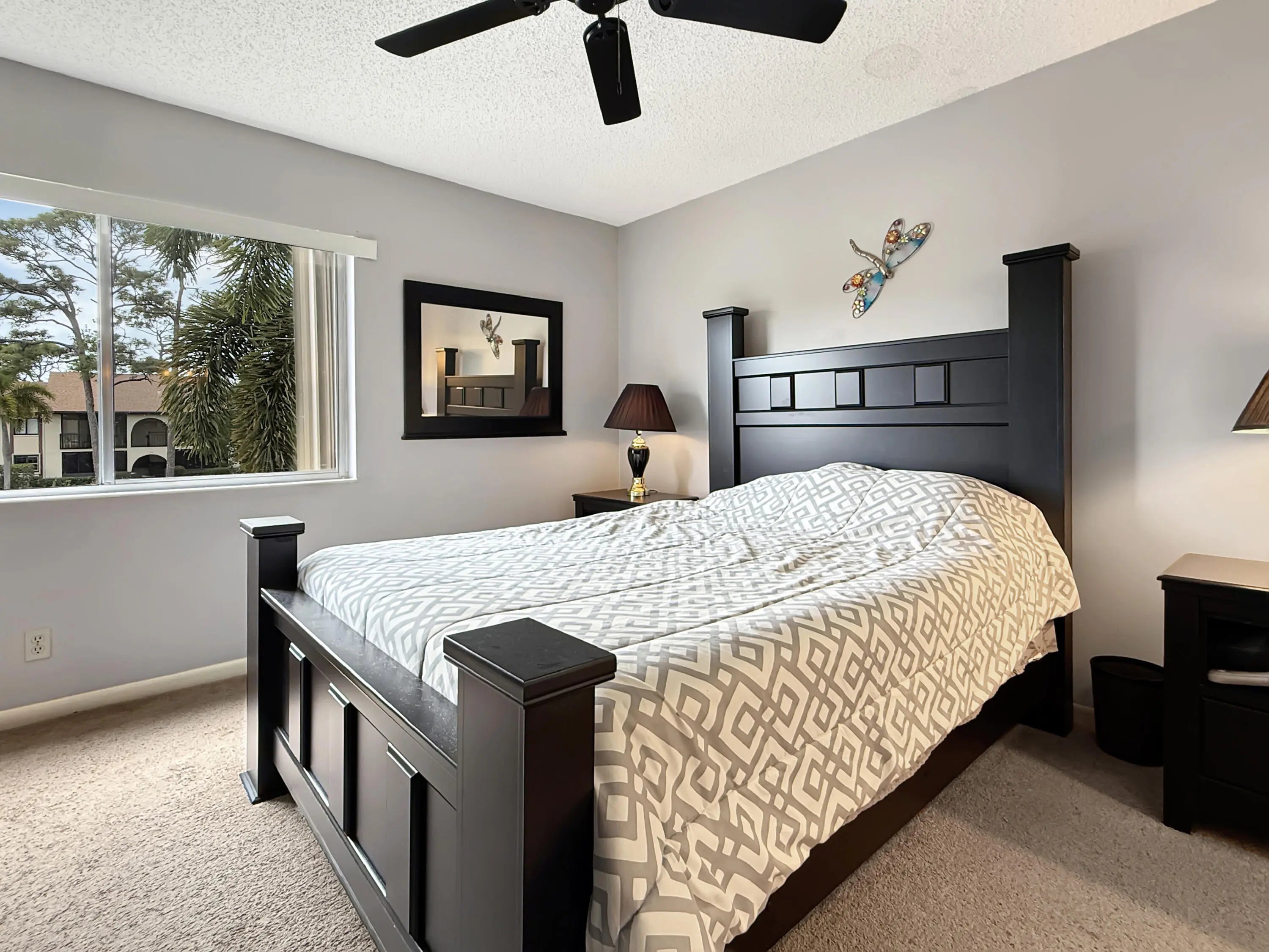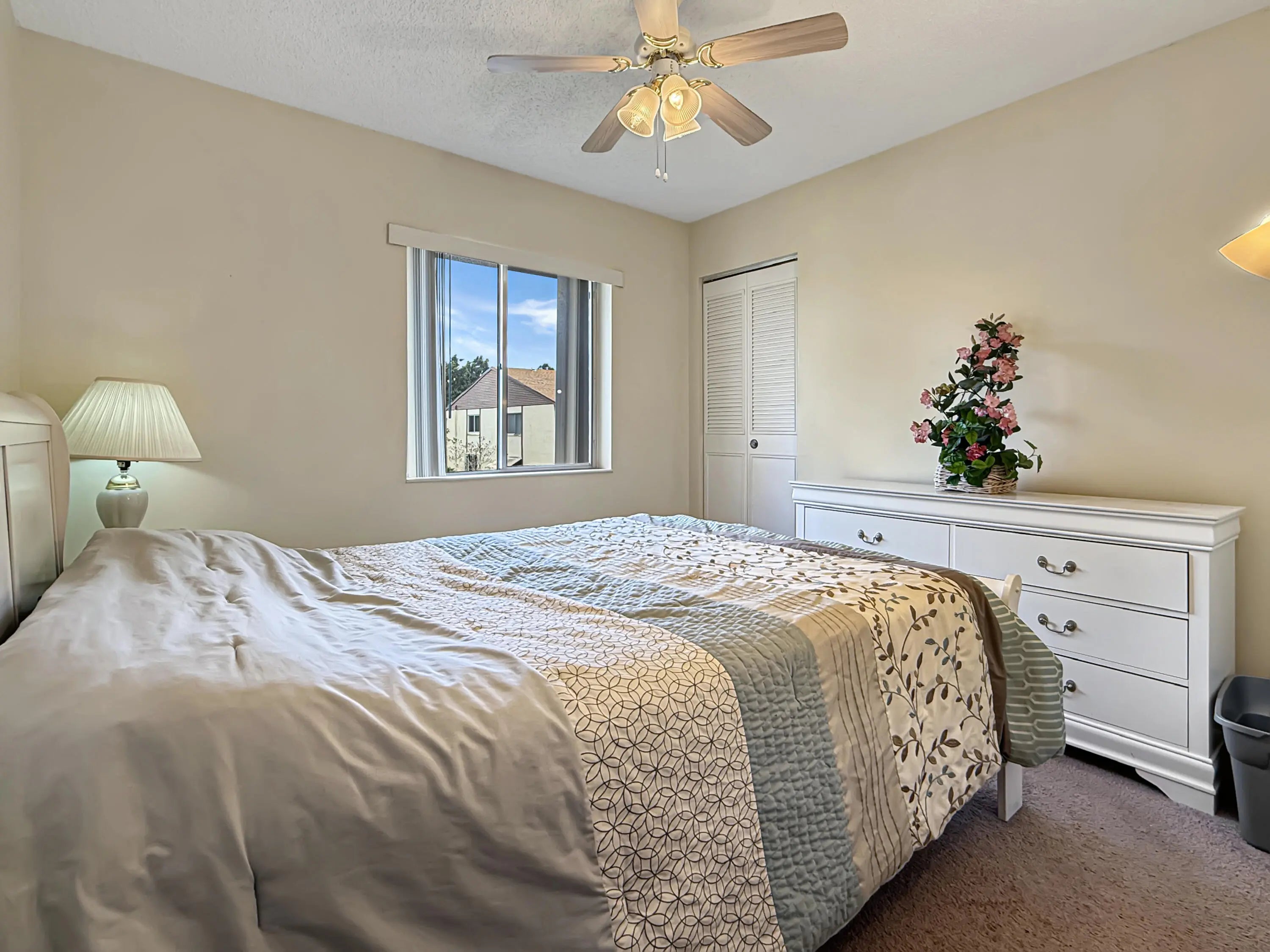 Welcome to 55+ Pine Ridge South 3! Charming 818 sq ft condo offers two spacious bedrooms & one well-appointed bathroom. Step inside to discover a thoughtfully designed interior featuring a convenient breakfast bar, perfect for casual dining & entertaining. The condo boasts a mix of carpet, laminate flooring & tile, enhancing the warm & inviting atmosphere throughout. Enjoy serene garden views from your private balcony, providing a peaceful retreat to unwind & relax. The southeastern exposure ensures ample natural light, creating a bright & airy ambiance in every room. The primary bedroom includes a generous walk-in closet & an ensuite. For your convenience, the unit includes a dedicated laundry room with a washer & dryer. 2024 Roof, water heater & refridge. Appliances less than 7 yrs.