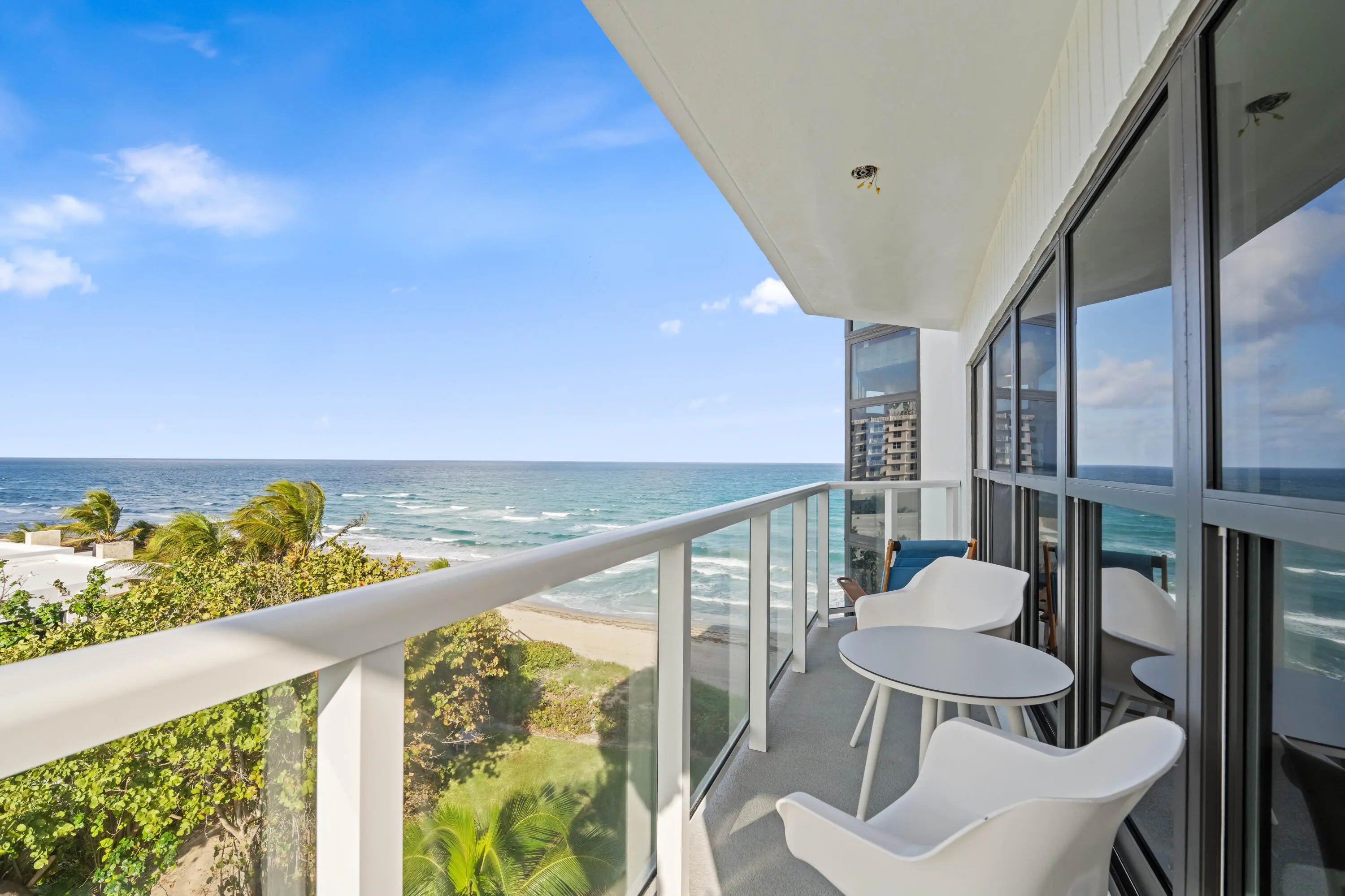 Prestigious, beachfront condo in Highland Beach with breathtaking ocean, Intracoastal and city views! This spacious 3-bed, 3-bath boasts 2,600 sqft of comfort with ample living and dining rooms. Wake up to sunrise ocean views from your primary bedroom. En-suite bath with separate tub, shower and W.C. & dual sinks. Large 2nd suite has private entry, en-suite bath & walk-in closet. 3rd bedroom/den with city views. Newer appliances, in-unit laundry & extra storage in garage. Recent updates: hurricane impact windows & doors, glass balcony railings, lobby, social room and gym. This 26-unit boutique building is self-managed, has 400 ft of private beachfront, a heated pool, spa, BBQ area and dog park. Steps from Spanish River Park, easy access to Boca's best dining, shopping and entertainment. -Direct Beach access -2,600 SF under air -Dual A/Cs -Unit renovated in 2021 -Wrap around balcony -Expansive views -Bedroom Ocean views -Modern appliances -Hurricane Impact Complete -Renovated Lobby, Gym, Bar, Community Room -Heated Oceanfront Pool -Building Concrete Restoration Completed 2026 -Fully funded SIRS reserves. -Milestone inspections Completed -All assessments already paid by seller -HOA includes full reserves, water, sewer, garbage, private beach cleaning. -Pet friendly - 2 pets up to 20 lbs each -1 deeded garage space and 2 spots at lobby level -EV charging outlet in garage. 7c -Monitored Security camera system -Fob secured access to building and amenities