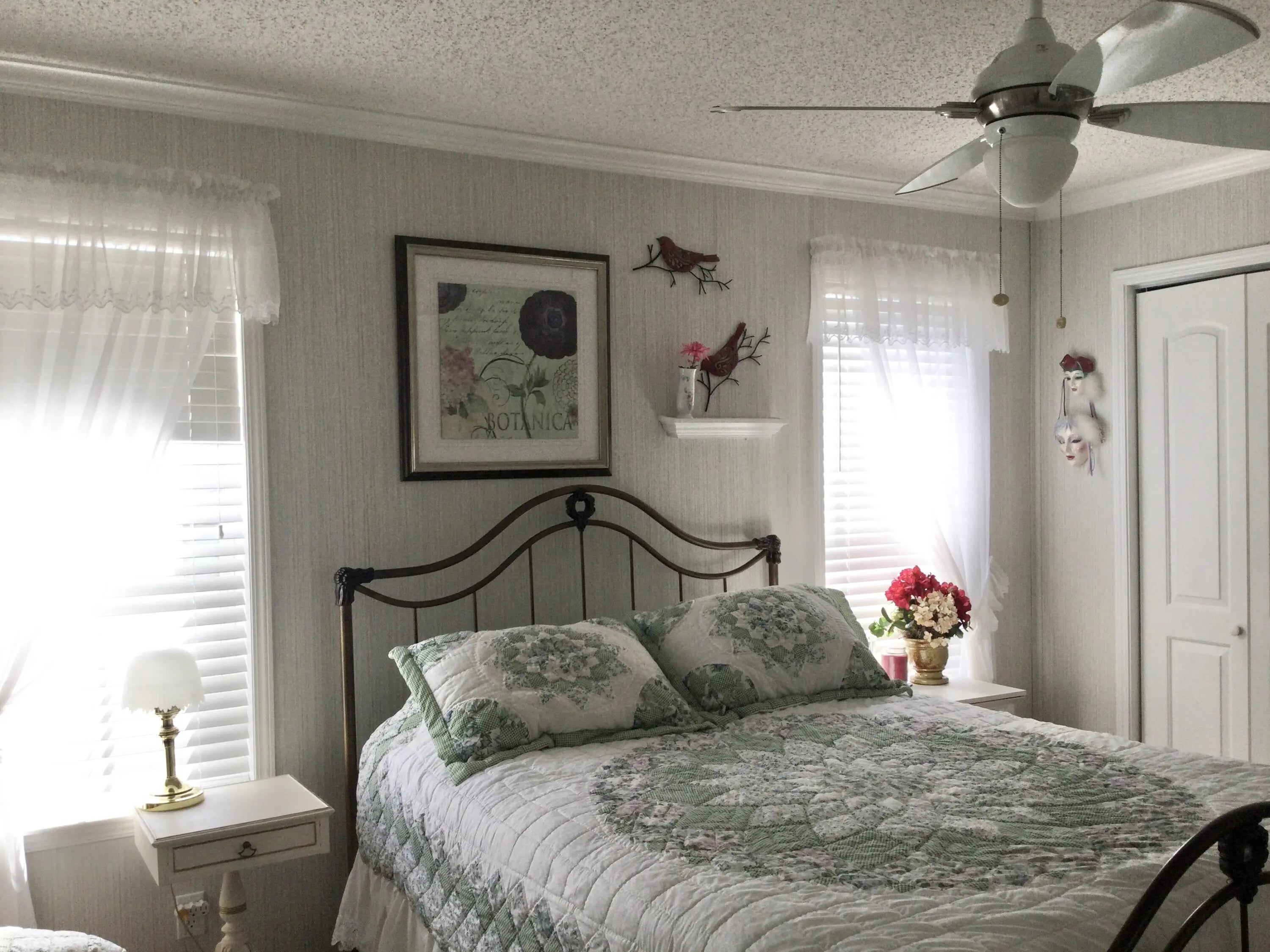 Meticulously maintained home in the much sought after Spanish Lakes Community. This is one of the newer manufactured homes in the community featuring indoor laundry, 2022 roof and 2019 ac unit. Home is nicely situated on the canal. Land lease covers all amenities, taxes, lawn care and trash removal. Amenities include golf, 2 pools, shuffleboard, pickleball, bocce, horseshoes, tennis, billiards, ping pong, community room, party room, game room, library, fitness center and dog park. Spanish Lakes is a 55+ community. Future residents must be approved by Spanish Lakes. Call for application. Mobile home license required to show and sell. Mobile home license # BH/1130558/1. Home is turnkey. Items that do not convey include Queen bed, two brown reclining chairs, rocking chair, stereo cabinet and miscellaneous personal belongs.