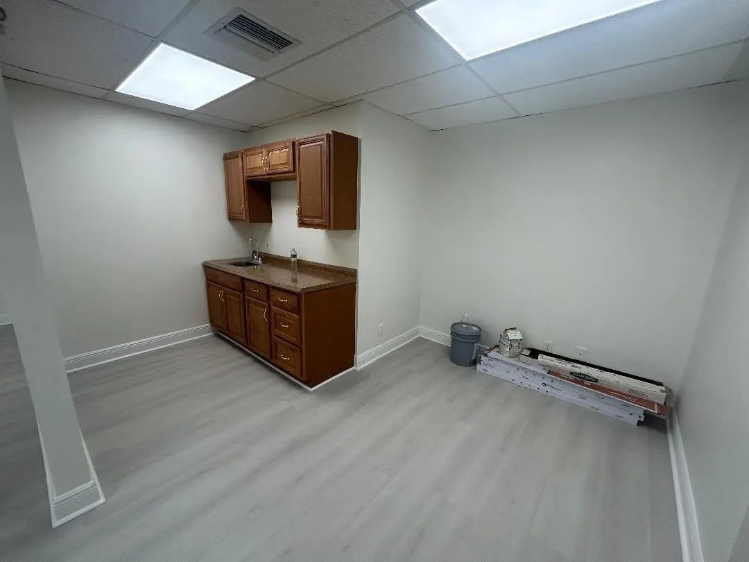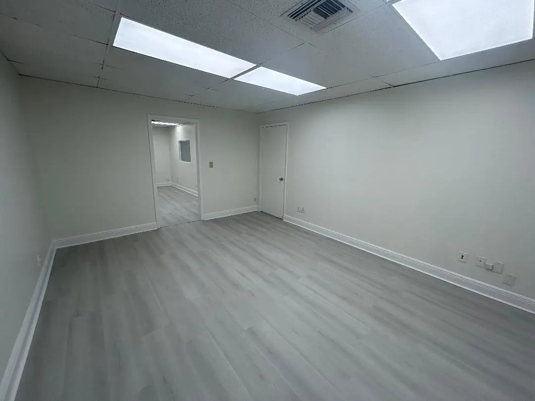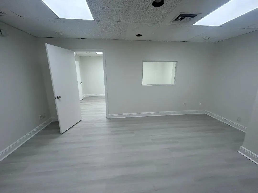 Large newly renovated 5 room office with a kitchen and two entrances available for rent. 1300 sq ft total in an excellent location in Coral Springs. Depending on needs, owners are willing to close off portions of the interior and create a smaller office (price would be adjusted). Electricity, A/C, and access to building's private parking included.