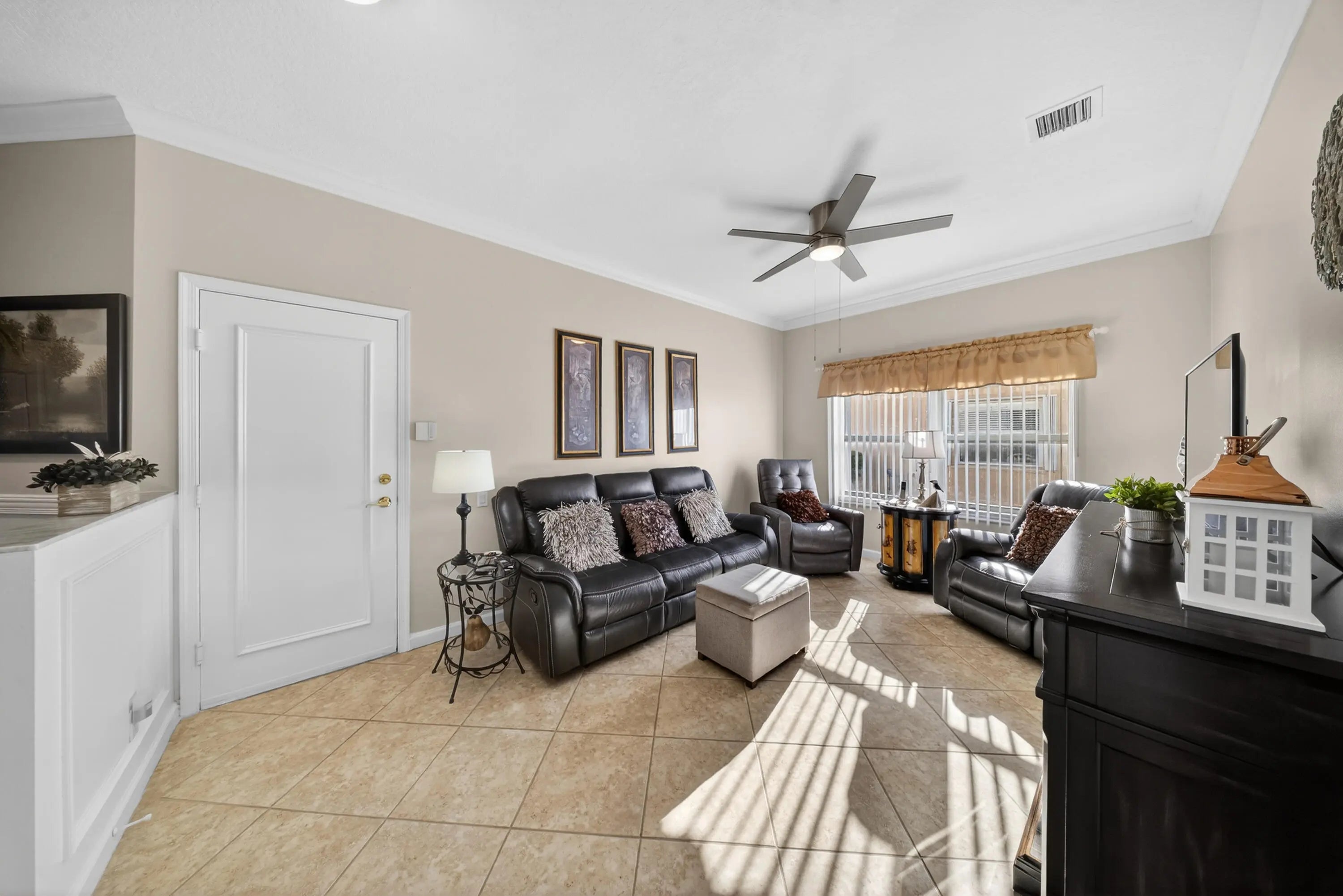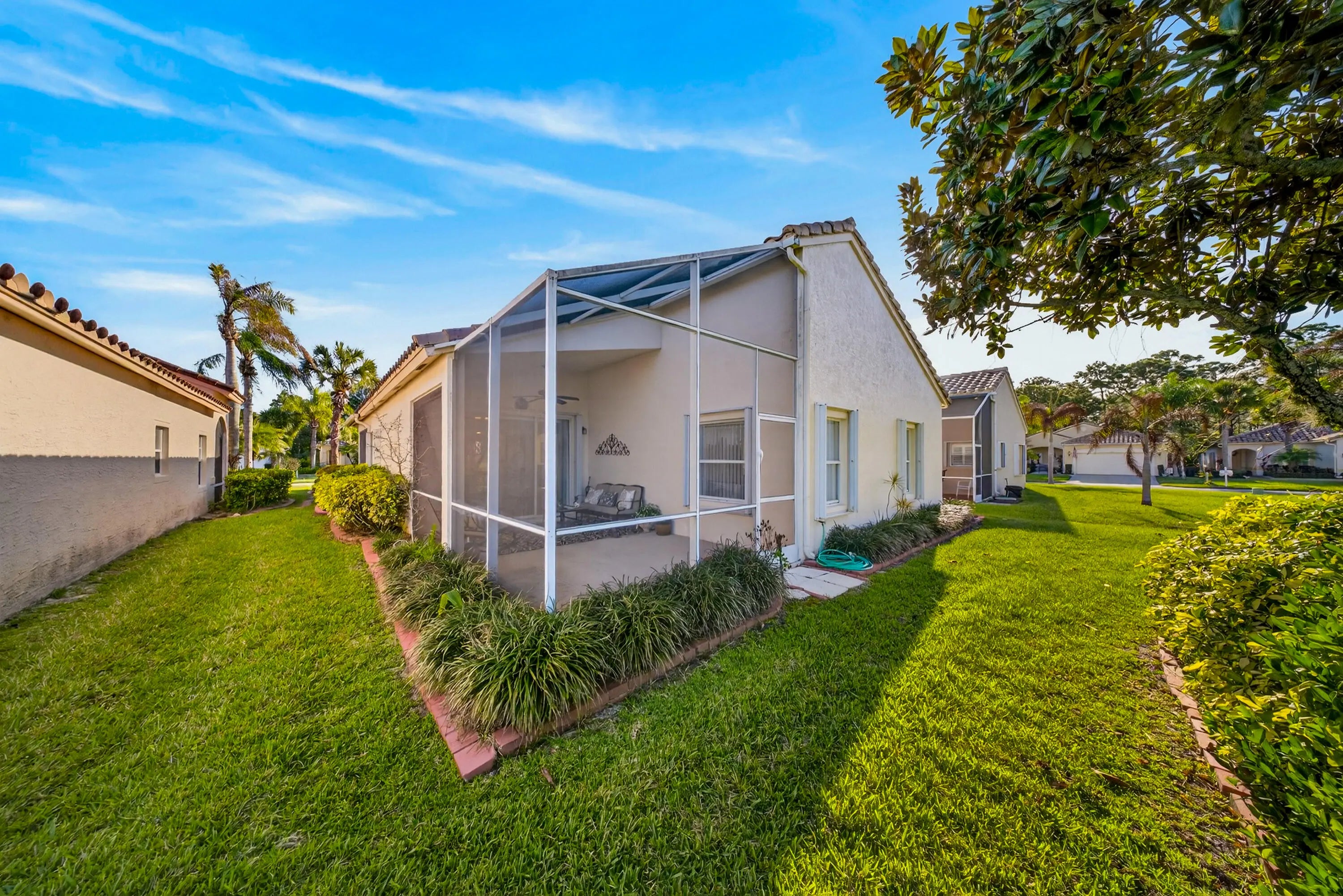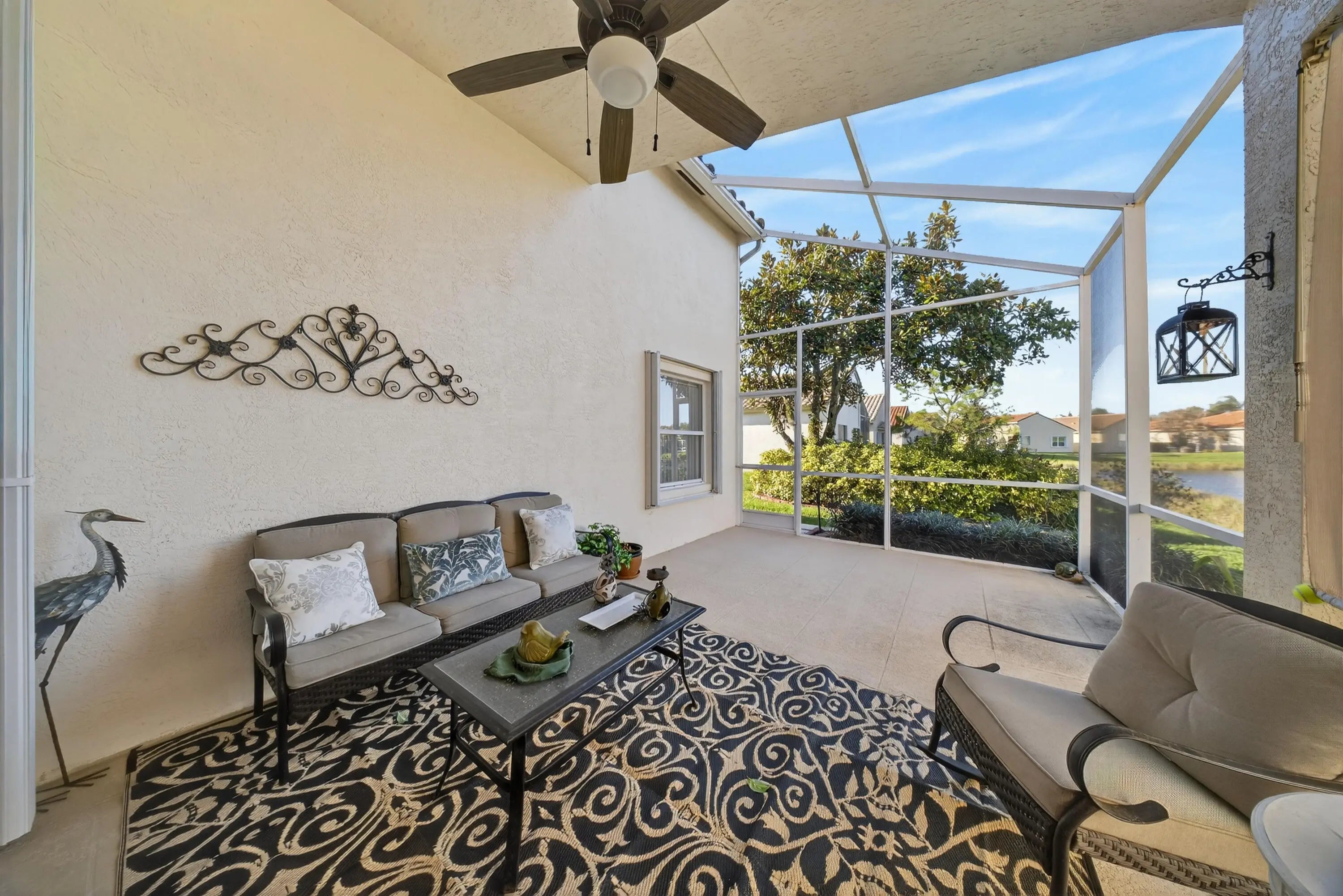 This beautifully maintained home is located in the highly desirable 55+ community of Cascades. This residence shows like a model and offers an inviting floor plan with soaring ceilings and abundant natural light throughout. The spacious living room flows seamlessly into the extended screened-in patio, creating the perfect space for relaxing or entertaining.The large eat-in kitchen features abundant cabinetry, upgraded granite countertops, and a matching backsplash, offering both style and functionality for everyday living. A versatile room off the kitchen, is currently used as a family room but could easily serve as a formal dining room, home office, or den, providing flexible space to suit your lifestyle. Enjoy the resort-style amenities and vibrant lifestyle that Cascades is known for.
