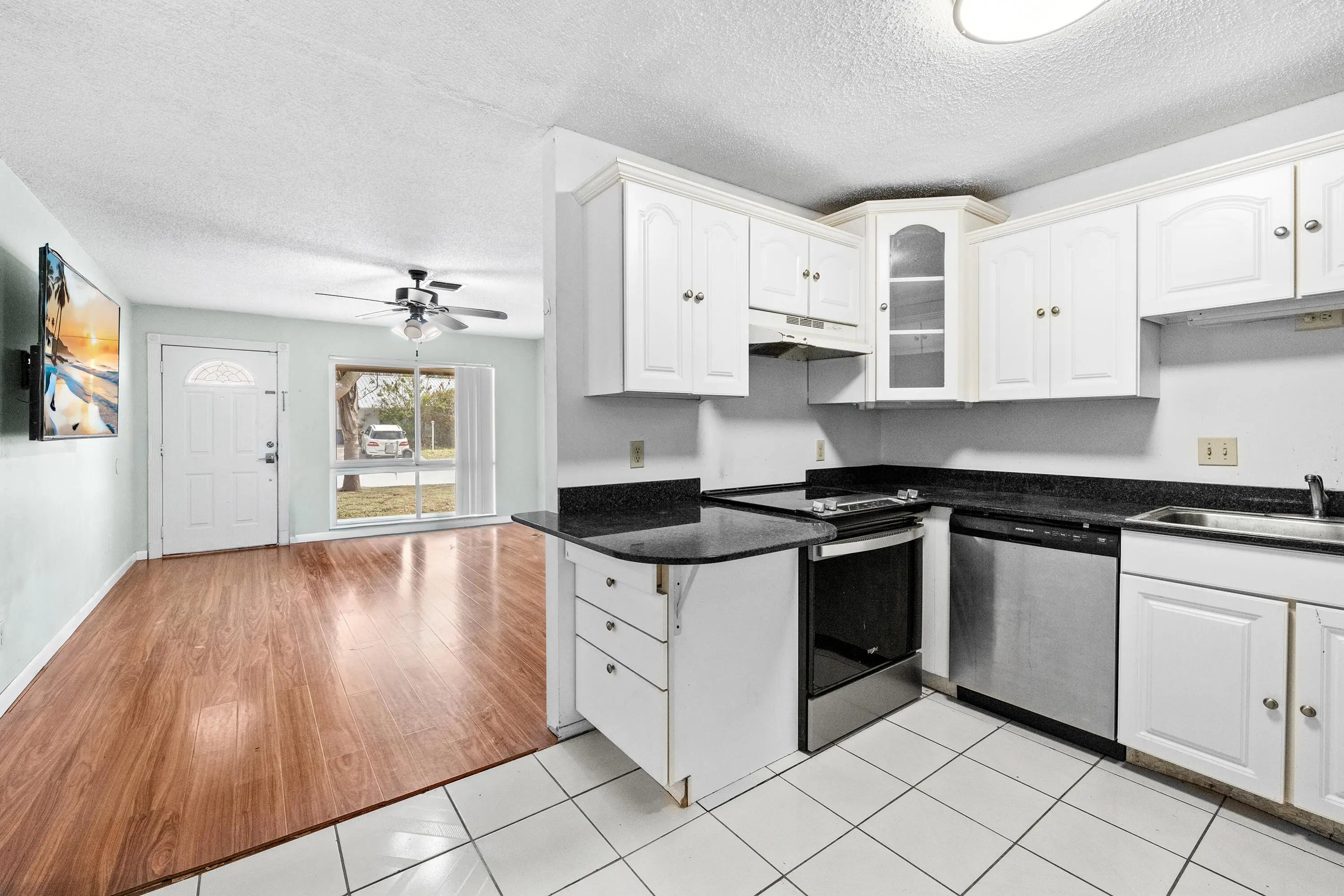 Seller started updating and did not complete due to job relocation. The home needs someone handy to finish this duplex featuring 2 bedrooms and 1.5 bathrooms. Interior highlights include new laminate flooring (2022), new appliances (2025), and a flexible space off the kitchen that can serve as a formal dining room or family room. The home also offers a screened patio and a convenient in-residence laundry room. Major updates include impact windows, a new roof (2022), and a 2022 A/C system. The fully fenced backyard provides ample space for outdoor living, including room for a pool, along with parking for 2+ vehicles and additional space for boats, trailers, or recreational toys. With no HOA fees or restrictions, this property offers excellent flexibility for both investors and primary residents. Conveniently located near shopping, dining, medical facilities, and the St. Lucie River.