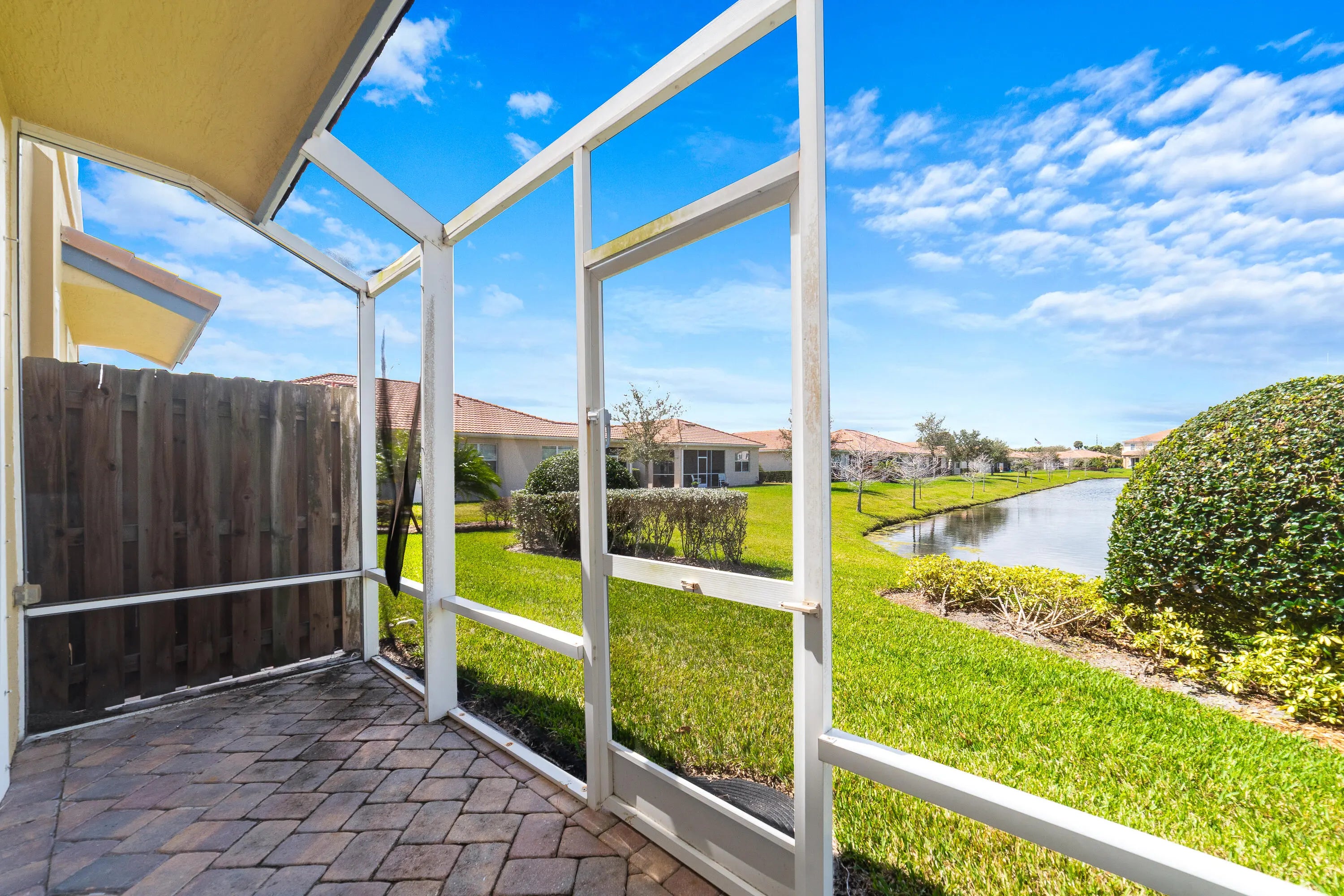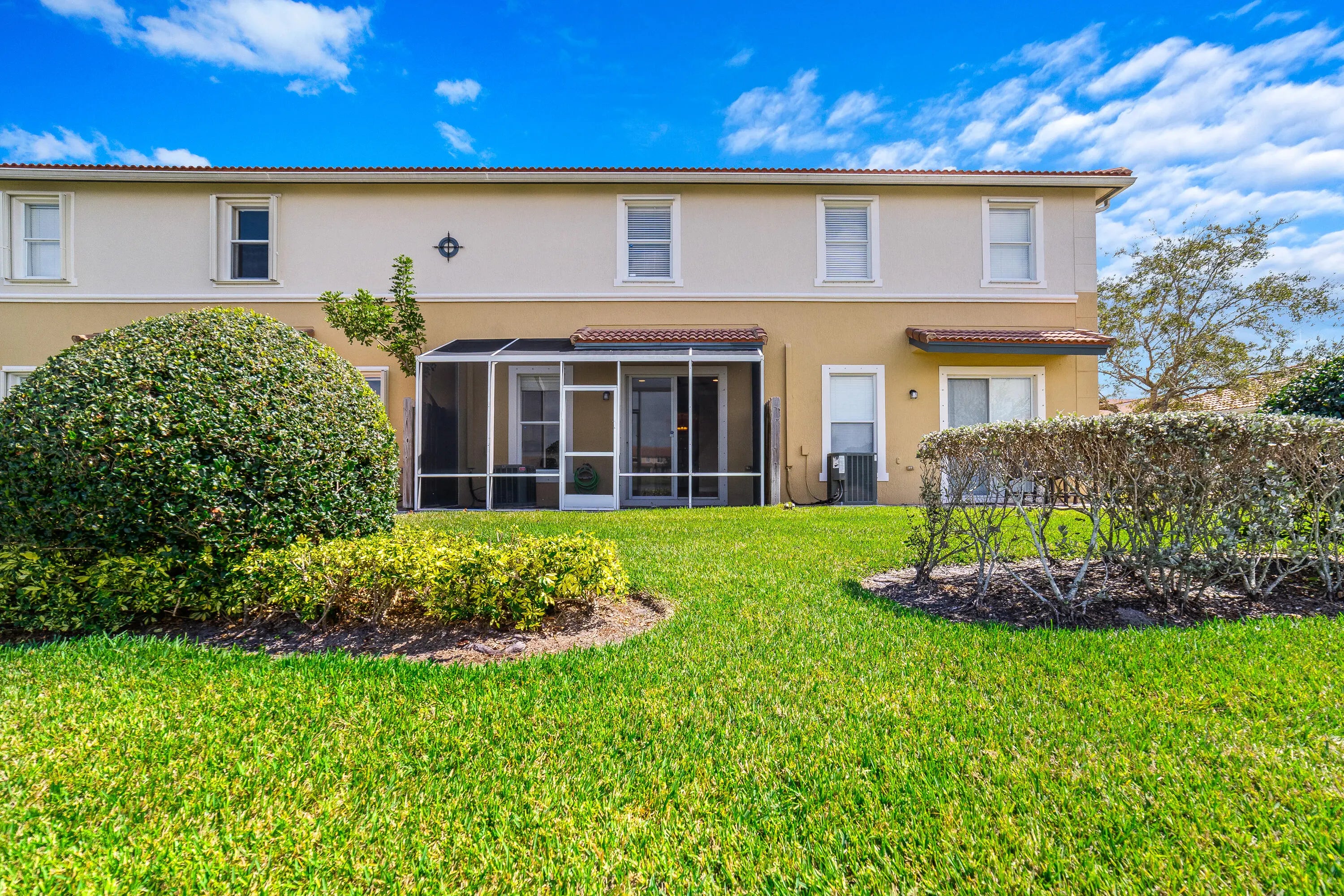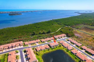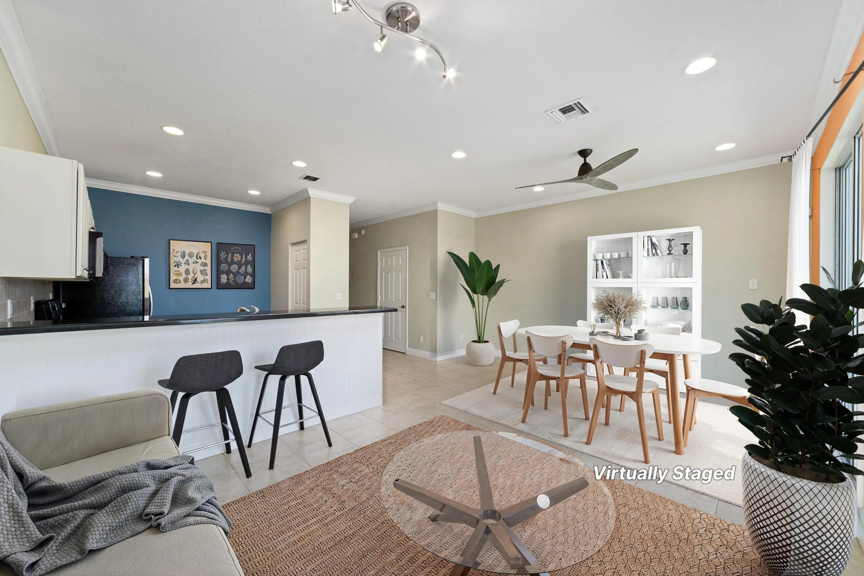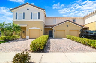Lakefront Townhome Just 5 Minutes from the Beach | Low HOA | Pet Friendly | Investor Ready. Lakefront tranquility meets effortless coastal living in this beautiful two-story townhouse with an attached garage and paver driveway, ideally located just 5 minutes from the beach and 5 minutes from shops and restaurants. Inside you'll find a bright open-concept main level featuring tile flooring and comfortable living and dining spaces that flow seamlessly into the kitchen. The kitchen offers white cabinetry, granite countertops, bar seating, stainless steel appliances, and a pantry, perfect for everyday living or casual entertaining. A convenient half bath completes the first floor. Upstairs, the desirable split-bedroom layout provides privacy for both suites. Each bedroom features laminate flooring, a walk-in closet, and its own private bath. The centrally located laundry area adds everyday convenience. Unwind in the evenings while enjoying tranquil water views from the back of the home, where colorful sunsets over the lake create a relaxing backdrop. Residents enjoy a heated saltwater pool along with a low HOA, pet-friendly community, and investor-ready flexibility. With the beach, dining, and everyday conveniences just minutes away, this home offers the ideal balance of relaxation, lifestyle, and location.