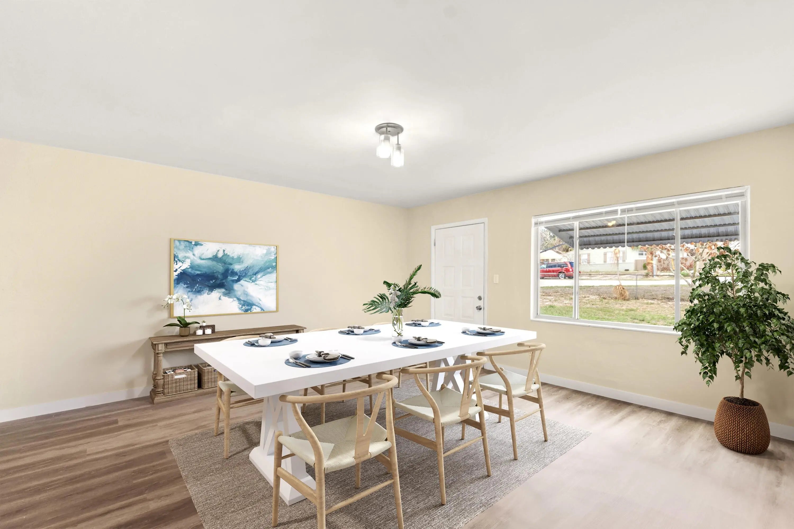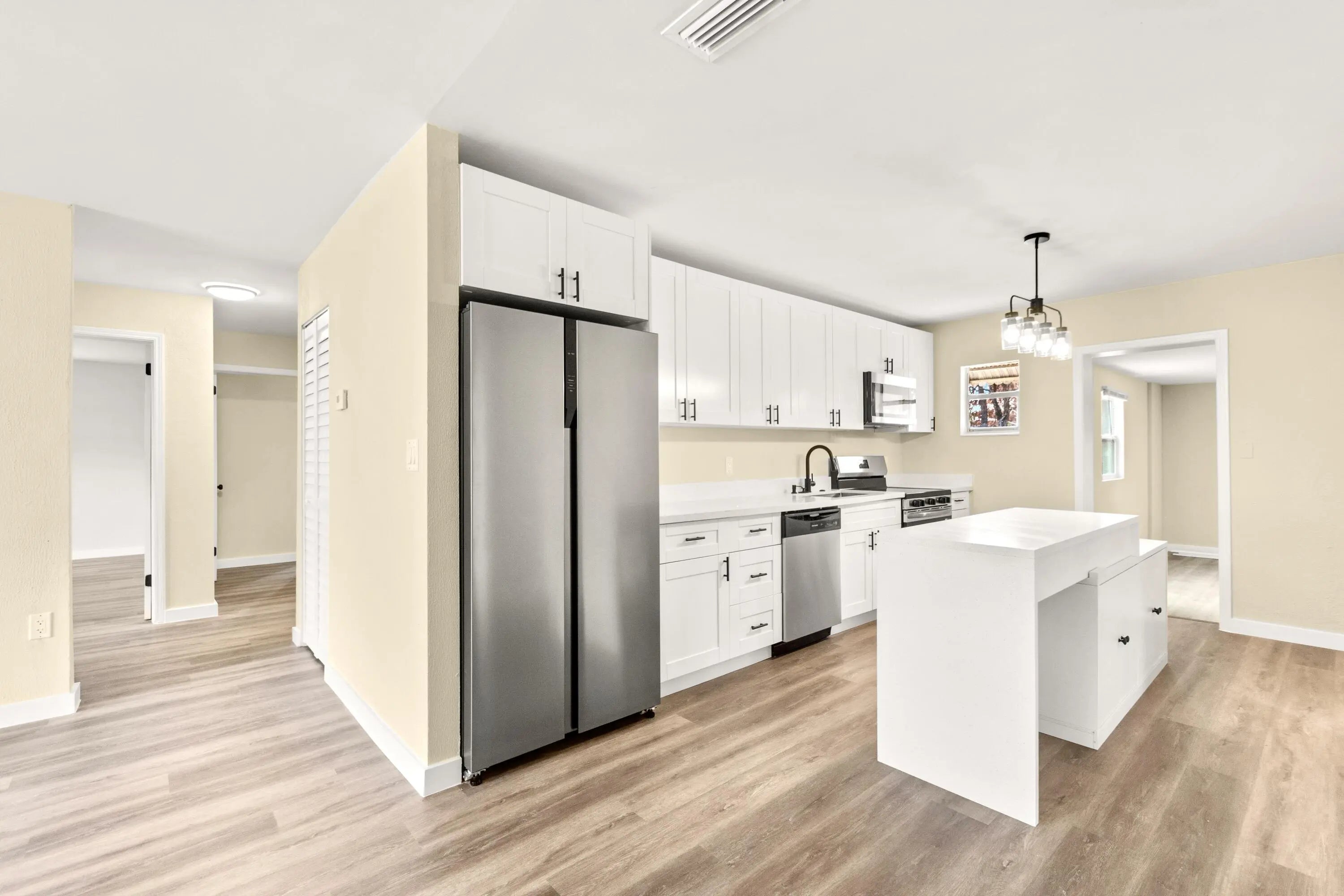 Completely renovated, this 4BD, 2BA corner lot home offers 1,789 sq. ft. of thoughtfully updated living space situated on a spacious .46 acre lot. Recent upgrades include new vinyl flooring throughout, new kitchen cabinetry, quartz countertops, 2025 water heater & a full appliance package. The layout offers comfortable living areas with a functional flow for everyday living. The oversized backyard provides plenty of space for entertaining or future additions plus a utility shed for added storage & equipment. Welcome home!
