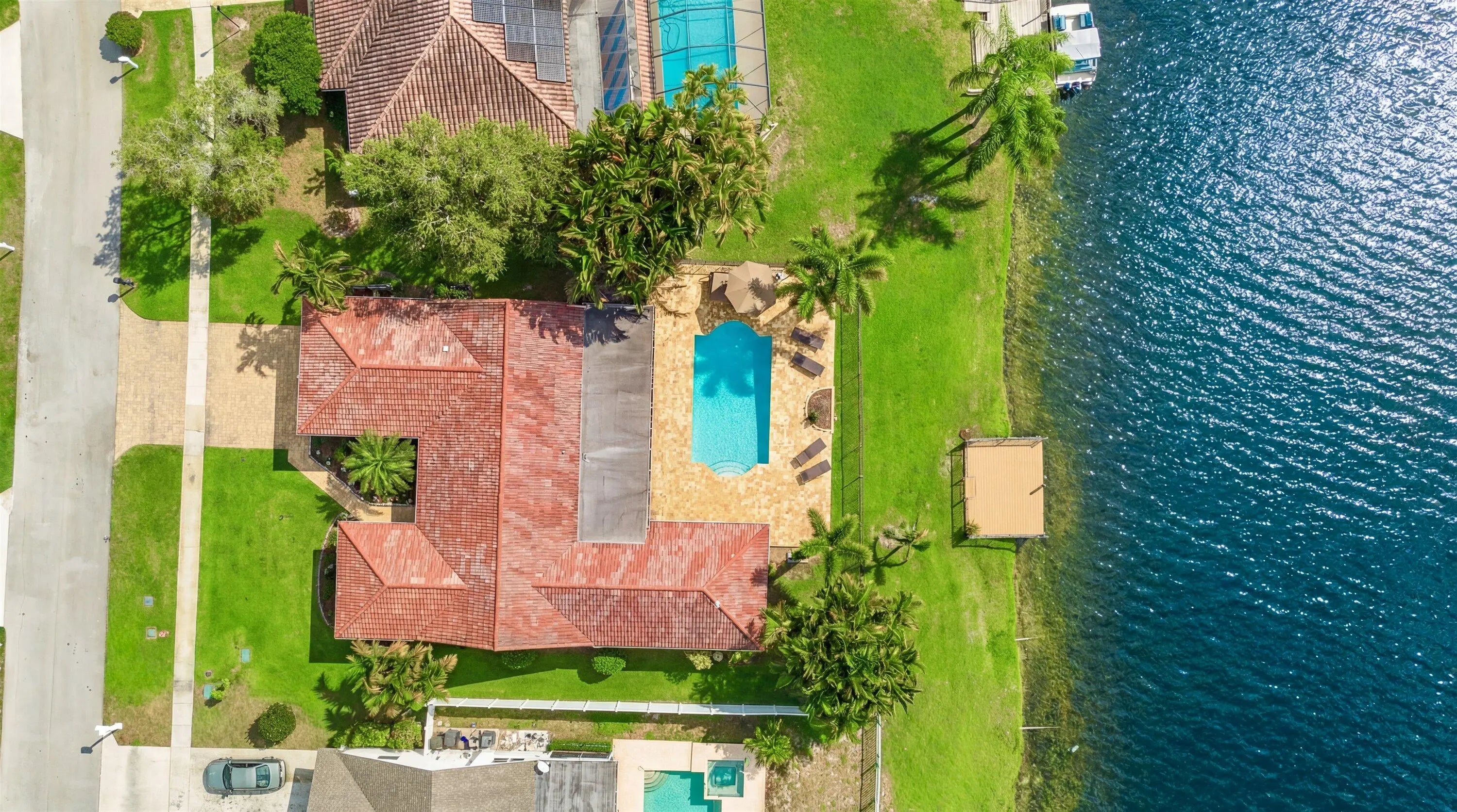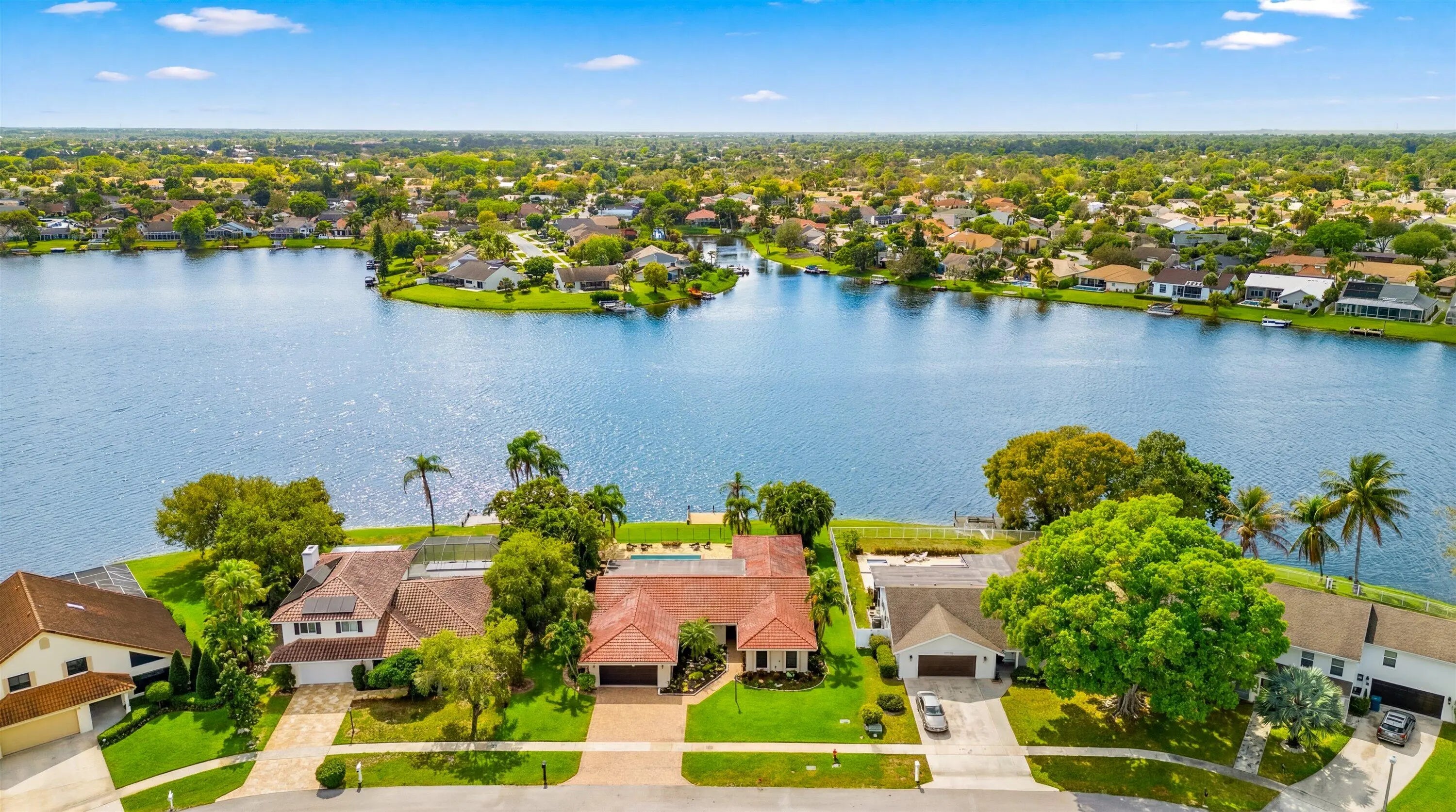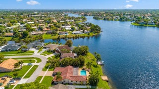 A rare opportunity to own a beautifully updated lakefront residence on Lake Wellington, offering sweeping sunset views from your private dock. This spacious 4-bedroom home features generously sized bedrooms with large closets & a thoughtfully designed layout that maximizes natural light while capturing beautiful pool and lake views throughout the living areas. The home has been updated with all-new appliances, new kitchen cabinetry, and countertops, and new flooring throughout the main living areas. The 2nd bathroom has been fully renovated, and the property is equipped with hurricane-impact windows. Additional interior highlights include 2 inviting living rooms, a large dining room, a beautifully updated laundry room, 2 HVAC systems (2025 & 2015), and 2 water heaters (2025 & 2009). Outdoors, a spacious lakeside patio overlooks the pool & offers wide, unobstructed views of the lake. This expansive setting is perfect for relaxing, hosting guests, and enjoying spectacular sunsets over the water.