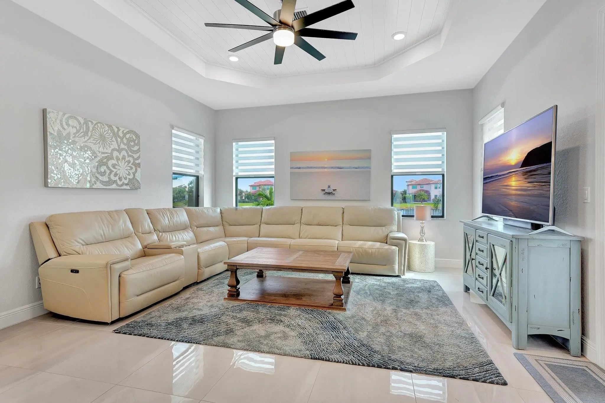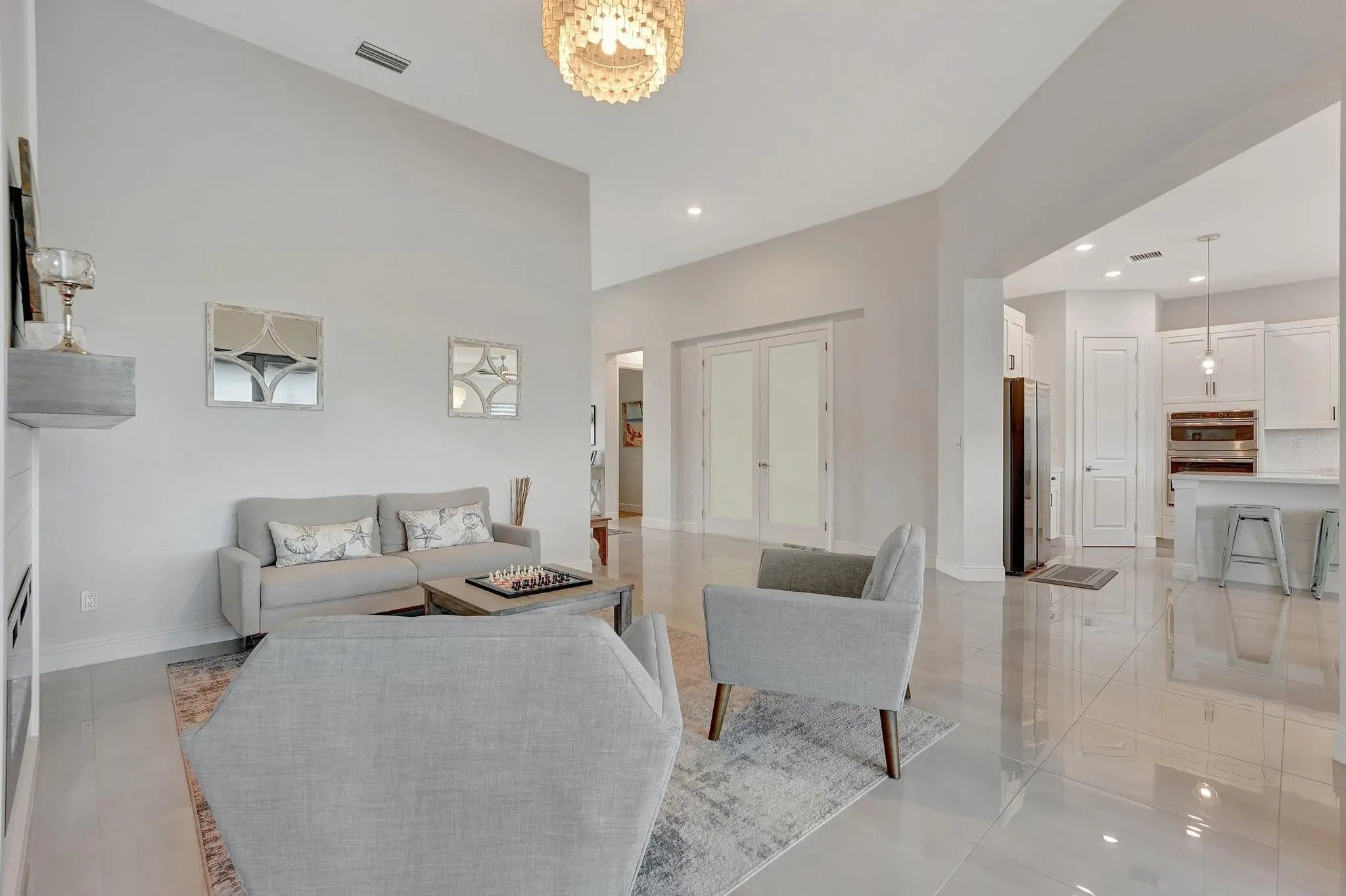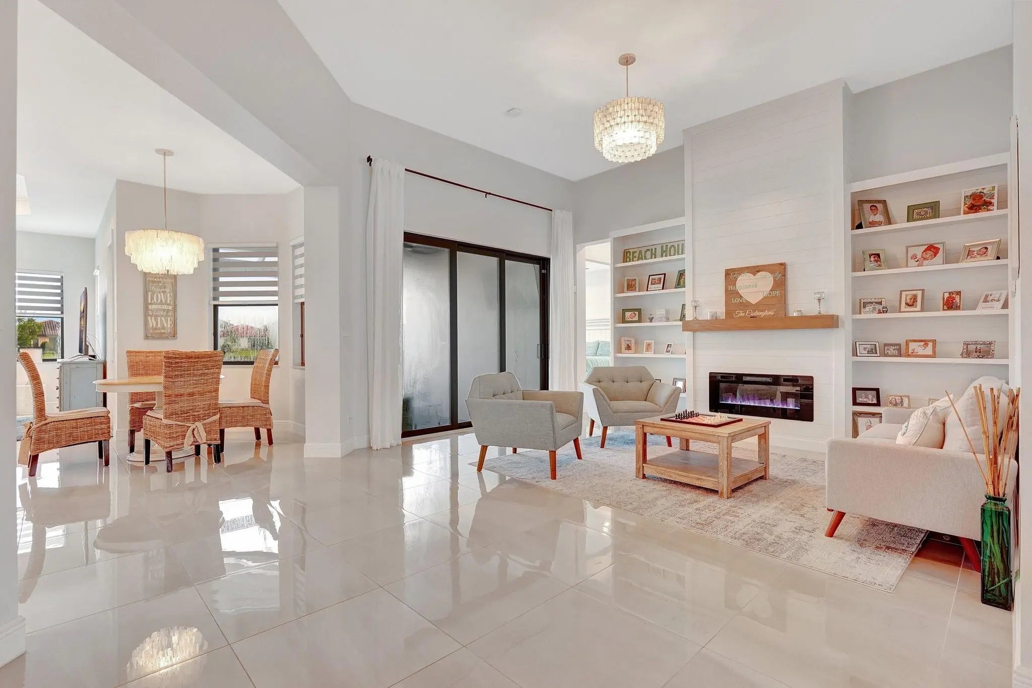 Spectacular 1-story Hibiscus model in Parkland Bay! This waterfront pool home features 4 bedrooms plus an office, and 3 full bathrooms, situated on a family-friendly cul-de-sac with an expansive 11,603 sq. ft. pie-shaped lot. The Hibiscus model masterfully balances spaciousness and comfort, combining elegance with relaxed living. Its open-concept floorplan promotes seamless flow between spaces, allowing natural light to fill the home. Enjoy the large screened-in covered terrace, perfect for experiencing South Florida's outdoor lifestyle, rain or shine. Additional highlights include shiplap coffered ceilings throughout, custom closets, a shiplap electric fireplace, and new luxury vinyl plank flooring in all bedrooms. This home is a perfect blend of
