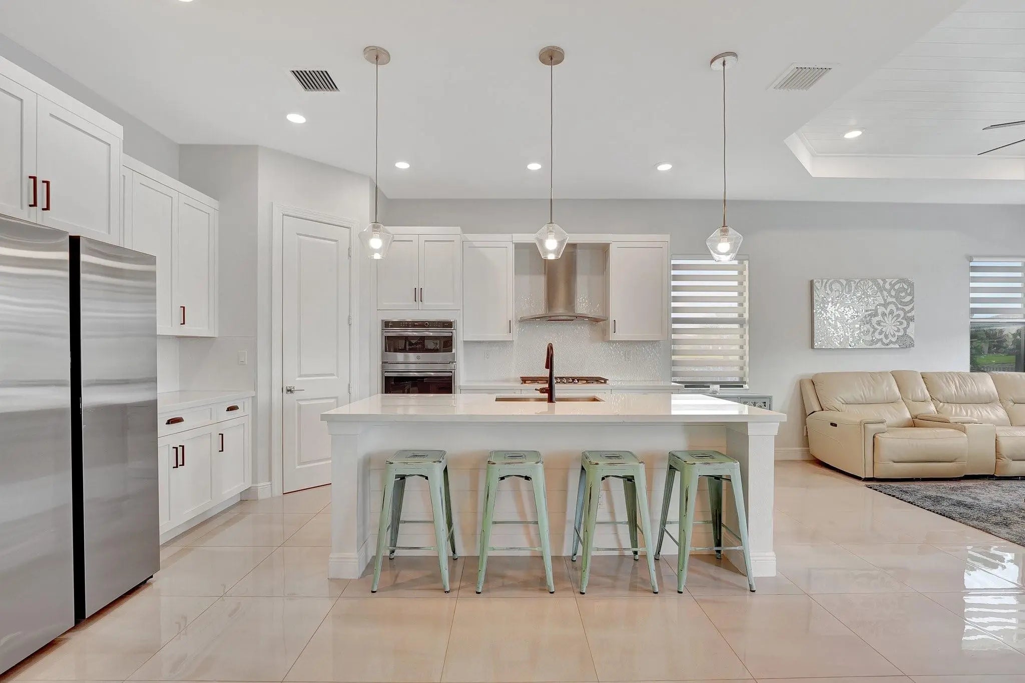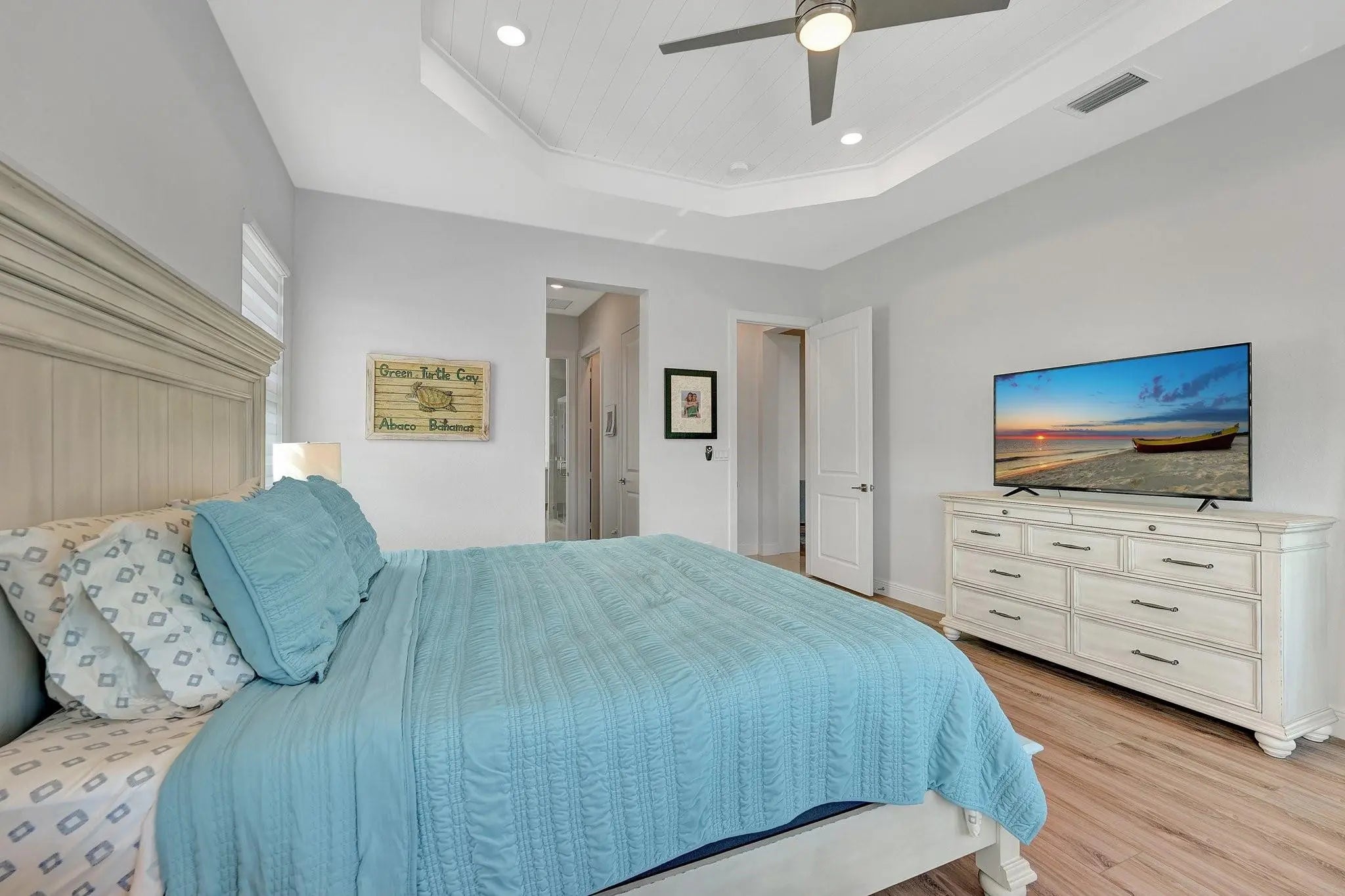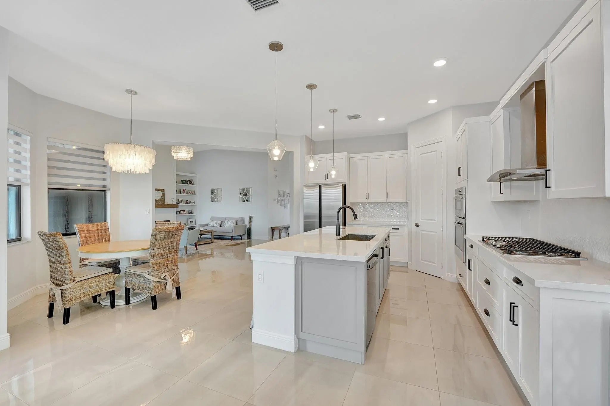 Spectacular 1-story Hibiscus model in Parkland Bay! This waterfront pool home features 4 bedrooms plus an office, and 3 full bathrooms, situated on a family-friendly cul-de-sac with an expansive 11,603 sq. ft. pie-shaped lot. The Hibiscus model masterfully balances spaciousness and comfort, combining elegance with relaxed living. Its open-concept floorplan promotes seamless flow between spaces, allowing natural light to fill the home. Enjoy the large screened-in covered terrace, perfect for experiencing South Florida's outdoor lifestyle, rain or shine. Additional highlights include shiplap coffered ceilings throughout, custom closets, a shiplap electric fireplace, and new luxury vinyl plank flooring in all bedrooms. This home is a perfect blend of