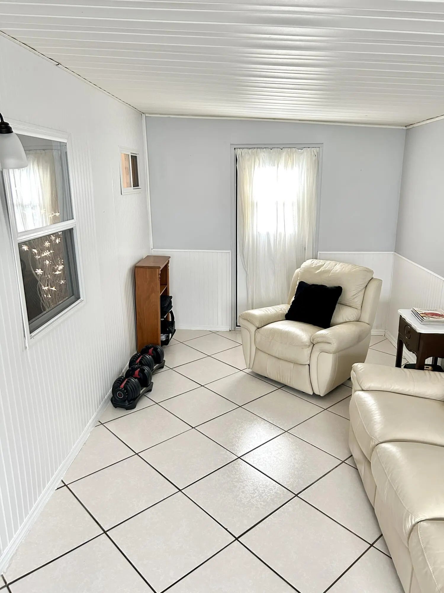 House located in Orangebrook Harbor featuring 2 bedrooms, 1 full bathroom, and 1 partial bathroom that can easily be converted into a full bathroom. The plumbing and electrical connections for a washer and dryer are already installed in the exterior annex. The home offers a spacious interior with plenty of living space. The carport and driveway are finished with ceramic tiles, giving the property an incredible and elegant look. A beautiful and comfortable living space, perfect for enjoying the relaxed lifestyle of the community. Information and measurements are approximate and deemed reliable but subject to errors, omissions or changes without notice. Seller & listing brokerage are not liable if they are not accurate. Mobile Home Dealer & Broker: N239-207-62-800-0