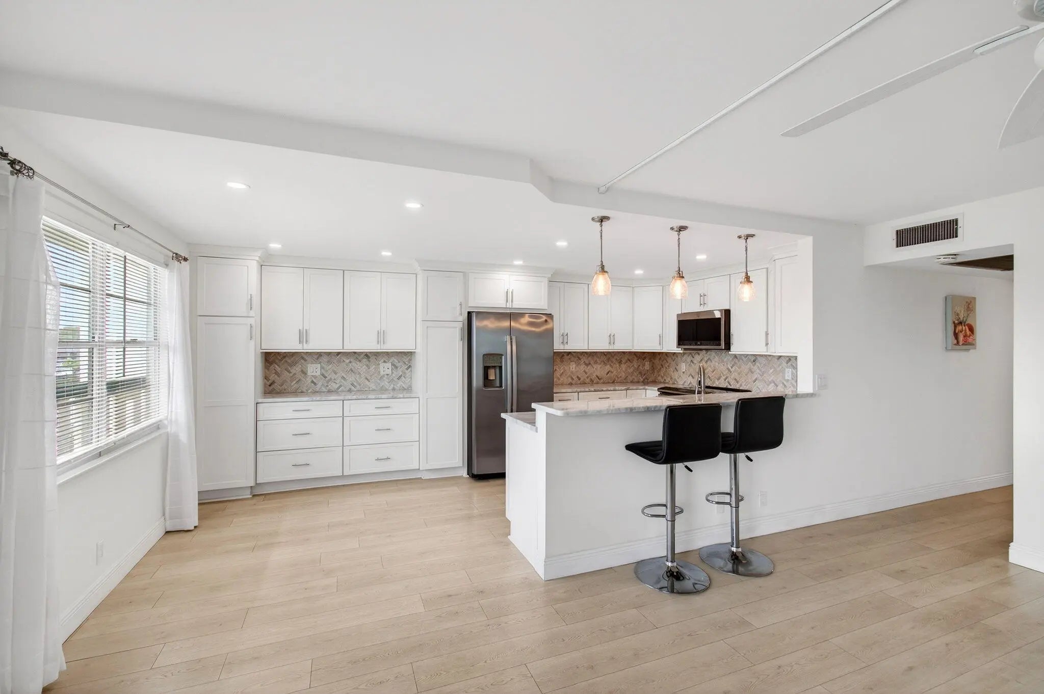 Completely renovated 2-bedroom, 2-bath residence w/ breathtaking water views in a desirable high-rise building. This move-in-ready home features a bright, open floor plan designed for comfortable living & entertaining. The updated kitchen boasts stainless steel appliances, double ovens, custom cabinetry with pull-out shelving, & extended built-in cabinetry in the dining area for additional storage & style. Relax & enjoy one of the most beautiful water views in the community from your fully enclosed balcony. Located in the highly desirable 55+ community of Century Village Deerfield Beach, residents enjoy resort-style amenities including pools, fitness facilities, social activities, & an on-site restaurant. Experience easy, active South Florida living! Professional photos coming soon.