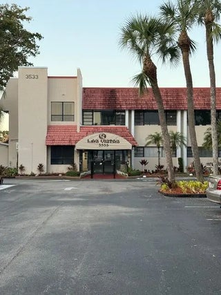 Stunning FIRST FLOOR unit boosting a large 2beds/ 2-bath corner unit located in the desirable LAS VISTAS 24 hours gated community. Huge walk in closets in both bedrooms. Master has two. This spacious and well maintained home features tile flooring throughout, an updated bathrooms, and a newer washer and dryer for added convenience. Enjoy peaceful water views from the screened-in patio, perfect for relaxing and enjoying your morning coffee or evening wine. Conveniently located just steps to the pool, with the corner location offering extra privacy and natural light. Community amenities include 5 pools, shuffleboard courts, clubhouse, library, fitness center, and recreation room. Ideally located near shopping, dining, house of worship, and all major highways for easy access.