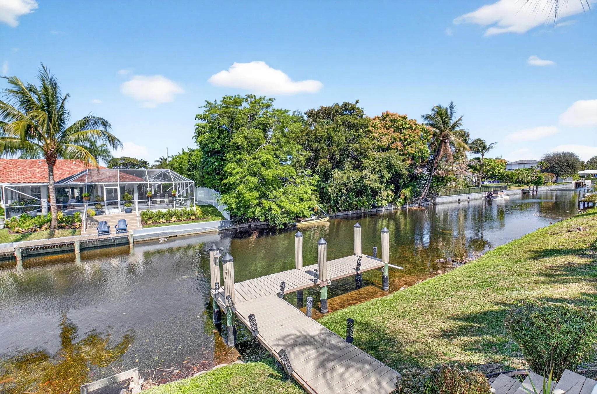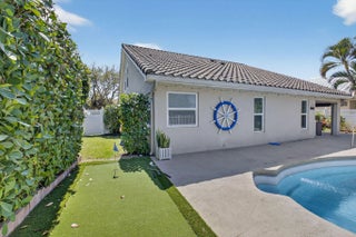 Welcome to Delray Lakes, an exclusive community with tree-lined streets leading you to this exceptional residence. This stunning 4-bedroom, 3-bathroom home boasts a spacious open floor plan, highlighted by vaulted ceilings and abundant natural light throughout. The main level offers three bedrooms, including the spacious master, while the second floor is dedicated to an additional private master suite. Step outside to your own personal oasis, complete with a covered bar area, inground pool, putting green, and private dock. The canal provides direct access to Lake Ida, offering the perfect setting for jet skiing, water skiing, leisurely cruises, or fishing. This home is a rare find in East Delray, featuring full impact glass and meticulous maintenance. It truly has it all! More.
