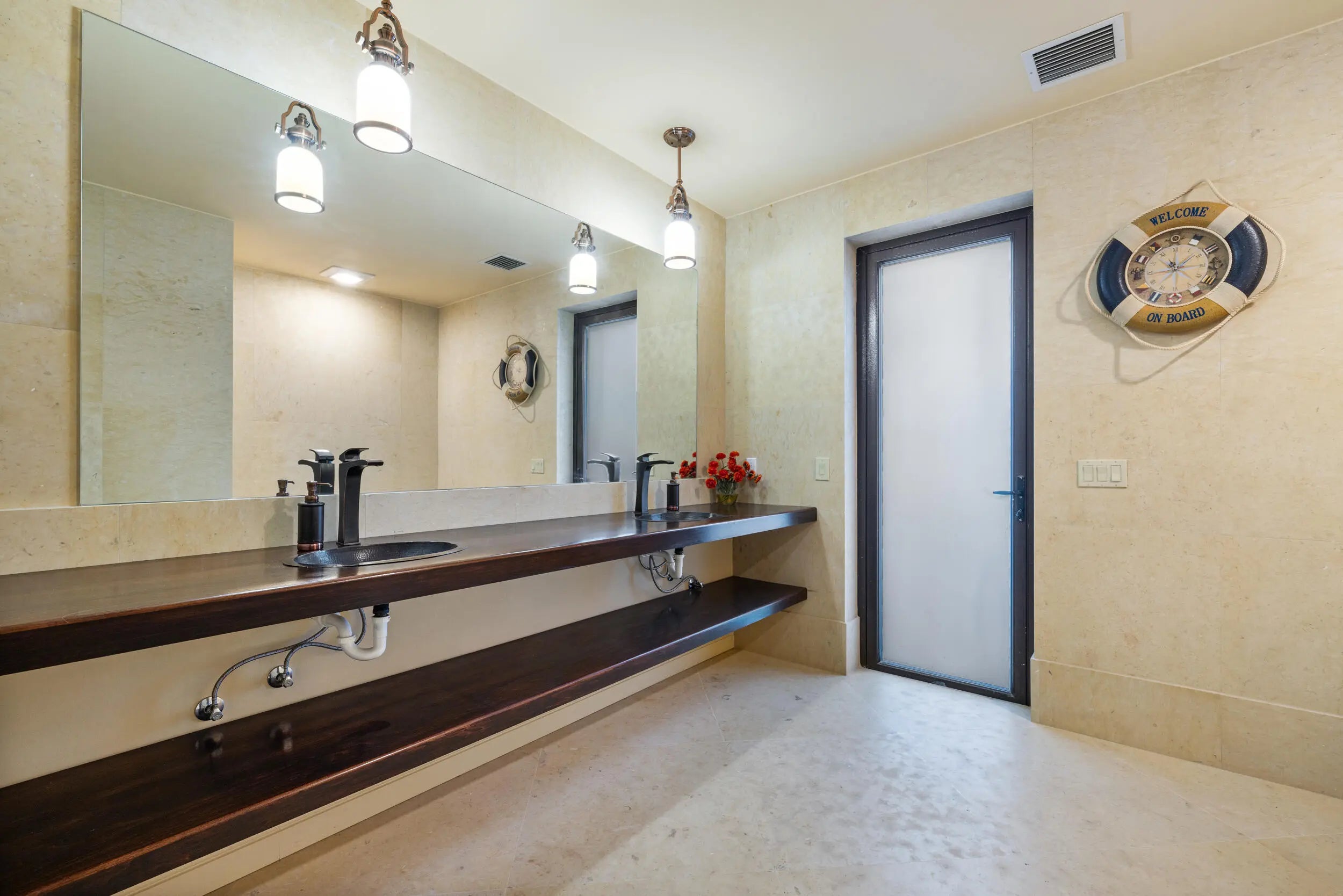 A rare opportunity on prestigious Hillsboro Mile, an extraordinary ocean-to-Intracoastal estate offering 125 feet of direct ocean frontage and 125 feet of deepwater Intracoastal frontage with private dock. Set on an expansive 57,349 sq ft property, this unique compound stretches from the Atlantic Ocean to the Intracoastal Waterway, delivering the ultimate South Florida waterfront lifestyle. The main residence offers 12,790 sq ft of living space (14,935 total) with 6 bedrooms, 7 full baths, 2 half baths, and a 4-car garage. Designed for entertaining and multigenerational living, the home features dramatic vaulted ceilings, exposed beams, and warm architectural details including rare Dade County pine and custom solid wood doors, creating a timeless mid-century modern aesthetic. Walls of glass frame tropical gardens and ocean views, while expansive living areas open seamlessly to outdoor spaces. Amenities include a saltwater pool, expansive gym, art studio, putting green/driving range, home theater, bunk room with 10 beds, and a rooftop deck ideal for sunset gatherings overlooking the Ocean & Intracoastal. For boating enthusiasts, the deepwater Intracoastal dock currently accommodates a 40-50 ft vessel and can be extended for a yacht up to approximately 100 ft, with no fixed bridges and quick access to both Hillsboro and Boca inlets. The Intracoastal side of the property features an additional 13,817 sq ft of lawn, offering exceptional flexibility for a guest house, tennis court, additional garages, or a private waterfront retreat, creating a true family compound without impacting the main residence. Located in the private seaside enclave of Hillsboro Beach, a quiet barrier-island town with its own police department and no public beach access, this estate offers exceptional privacy, security, and direct access to both the Atlantic Ocean and the Intracoastal Waterway. A legacy property combining rare land, boating access, and an iconic location along one of South Florida's most exclusive stretches of coastline.