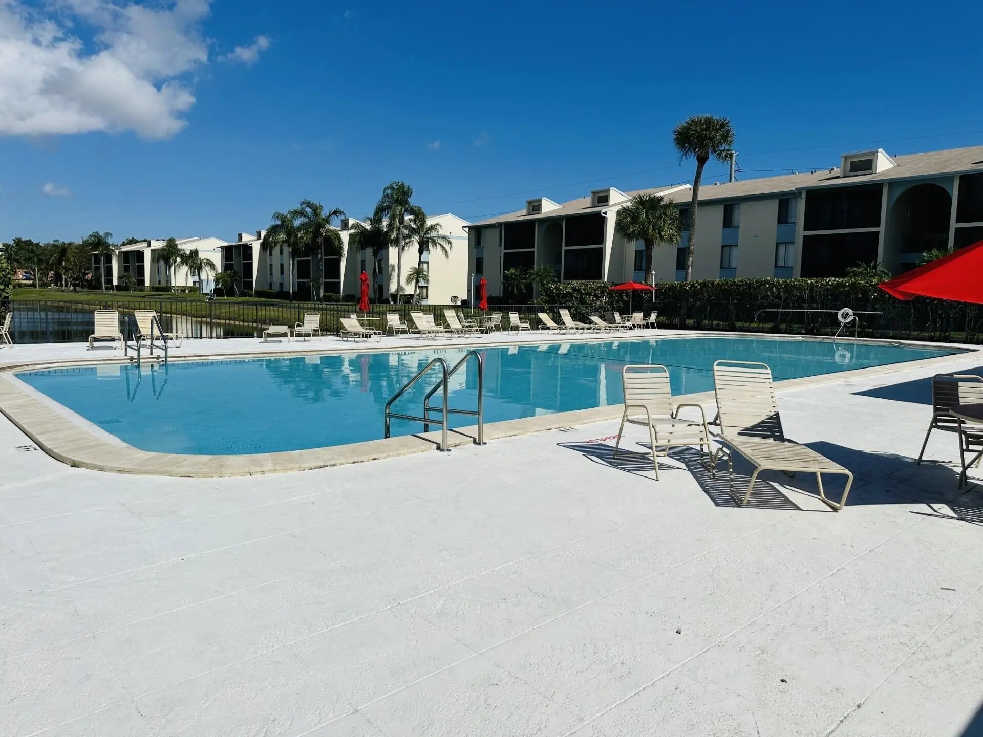 Only the first month and security deposit are required to move in. Excellent location: 2-bedroom, 2-bath condo in a gated community. The whole unit has been freshly painted, New A/C unit, and includes New washer & Dryer. Sit out on the quiet screened patio and enjoy the gorgeous lake view. Great location, minutes from Palm Beach, Outlet Mall, Ball Park, restaurants, and more. WATER and CABLE are included.