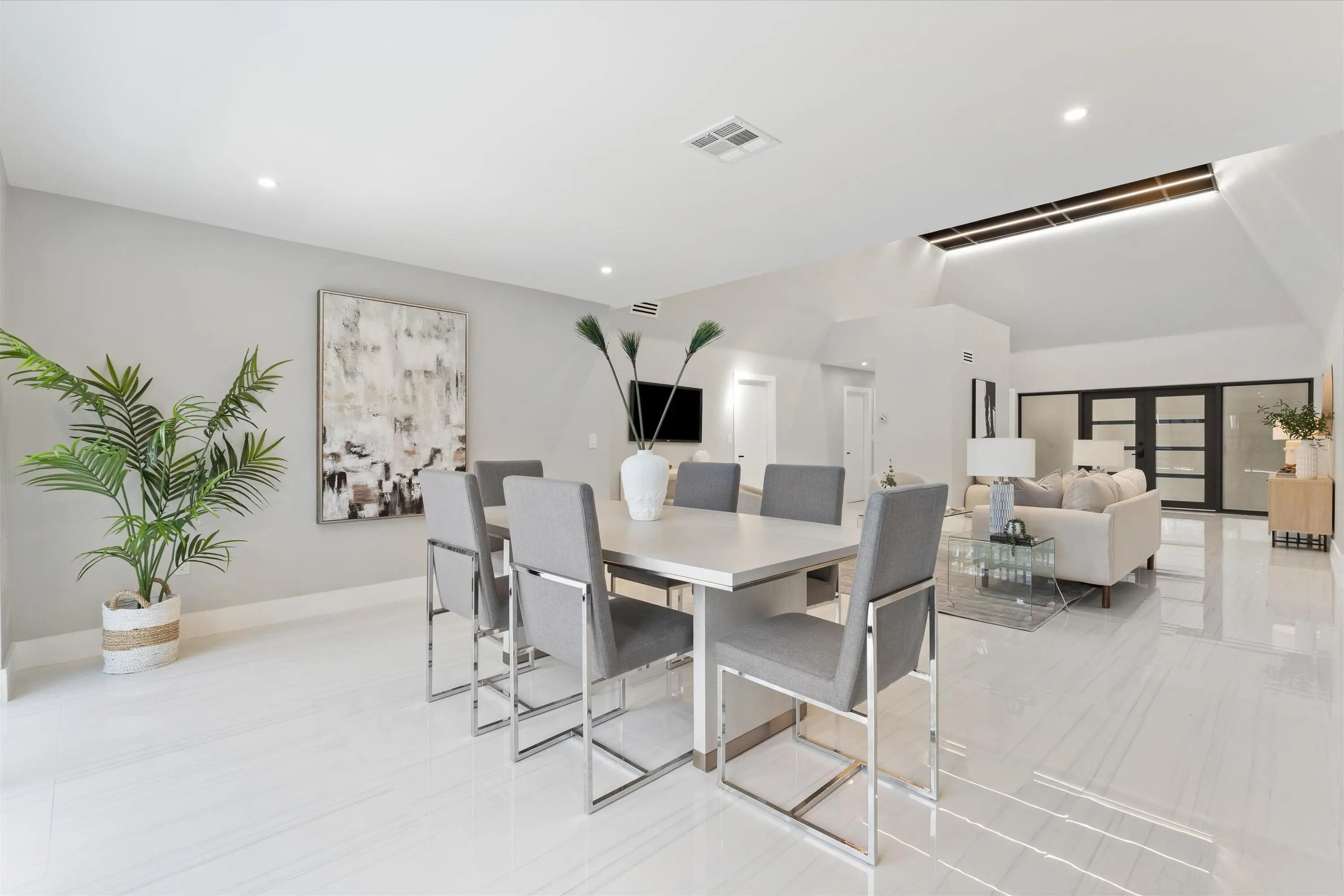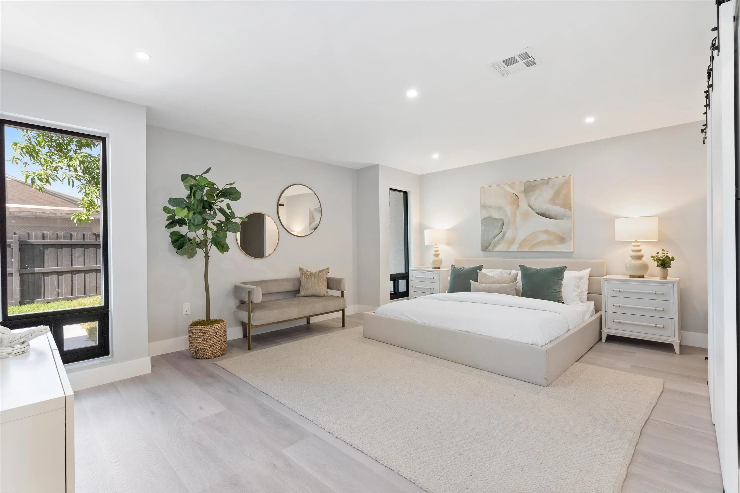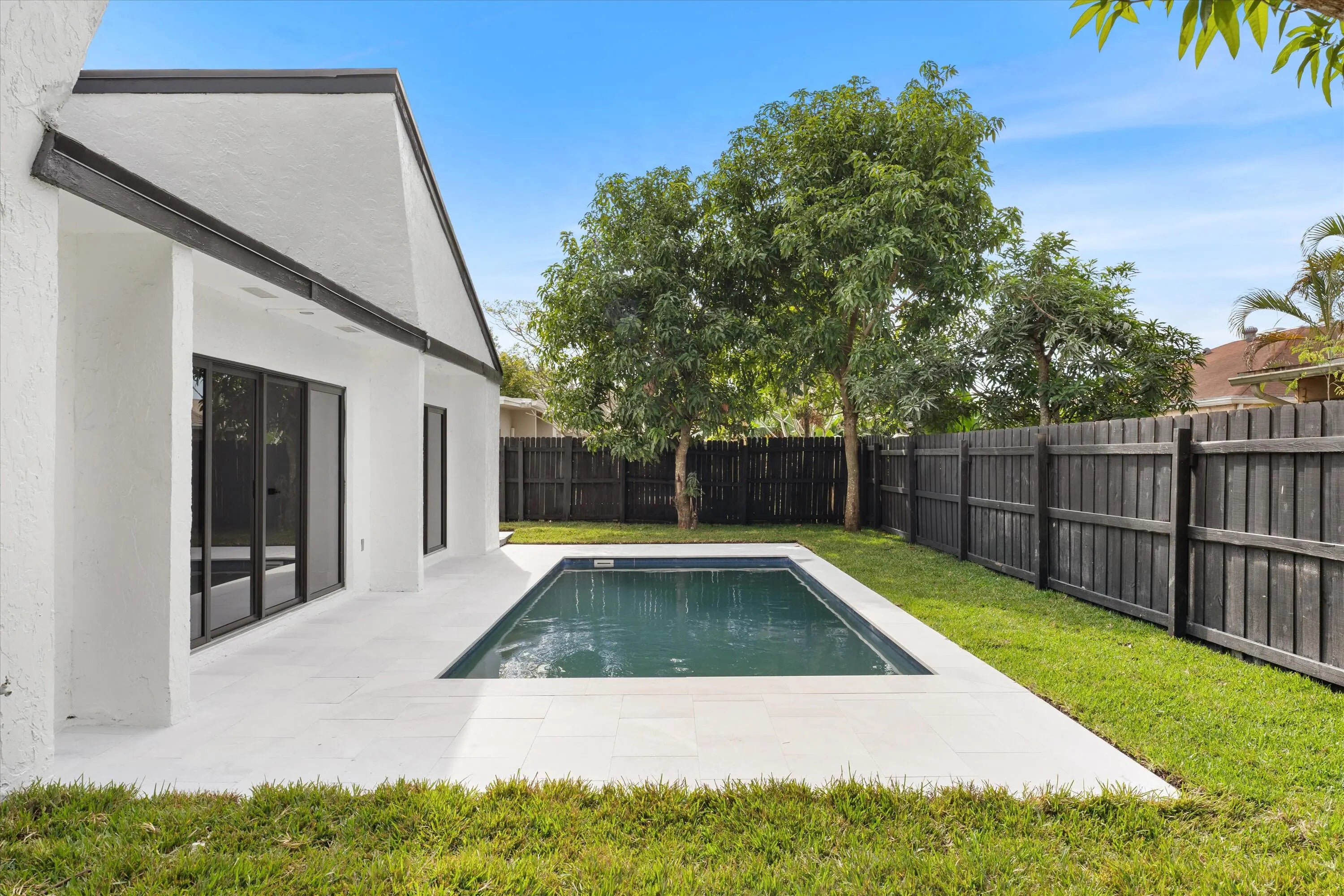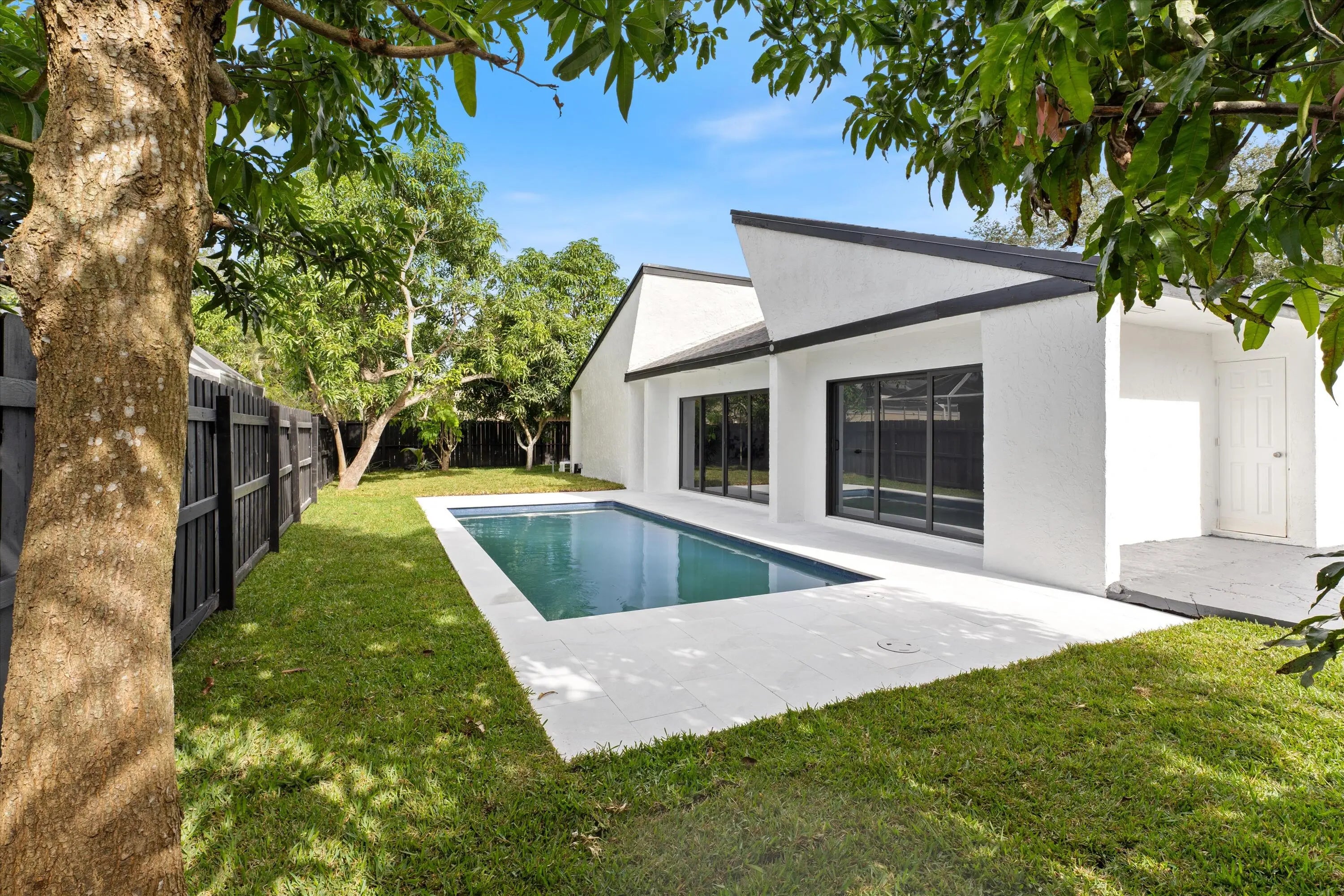 Indulge in luxury with this unique 5-bed, 3-bath home featuring high ceilings and modern updates. Bask in sunlit rooms, a stylish home office, and the convenience of single-floor living. The contemporary kitchen, porcelain-floored, leads to a spacious master bedroom and new bathrooms. Outside, a private oasis awaits with a new pool, expansive deck, and a lush backyard with fruit trees. Custom-renovated, this gem offers new construction allure at half the cost, free from HOA constraints. Enjoy impact windows, ample closets, and top-notch school district living. Centrally located near parks, shopping, and places of worship, it offers easy access to highways. Seize the chance to own a uniquely renovated home in an excellent school district. Your dream home awaits