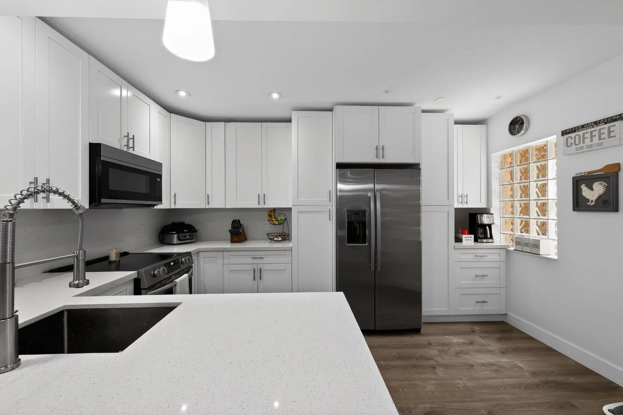Modern Elegance in Optima Village at Fountain Spring Welcome to 10790 NW 14th St, Unit 184, a stunningly reimagined 3-bedroom, 2-bathroom residence in the heart of Plantation. Located in the highly desirable Optima Village within the Fountain Spring community, this 1,120-square-foot unit combines sophisticated modern updates with the comforts of a resort-style neighborhood. A Chef's Dream Kitchen The heart of this home is a beautifully updated open-concept kitchen, meticulously designed for both style and storage. Features include: Custom Cabinetry: Extended pantries and extra cabinet space ensure you'll never run out of room. Premium Finishes: Sleek custom countertops complemented by a designer faucet with a pull-away sprayer. Modern Lighting: High-hat recessed lighting and stylish pendant fixtures over the expansive bar top. High-End Appliances: Full stainless steel appliance suite ready for your culinary creations. Sophisticated Living Spaces The kitchen flows seamlessly into an open living area, with a dedicated dining nook situated perfectly for entertaining. Seamless Flooring: Beautiful wood-look flooring runs throughout the entire unit for a cohesive, modern feel. Ambient Lighting: High-hat lighting throughout the main living areas creates a bright and inviting atmosphere. Custom Window Treatments: Equipped with high-quality shades and blinds throughout for the perfect balance of natural light and privacy. Serene Master Suite The oversized master retreat is a showcase of custom craftsmanship, featuring: Dual Vanity: "His and her" sinks with an abundance of drawer space and custom cabinetry. Spa-Like Bath: A large stand-up shower featuring a solid glass partition and premium fixtures. Generous Storage: Ample closet space, mirrored by the equally well-appointed guest bedrooms. Private Tiled Patio Step outside to your fully tiled, covered back patio—a perfect spot for morning coffee or evening relaxation. This outdoor space includes: Enhanced Privacy: Sliding Levelor doors and custom pull-down blinds. Climate Control: A custom ceiling fan with integrated lighting to keep the Florida breeze moving. Community & Convenience Living in Fountain Spring means enjoying a lifestyle of leisure. The community boasts: A sparkling resort-style pool, serene lake views, and lush park settings. In-Unit Laundry: Full-sized washer and dryer located inside for maximum convenience. Prime Location: Minutes from top-tier shopping, dining, and easy highway access. Priced to sell and move-in ready—this unit is a must-see!