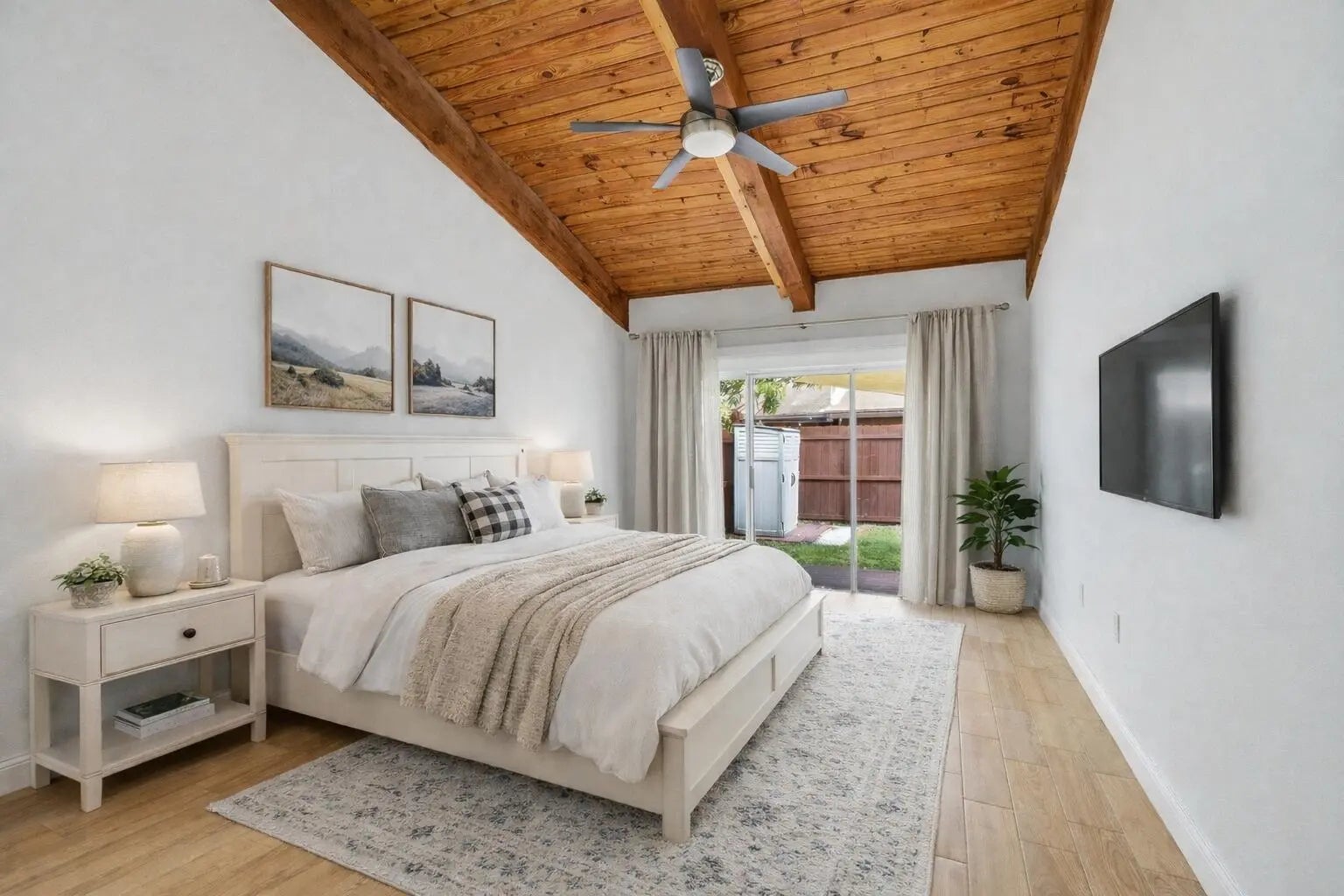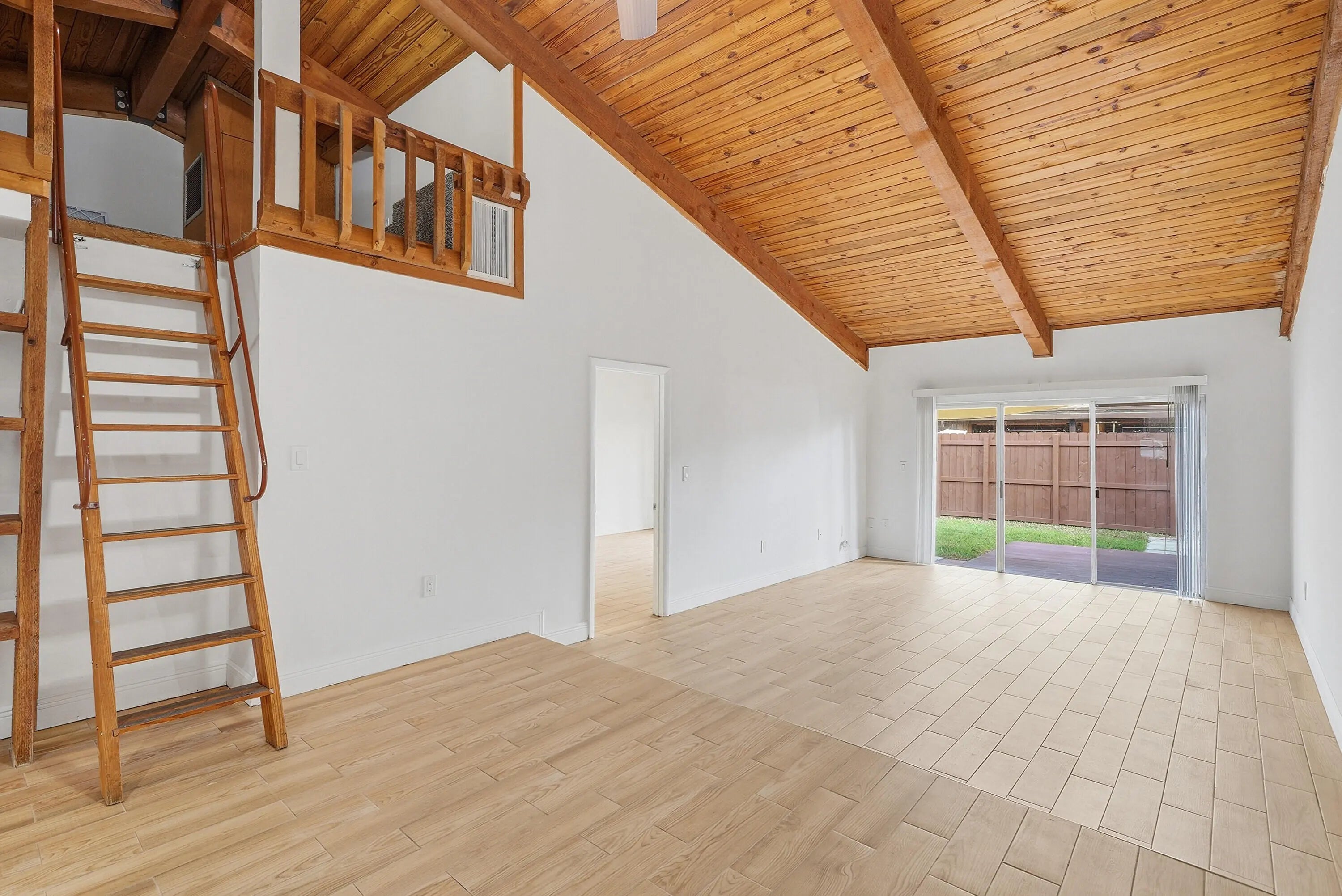 Beautifully renovated 2-bedroom, 2-bathroom single-story townhome/villa with LOFT located in Cedarwoods at Pembroke Lakes. The versatile loft can easily serve as a 3rd bedroom, office, or gaming/entertainment space. This home features stunning vaulted cedar wood ceilings, an open renovated kitchen, and brand new tile flooring throughout. Additional upgrades include NEW ROOF (2021), IMPACT windows with hurricane shutters, 3-ton A/C, tankless water heater, new washer & dryer, and a new fence. Both bathrooms have been renovated and the home offers spacious walk-in closets. Move-in ready and located in a desirable community near shopping, dining, and major roads. Leasing allowed after 2 years of ownership per HOA. Video Tour Available