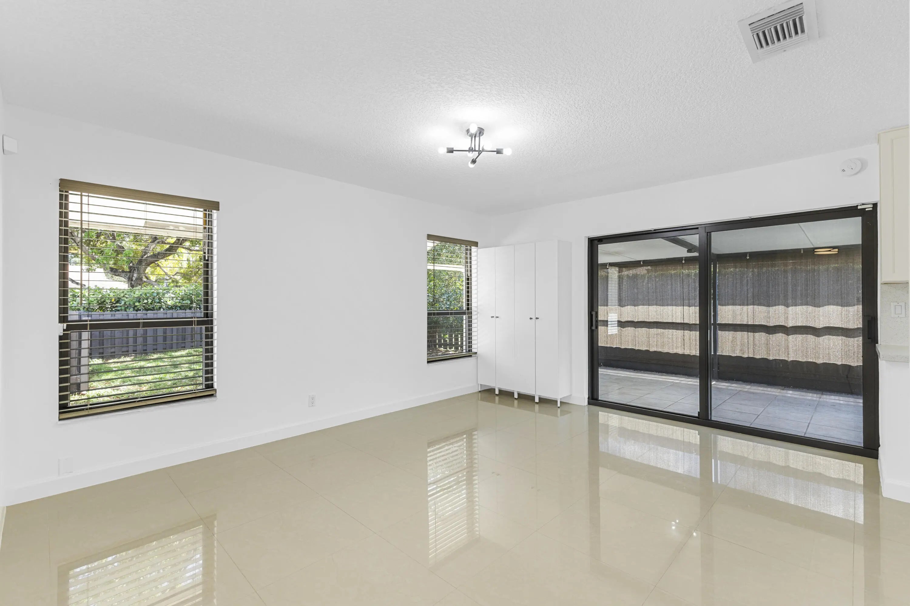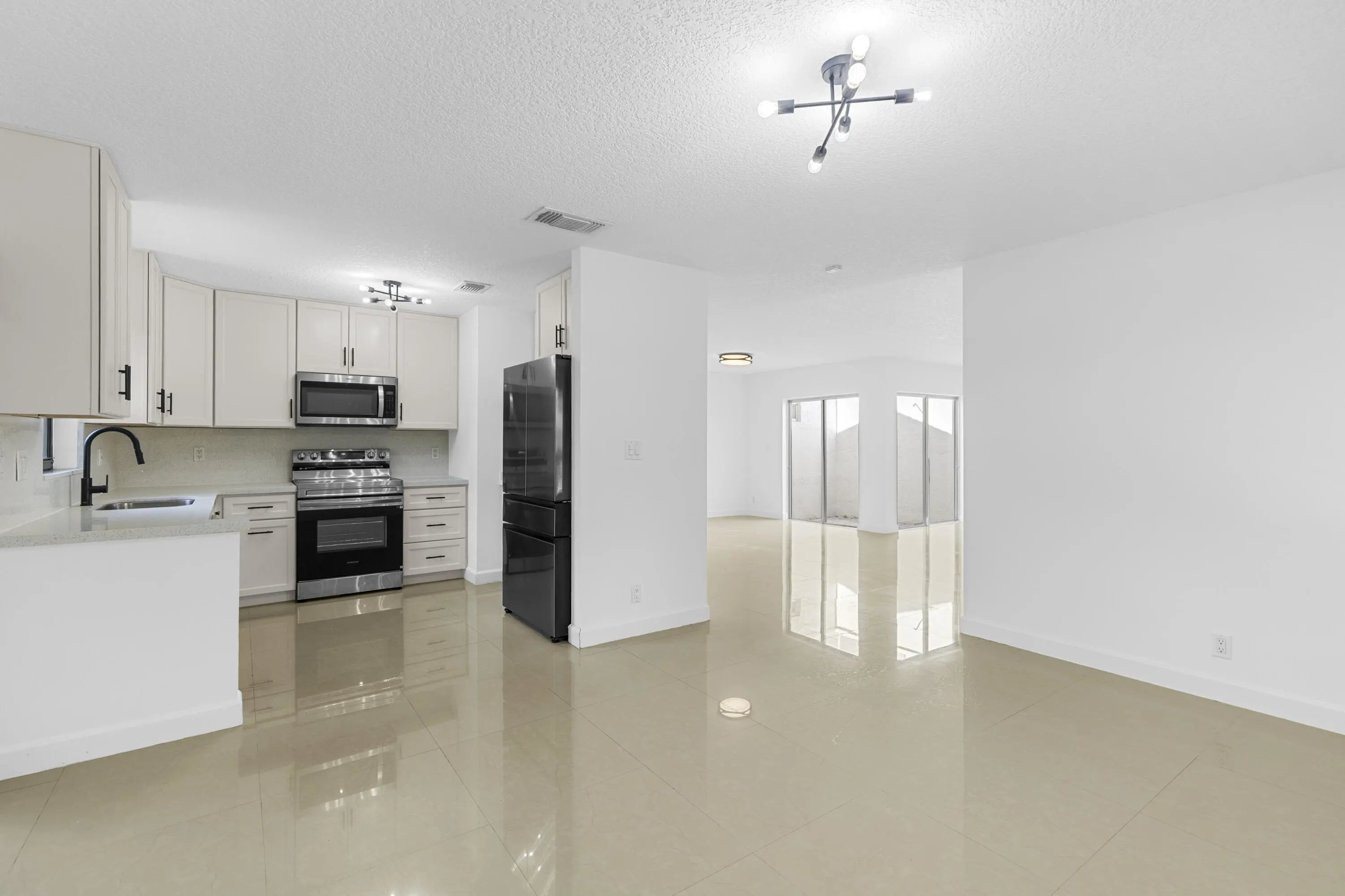 CHIC AND ELEGANT! THIS HOME REALLY DELIVERS! TURN KEY BEGINS HERE! Spacious 3 bedroom 2 bath home with garage. Shared wall but feels like a single family home with garage, porch and fenced yard. Designer kitchen with 42 inch white cabinets, crown molding and quartz countertops. New appliances December 2025: top of the line refrigerator plus stove and dishwasher. If you love to entertain, this bright open floor plan is perfect. Large dining area, plus screened porch off the kitchen. Elegant large porcelain like tile in a soft beige shade throughout the living areas. NO popcorn ceiling here, removed with new knockdown ceiings 10/2022. NEW ROOF: 2023 IMPACT DOORS/WiNDOWS: 5/2023. Exception: Sm screened bathroom window. Shutters for atrium. Garage dr. 2003. Walk to pool across street. Absolutely exquisite home in Plantation! Easy to show.Nothing like it for the price.