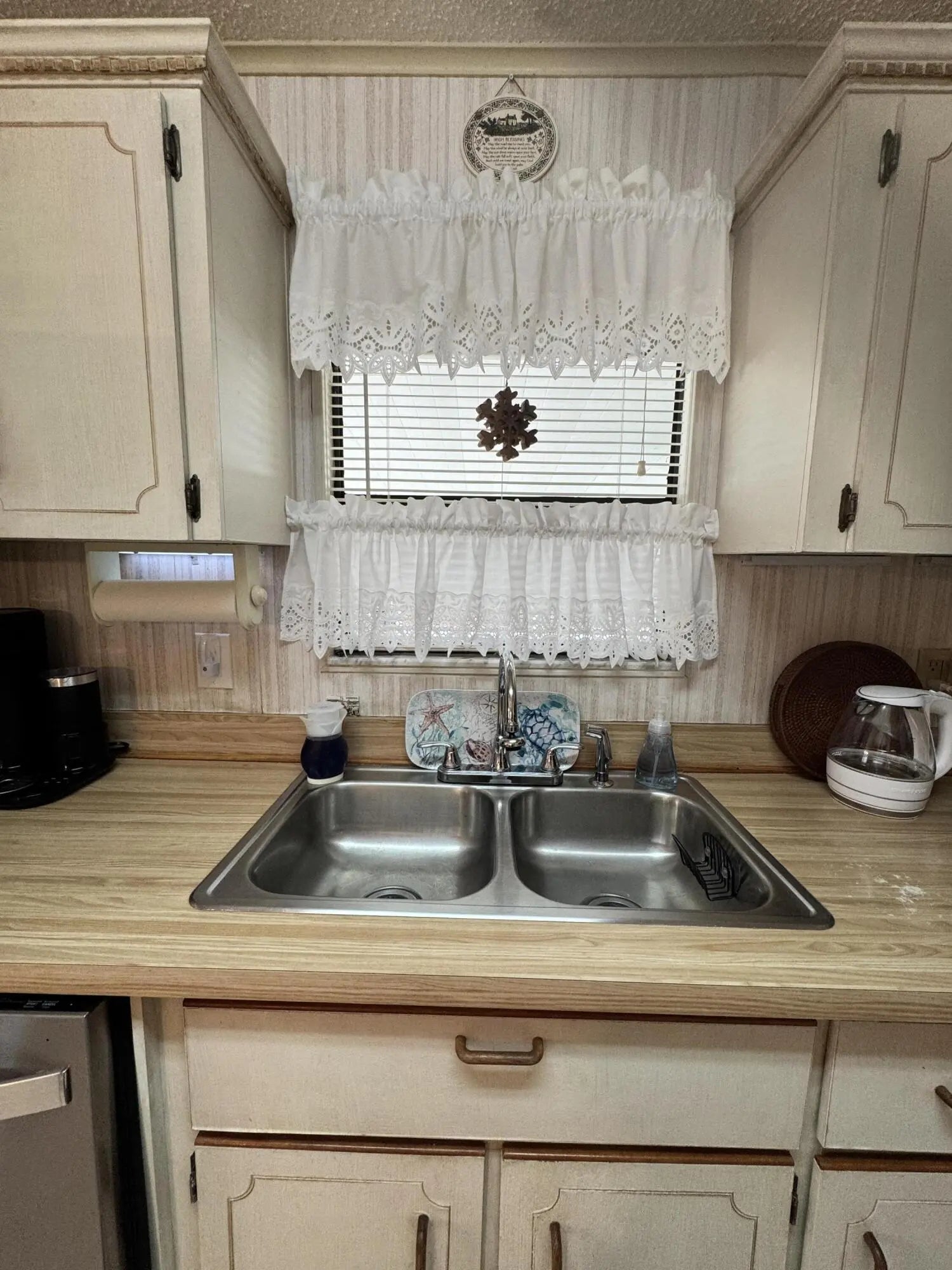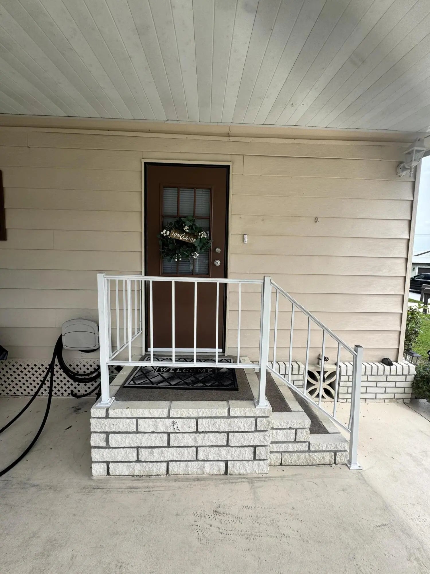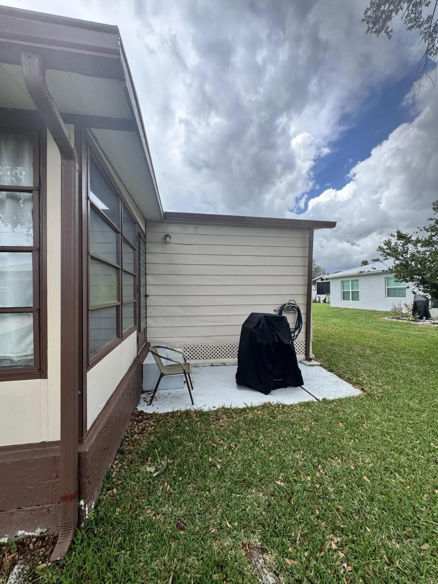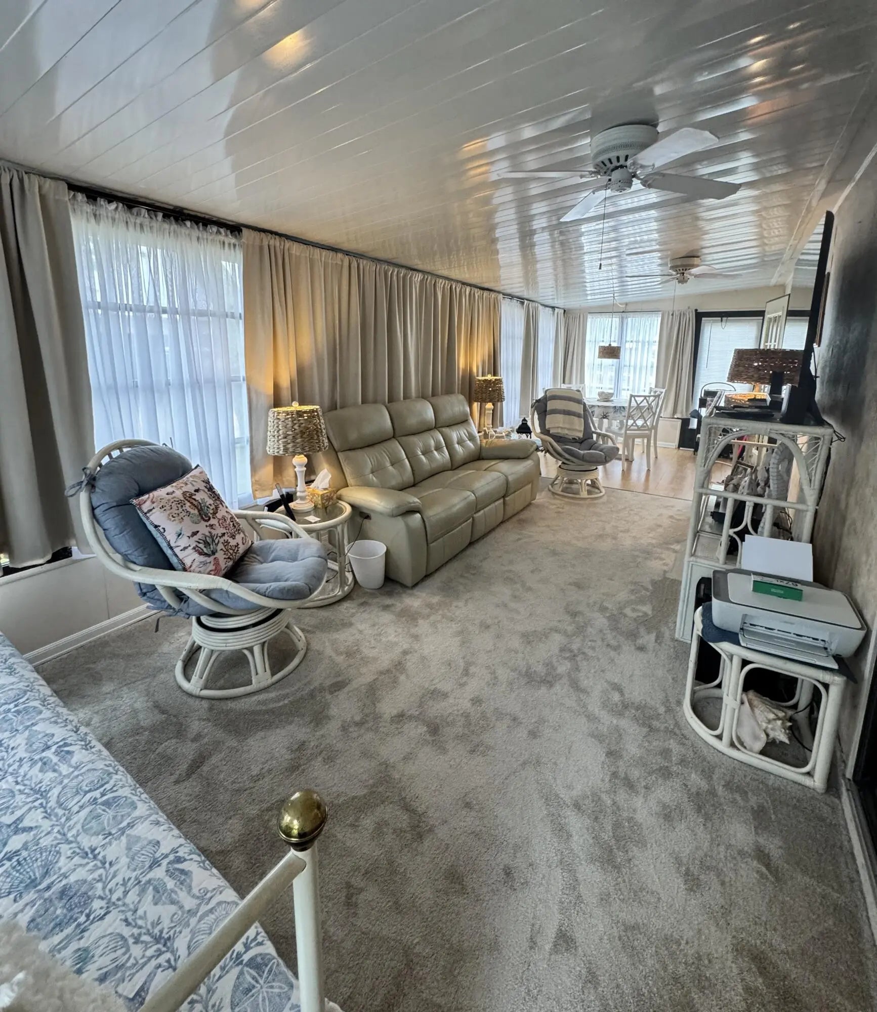 Lovely 2-bedroom 2-bath home in the 55+Spanish Lakes Fairways community. Home sits on a very quiet cal da sac street located at the beginning of the park. The home has carpet, tile, and laminate floors. Metal roof installed in 2025 with new gutters. A/C installed in 2021. The kitchen is open, with a bar/kitchenette. Refrigerator and Dishwasher are 2025. The laundry room is inside the home. The home has plantation shutters throughout. Lovely lania with windows and an A/C unit for enjoying morning coffee or evening cocktails. The land lease includes lawn maintenance, trash removal, and golf. The community features two pools, tennis, pickleball, bocce ball, shuffleboard, groups, social activities, billiards, cards, and a longevity center for working out. Motivated Seller! Bring us an offer.
