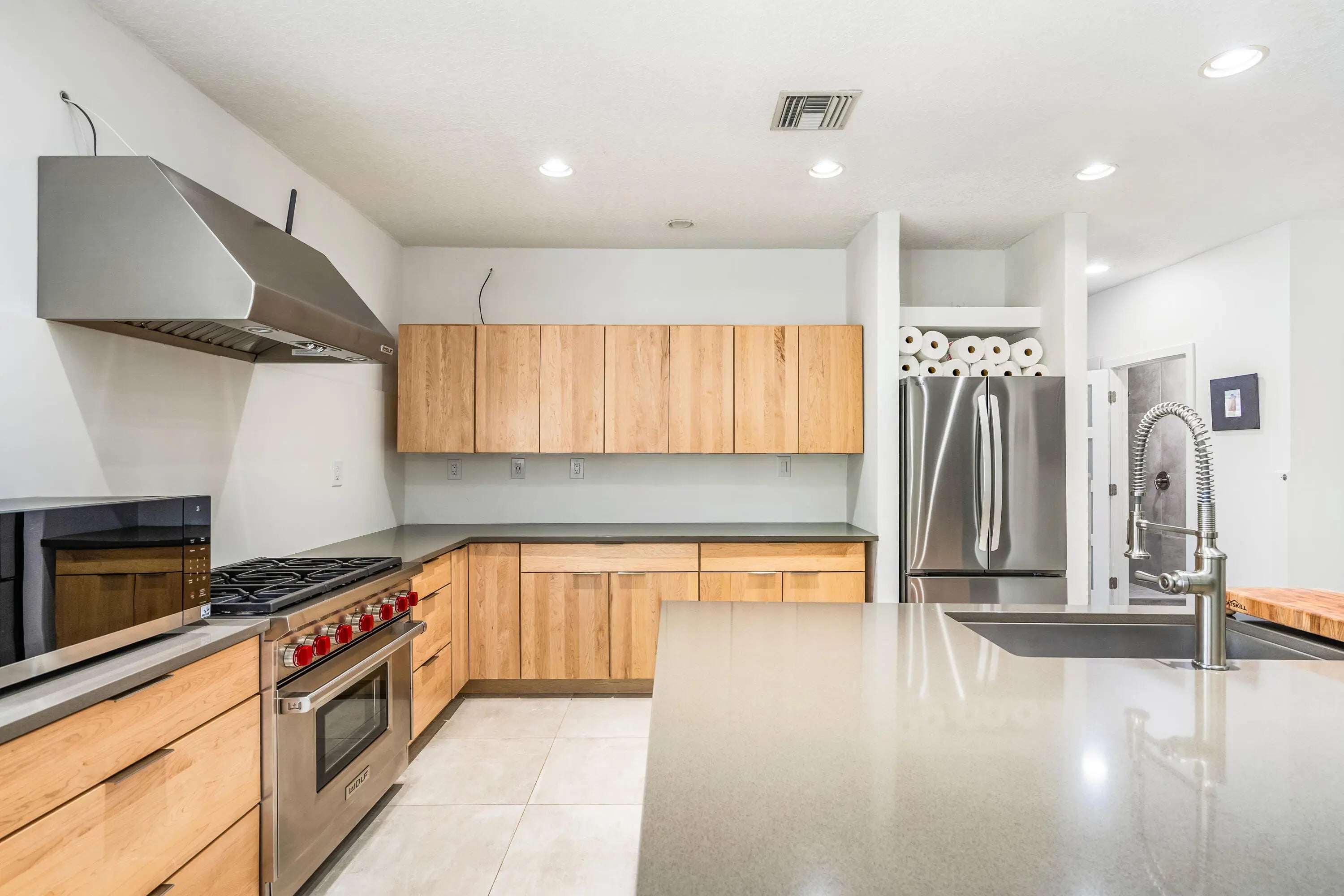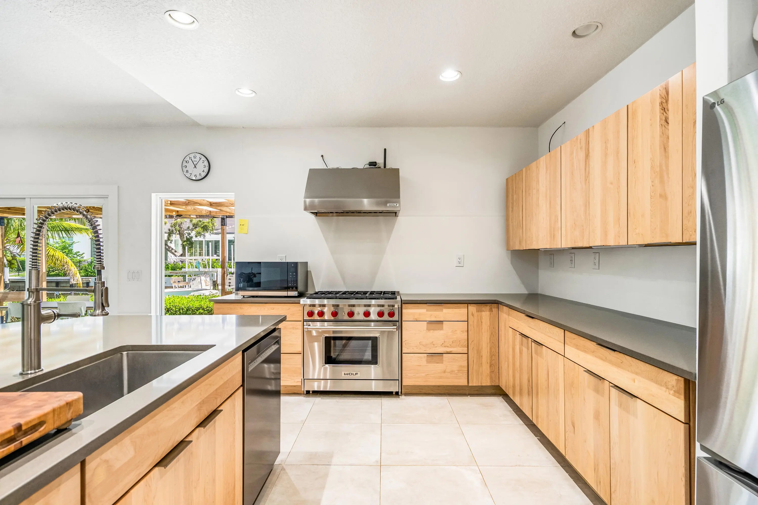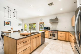 Great waterfront pool home on Choice Lot, with water on TWO SIDES! Priced to SELL! This modern home (saltwater pool recently added), with metal roof and with 2 boat lifts and space for multiple boats, is encountered via entering through private gates behind a concrete wall, all lending the feel of a compound, CBS constructed in 1998, the home has just been updated updated in many ways but the owner is relocating. Walled, outdoor shower off the Owner's Suite is by the waterside. Kohler generator & propane tank recently installed. Wolf Range in kitchen. Clean lines reflecting the aesthetic of the home.