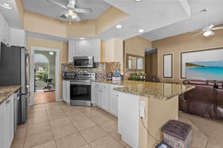 Welcome to The Lakes at Tradition, a gated and manned community offering comfort, security, and resort-style living. This beautiful 1-story waterfront home features approximately 2,000 sq ft of living space, a 2.5-car attached garage, and a spacious driveway for additional parking. Step inside through the foyer into a well-designed floor plan with 3 bedrooms plus a den/office, ideal for working from home or creating a flexible living space. The kitchen is equipped with stainless steel appliances, granite countertops, and bar seating, along with plenty of cabinet storage. Flooring includes tile throughout the main areas and newer carpeting in the bedrooms. Additional features include accordion hurricane shutters, a central vacuum system, and a laundry room with a utility tub plus washer and dryer. Enjoy relaxing outdoors on the extended screened lanai, overlooking a serene lake view. The backyard offers space for a potential pool, making it perfect for creating your own private outdoor retreat. Residents of The Lakes at Tradition enjoy a wide range of amenities, including basketball courts, tennis courts, pickleball, bocce ball, shuffleboard, a clubhouse, community room, billiards room, game room, fitness center, library, jogging paths, picnic area, and a resort-style pool, along with sidewalks, street lights, and on-site management. Association fees include cable TV, common area maintenance, grounds maintenance, security, and trash service, providing convenient and low-maintenance living in one of Tradition's most desirable communities.