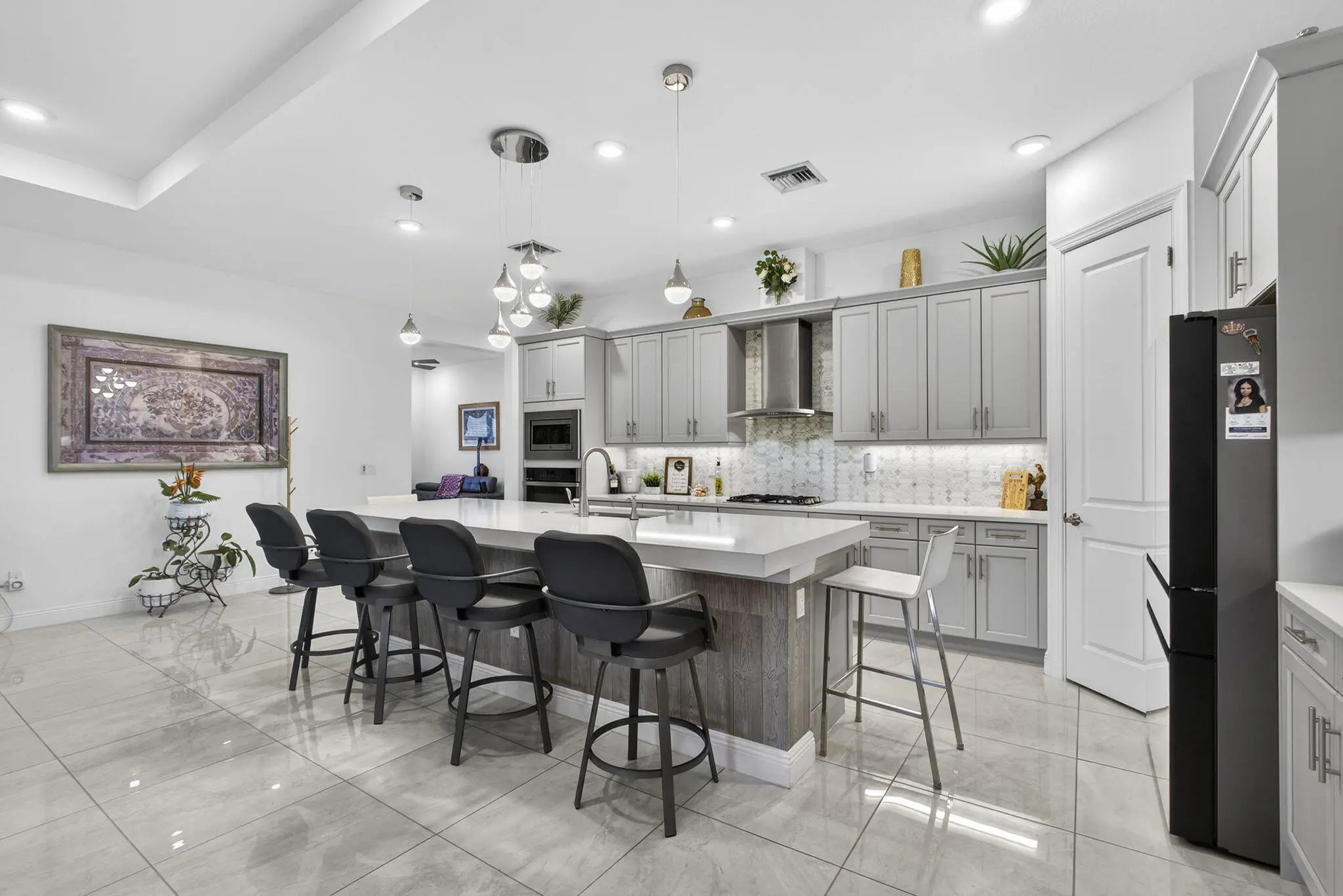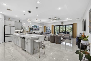 Located in the desirable Cresswind at Westlake 55+ community, this beautifully upgraded home offers 3 bedrooms plus a den and a bright open floor plan ideal for comfortable living and entertaining. The kitchen features 42" cabinets, crown molding, soft-close drawers, designer tile backsplash, stainless chimney hood, gas cooktop, wall oven, and convection microwave. The primary suite offers a spa-style bath with frameless glass shower and decorative tile accents. Enjoy relaxing on the screened lanai with private access from the primary bedroom. Additional highlights include recessed lighting, under-cabinet lighting, smart home wiring, and upgraded laundry. Enjoy resort-style amenities including clubhouse, pool, fitness center, pickleball, tennis, and active social life.
