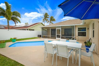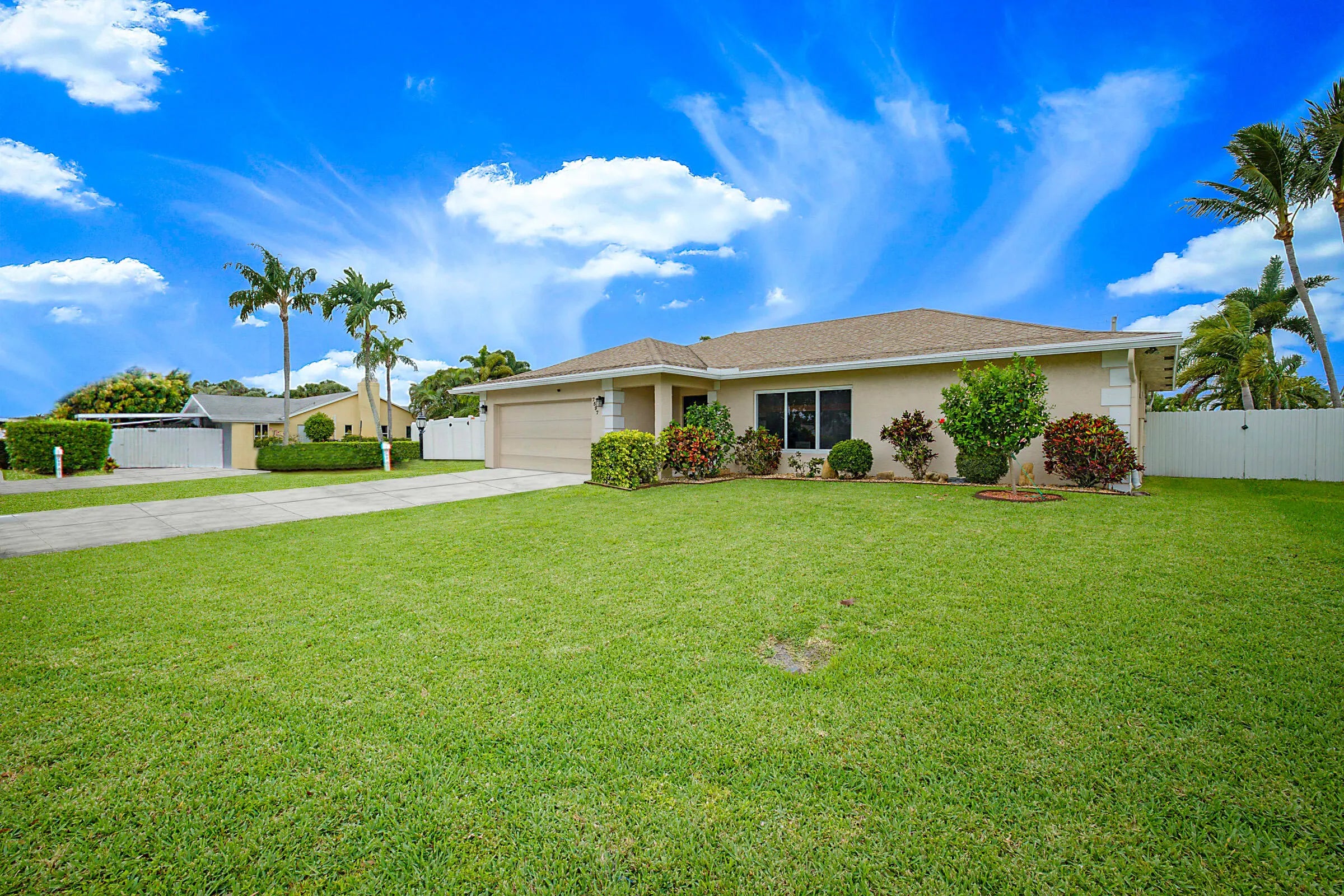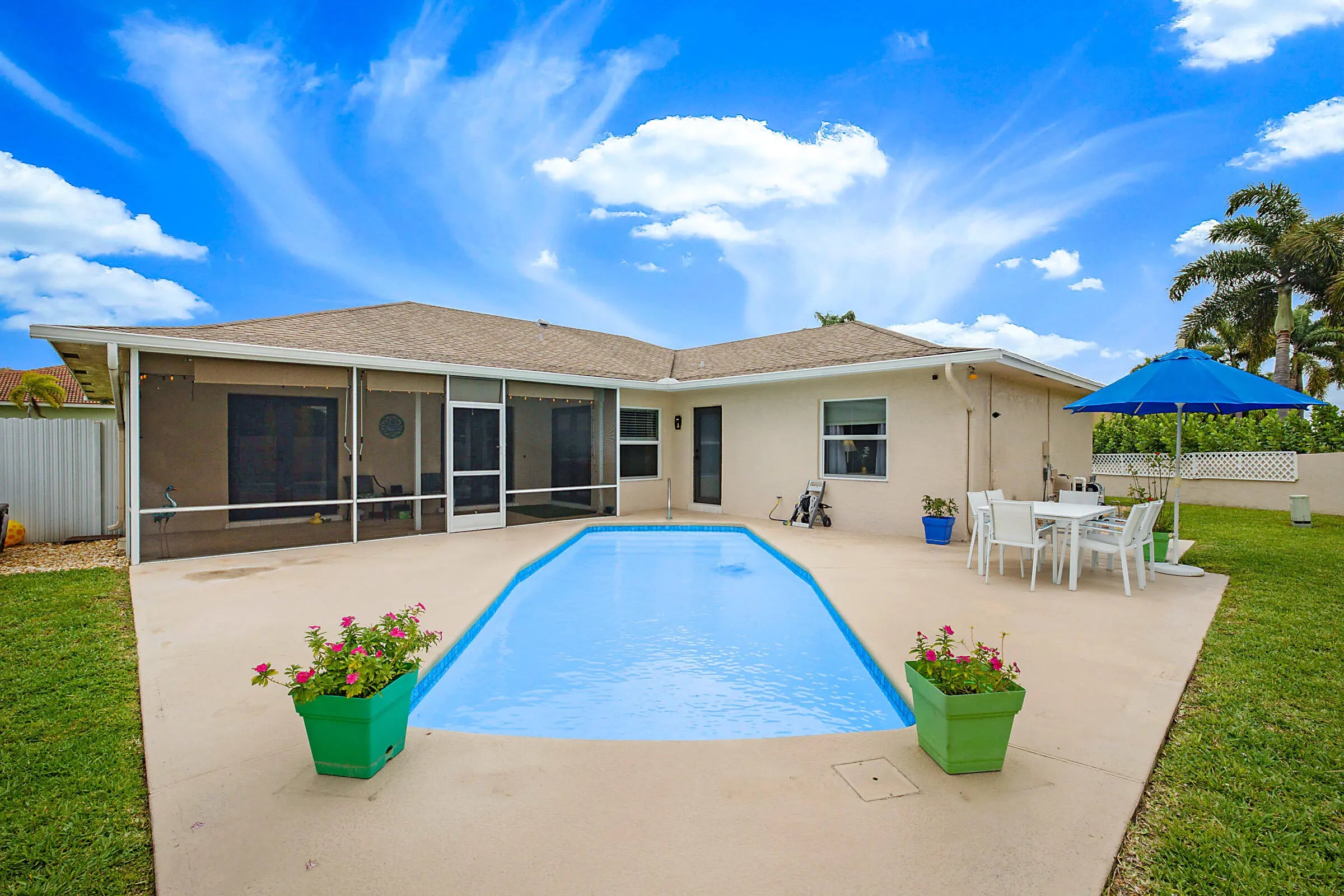 Located in desirable The Estates of Lake Clarke Shores, this beautifully maintained 4-bedroom, 2-bath pool home sits on a spacious corner lot and features a 2-car garage and excellent curb appeal. Inside, enjoy vaulted ceilings, hurricane impact windows and doors, LED lighting, upgraded fans, shiplap accents, and a fantastic split-bedroom floor plan ideal for comfortable living and entertaining. The semi-open living areas flow into a well-appointed kitchen with stainless steel appliances, range hood, ample cabinetry, and breakfast bar. The spacious primary suite offers pool access, a walk-in closet, and ensuite bath with dual sinks. Step outside to a screened patio and fully fenced backyard with a heated pool and plenty of space to relax or entertain. Additional highlights include a tankless gas water heater, 4-ton Rheem A/C, generator plug, upgraded sprinkler system, and energy-efficient improvements. Low quarterly HOA includes tennis, pickleball, gazebo, and boat ramp access to Lake Osborne and Lake Ida. Convenient to shopping, dining, I-95, and the beaches. A fantastic opportunity to enjoy the best of South Florida living!