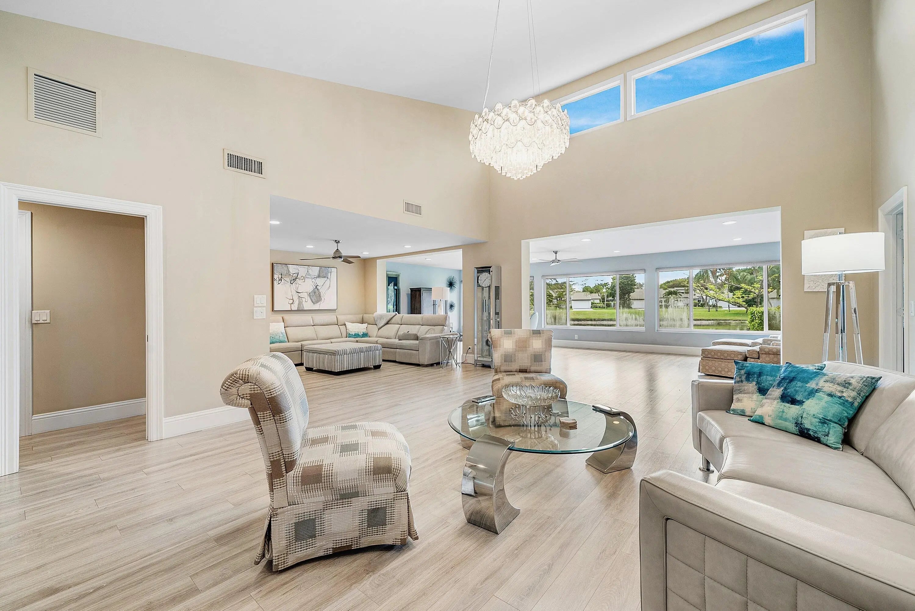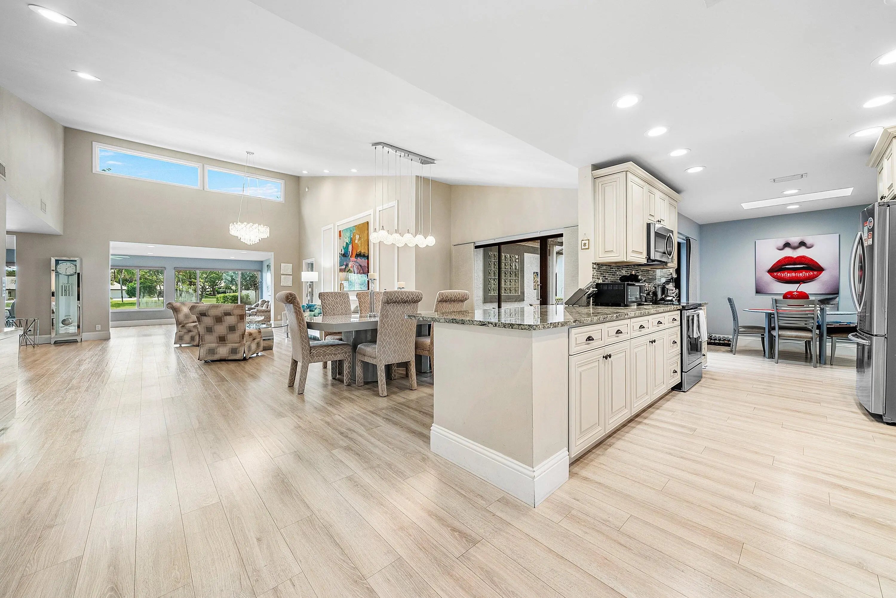 Updated and expanded villa in Cambridge II at Hunters Run Country Club offering 2 bedrooms plus den/optional 3rd bedroom, 2 full baths, and powder room. Expanded living room adds interior square footage and features vaulted ceilings with clerestory windows for abundant natural light. Split bedroom layout includes spacious primary suite with updated bath and outfitted closets, while guest bedroom enjoys a semi-private bath and custom den addition. Open remodeled kitchen features stainless steel appliances, stone countertops, custom cabinetry, and breakfast area. Screened atrium is perfect for outdoor dining and grilling. Other highlights include full-house generator, partial impact windows, 1-car plus golf cart garage, 2023 roof, and steps to community pool. Experience the modern standard of refined country club living at Hunters Run. With over $60M of capital improvements, members enjoy an exceptional array of world class amenities including three championship golf courses, top-rated practice facilities, premier tennis & pickleball, with upcoming state of the art racquet sports center, resort-style clubhouse and pool, salon & spa, full service fitness center, and six dining venues. The best of private club living can be yours today! Membership is mandatory.