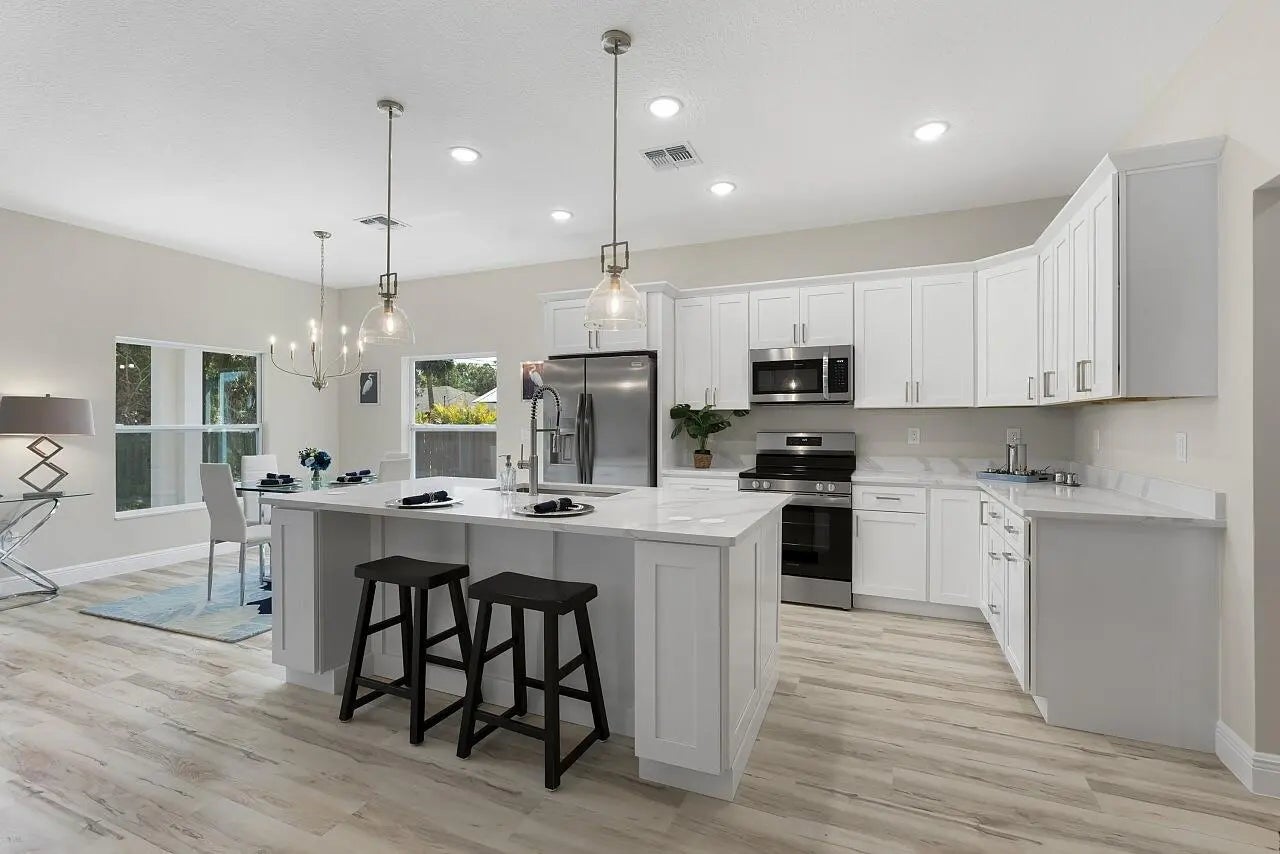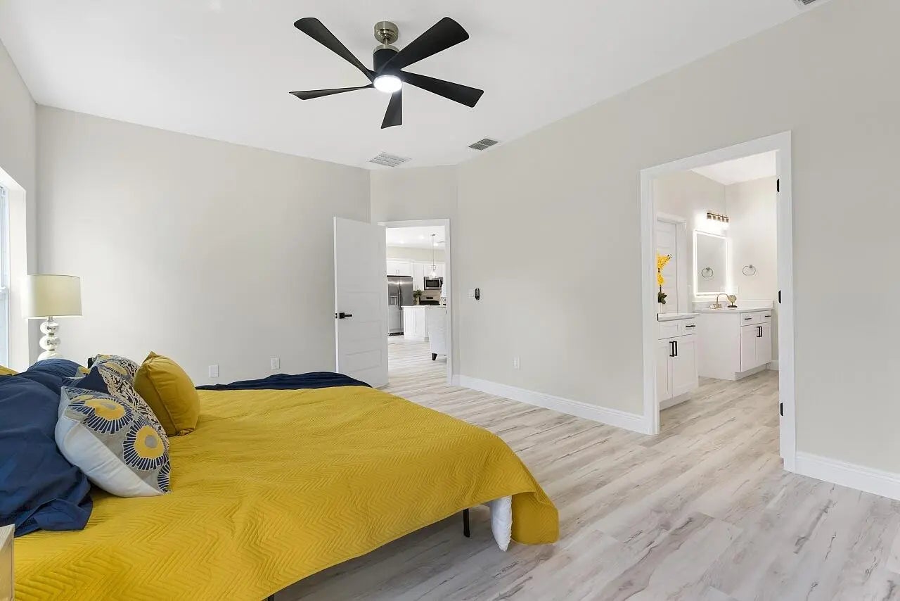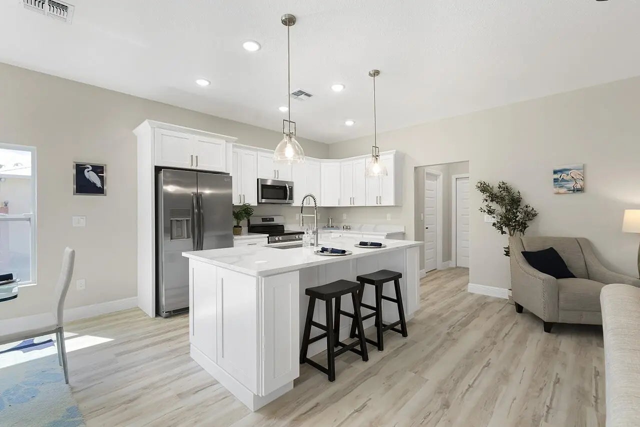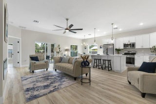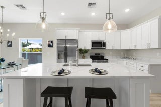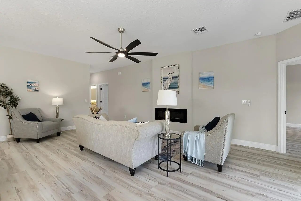 Brand new 2026 Palmetto model by HDZ Homes, a unique builder raising the standard of quality construction in Vero Lake Estates. This thoughtfully designed 3-bedroom, 2-bath CBS home with 2-car garage offers a bright open-concept layout centered around a spacious great room perfect for everyday living and entertaining. Interior finishes include luxury white oak LVP flooring throughout, quartz countertops, shaker-style cabinetry, stainless steel appliance package, and an oversized kitchen island with seating. The private primary suite features a large walk-in closet and spa-inspired bath with dual vanities and glitzy designer wall tile shower creating a high-end luxurious feel without cutting corners. Guest bath also features striking tile work and upscale finishes. A spacious laundry room with utility sink cabinet, modern lighting, and contemporary hardware add both function and style. Enjoy outdoor living on the covered porch plus attractive paver driveway and entry walkway. Built with durability and efficiency in mind, the home includes impact windows and CBS construction. Buyers also benefit from a transferable builder and structural warranty for added peace of mind. A rare opportunity to own a stylish, quality-built new home by one of the most distinctive builders in Vero Lake Estates.