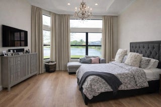 Spectacular Vizcaya Model in Seven Bridges with long lake view. New wood floors in bedrooms and loft. No carpet. First floor master with lake view, sink and door to patio. Efficient use of space and great room flow. Formal living room and dining room, yet the space looks open. Upstairs loft with double door to balcony. Bar area on first floor. The Media Room is now a 5th bedroom with ensuite bathroom and large closet. Office with exit to small patio, can be used as 5th bedroom, with bathroom right outside the door. 30,000 sqft Clubhouse with full-service restaurant, 12 tennis and 4 pickleball courts, gym/spa, indoor sports court, children playroom, arcade room, poolside bistro, playground, waterslides. See floorplan in pictures.