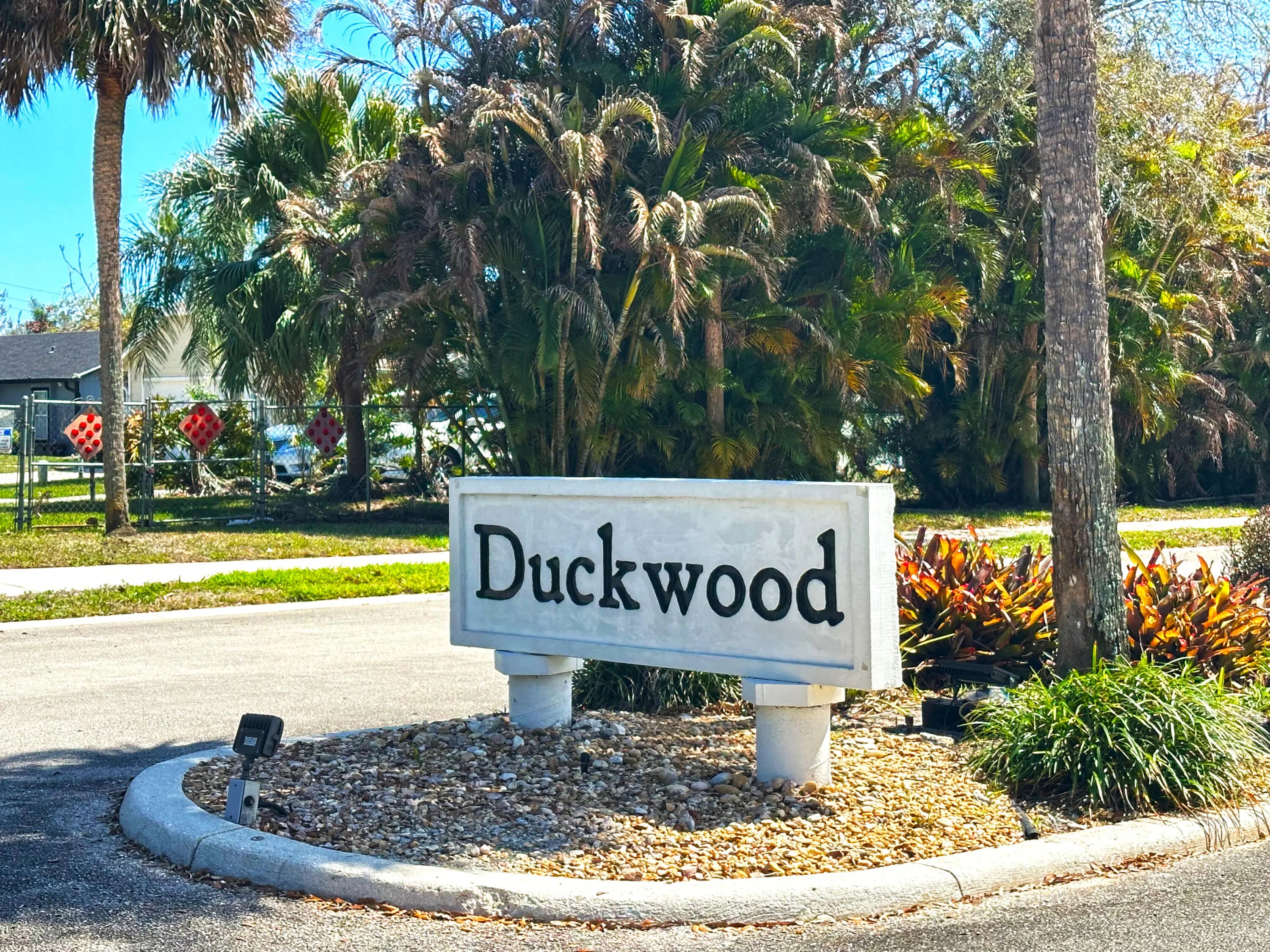 Welcome to Duckwood, a desirable 55+ community in the heart of Stuart. This beautifully maintained 3-bedroom, 2-bath, 2-car garage furnished home features vaulted ceilings and a spacious open layout designed for comfortable Florida living. The Florida room overlooks a peaceful preserve, offering a private and relaxing setting. Step outside to the open patio with retractable awning, perfect for enjoying the outdoors year-round. Additional highlights include a full-size washer/dryer and a 2 car garage with a full screen door. Fla/Living/Dining/eat in kitchen. Duckwood residents enjoy wonderful amenities including heated pool, bocce, wood shop, library, pool room, and basic cable included. Conveniently located close to shopping, waterfront dining, I-95, and beautiful Treasure Coast beaches.,